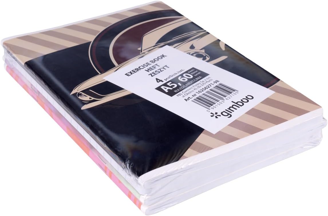 Gimboo 16256271-98 quaderno. Copertina morbida. Formato A5 60/60 fogli a righe. Confezione mista da 8 - 4 pezzi. Per l'iscrizione dei bambini alla scuola primaria. Quaderno a righe con copertina laminata Formato: A5. Numero di fogli: 60 Cartoncini bianchi a righe blu Grammatura carta: 70 g/m² Con bordo - colore: rosso Confezione motivi assortiti