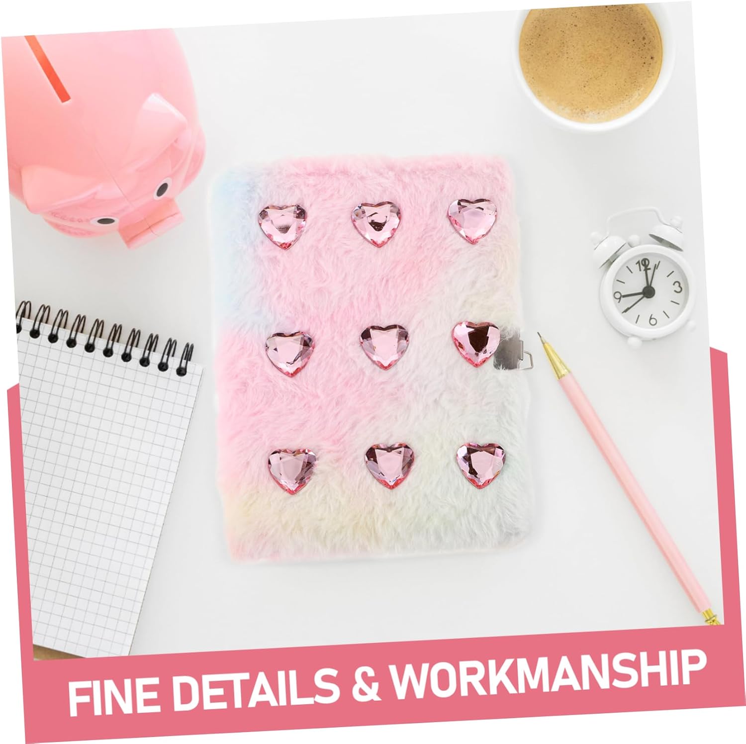 BLOCCO SICURO: il design con serratura di questo diario garantisce che i tuoi pensieri e le tue note private rimangano confidenziali e protetti. Quaderno in peluche, diario con serratura, design creativo in peluche: il design creativo in peluche di questo diario lo rende un accessorio carino ed elegante per tutte le età, diario con serratura, quaderno in peluche, schizzo, diamanti scintillanti: questo diario aggiunge un tocco di glamour e lusso alla tua routine di journaling. Diario di cancelleria in peluche, diario con serratura. Copertina a cuore sfumato: la copertina sfumata altamente visiva di questo diario è progettata per attirare l'attenzione e fare una dichiarazione, diario di peluche, diario segreto, diario con serratura. Ideale per gli studenti: questo taccuino multifunzionale è ideale per studenti e appassionati di diari ed è ideale per l'uso quotidiano, per scrivere resoconti di viaggio e per registrare ricordi. diario di peluche, diario con serratura