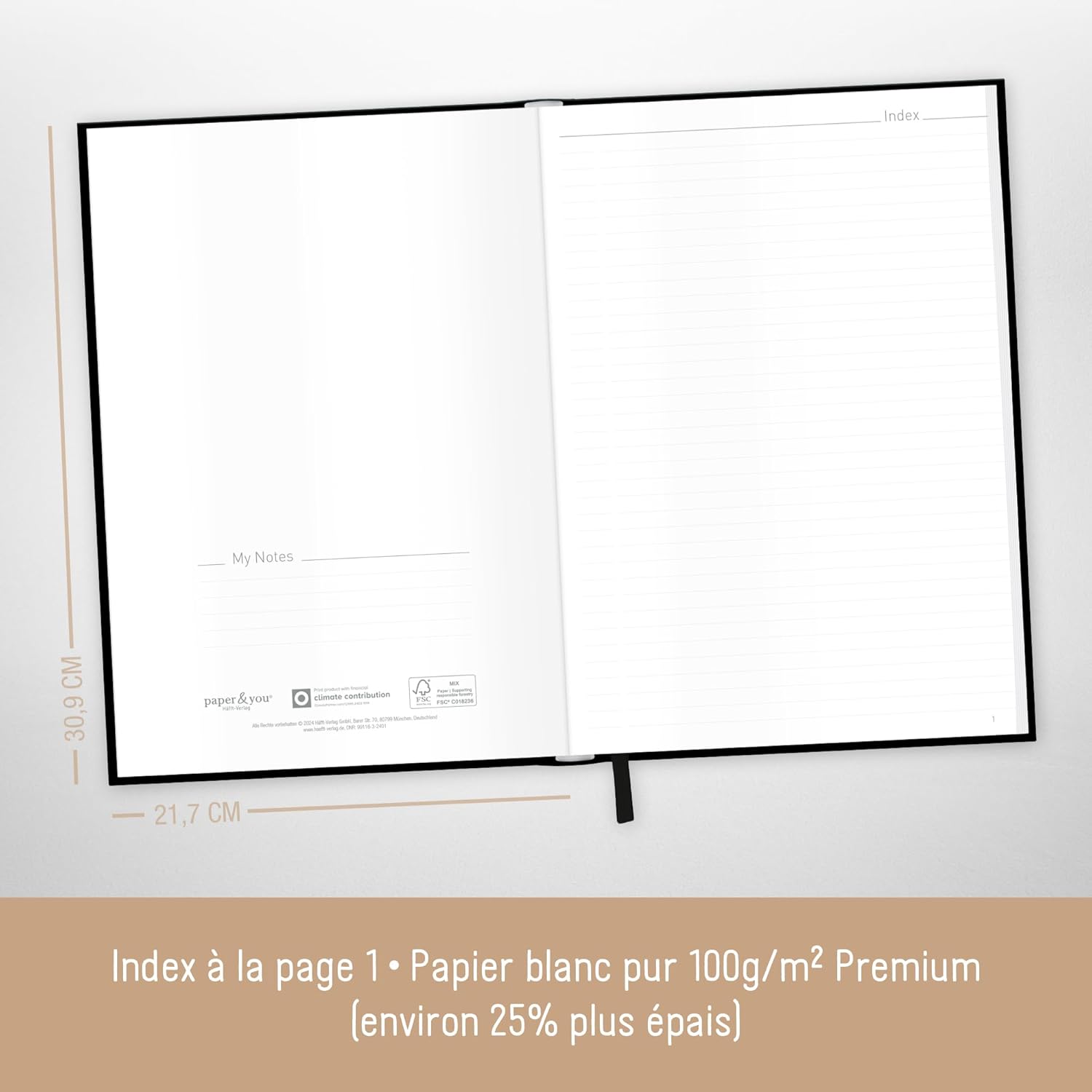 GRANDE NOTEBOOK A RIGHE A4+ - Da Häfft-Verlag con 156 pagine numerate (78 fogli), un nastro da lettura e un elastico per appunti di ogni tipo, cose da fare, obiettivi, piani e pensieri - sempre con te e a portata di mano quando colpisce un lampo di genio! SOSTENIBILE E RISPETTOSA DEL CLIMA - Prendi appunti quanto vuoi e con la coscienza pulita: per amore dell'ambiente, la nostra carta premium da 100 g/m² è certificata FSC (FSC N004440) e stampata nel rispetto del clima. UN COMPAGNO FEDELE - La copertina flexo, flessibile e resistente, combina le migliori caratteristiche della copertina rigida e della copertina morbida, è resistente agli schizzi e cancellabile. L'intricata rilegatura a filo tiene insieme le pagine in modo sicuro. FAI UN REGALO A TE STESSO E AGLI ALTRI - Ottimo per te stesso o come regalo carino - quindi dimentica lo smartphone e prendi delle penne! Perché gli studi hanno dimostrato che la scrittura a mano è più creativa e rimane nella memoria più a lungo. DISEGNI DIVERSI - ce n'è per tutti i gusti e bello da collezionare: quaderno in formato A4+ (formato esterno: 21,7 x 30,9 cm, interno: 21,3 x 30 cm), che consente di inserire fogli A4 senza piegarli.