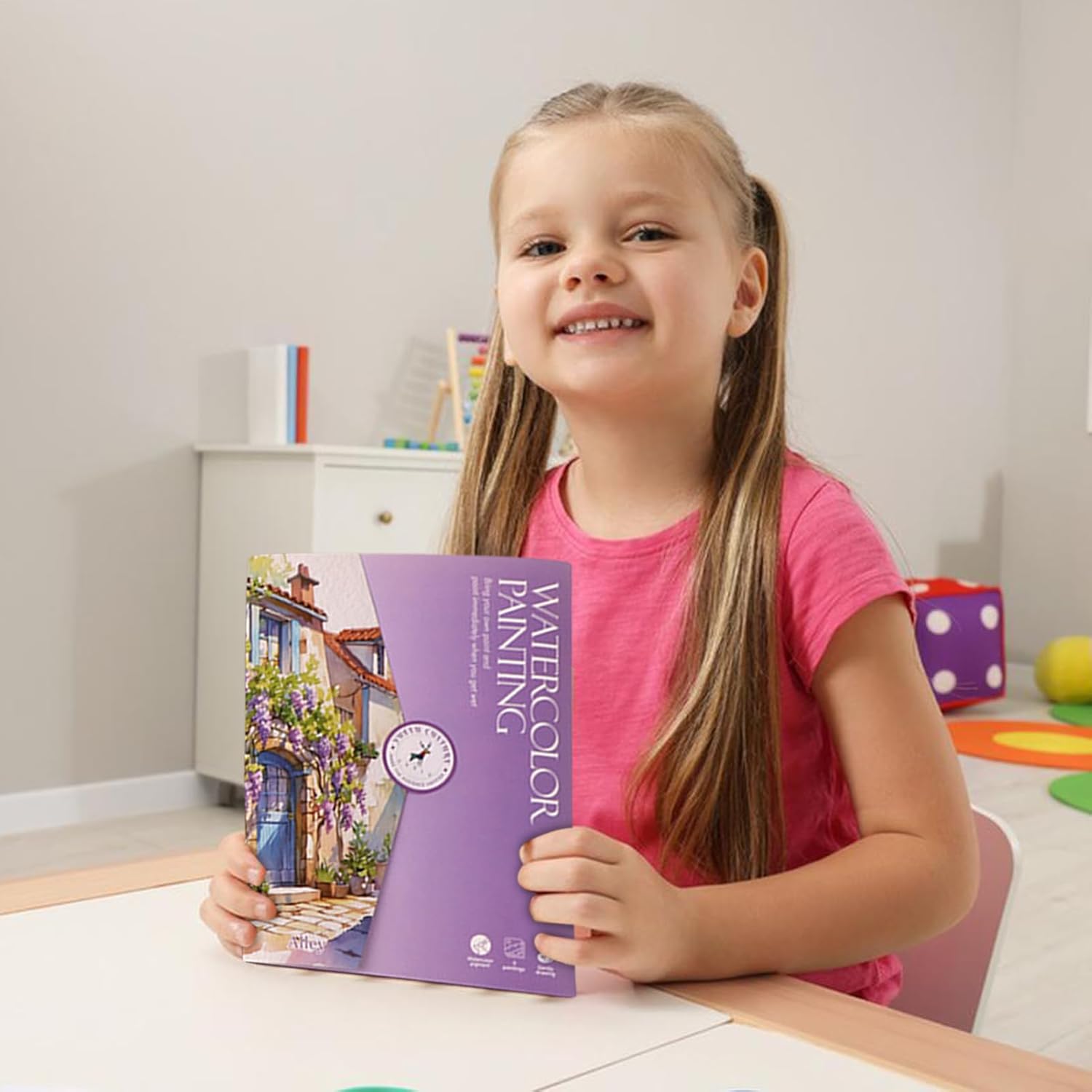 Carta bianca: ogni pagina è realizzata con carta resistente per acquerello che trattiene bene il pigmento prevenendo il sanguinamento, mentre le dimensioni compatte e la confezione regalo lo rendono un regalo premuroso per gli amanti dell'arte Multiuso per tutte le età: perfetto per progetti artistici scolastici, colorazione casual o hobby artigianali personali, rendendolo adatto per bambini, studenti, principianti o adulti che amano esplorare l'arte in aule domestiche o ambienti esterni Rilassamento e sollievo dallo stress: impegnarsi nella pittura ad acquerello fornisce un'attività calmante che aiuta a ridurre lo stress, rendendo questa cartella di lavoro non solo uno strumento di apprendimento, ma anche una forma di rilassamento consapevole sia per bambini che per adulti Migliora la creatività e le abilità: progettata per ispirare l'immaginazione, questa cartella di lavoro per pittura incoraggia bambini e adulti a praticare il disegno e la colorazione migliorando la pazienza e la fiducia artistica naturalmente Kit completo per la pittura: viene fornito con una cartella di lavoro ad acquerello da 19 cm che include 12 colori vivaci e un pennello che offre una soluzione pratica per l'arte creativa a casa in classe o durante le attività di viaggio