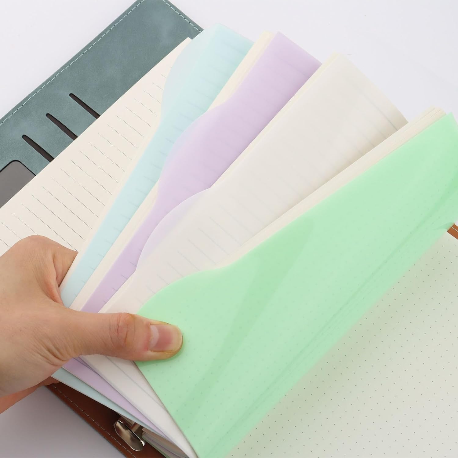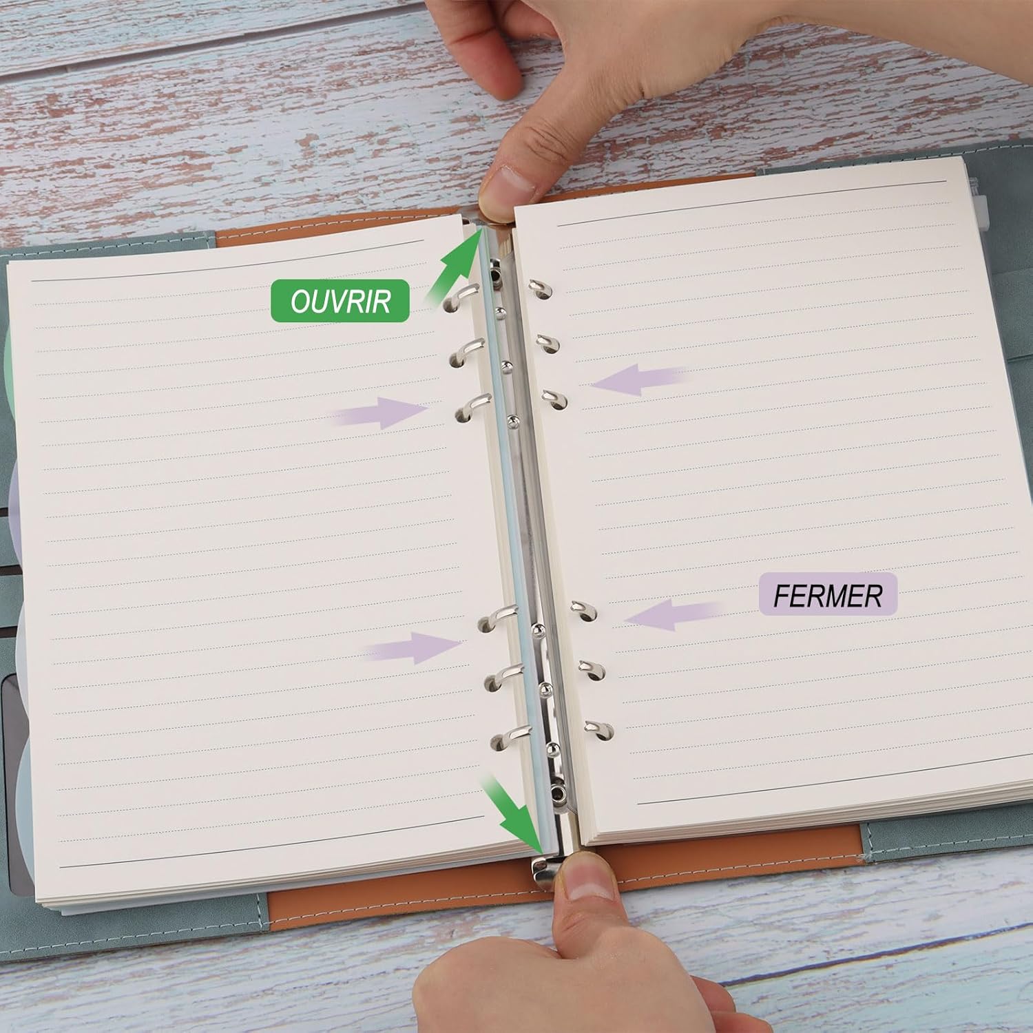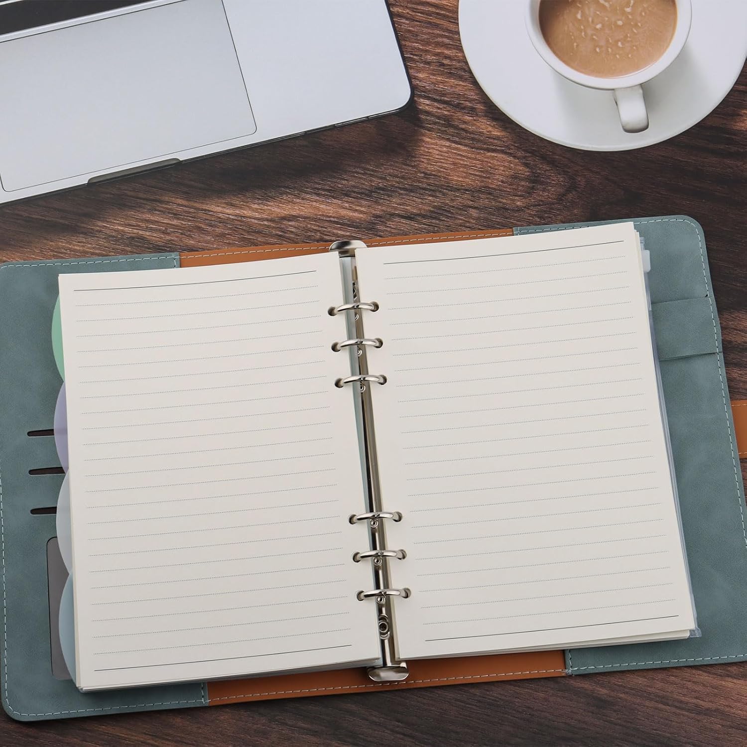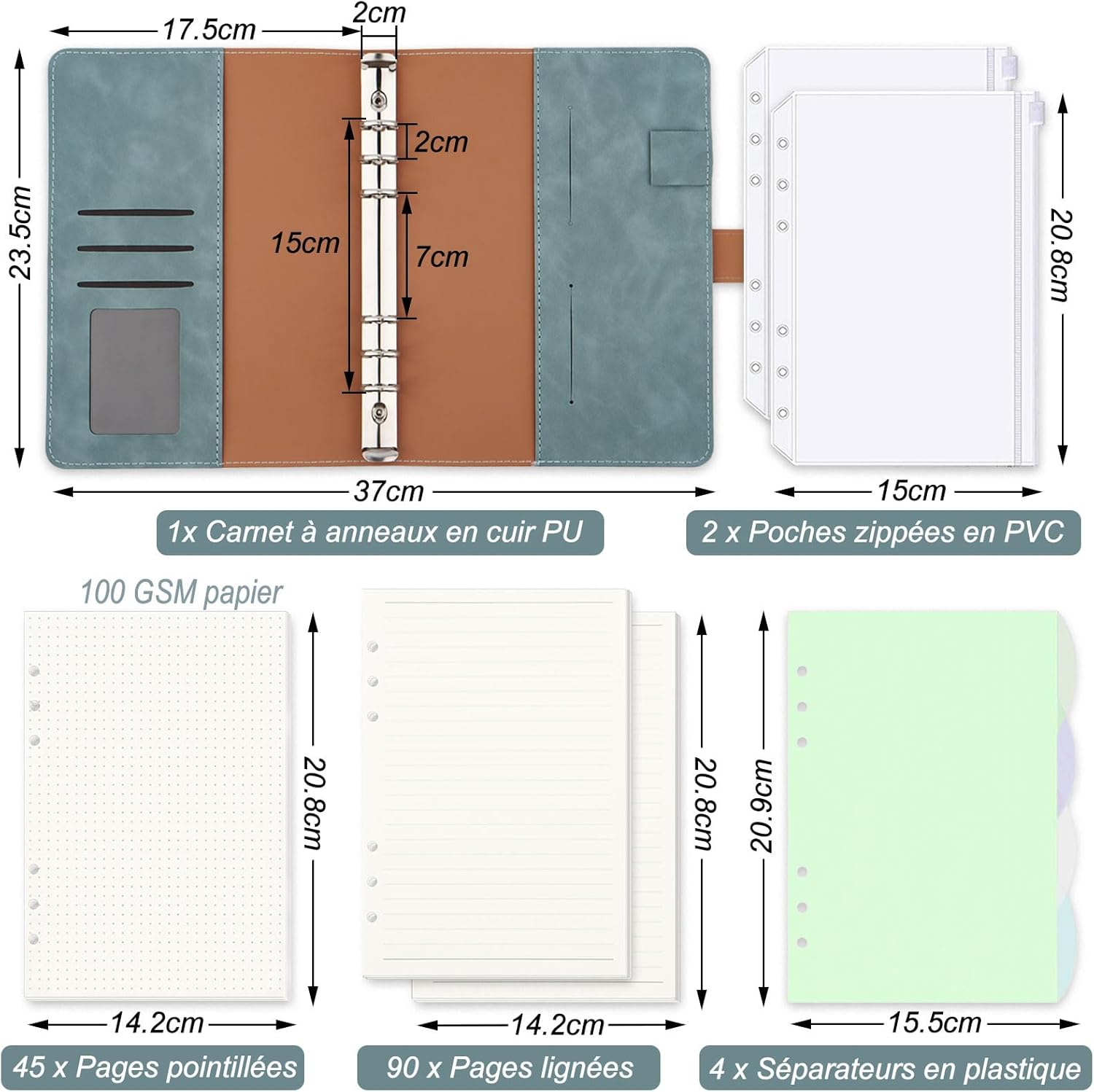 Materiali di alta qualità e design elegante: questa agenda ricaricabile A5 presenta una copertina in pelle PU di alta qualità (23,5 x 17,5 cm). È elegante, morbido al tatto e resistente. Il design con chiusura a bottone in metallo consente un facile accesso garantendo al tempo stesso la sicurezza e la stabilità del contenuto. Esperienza di scrittura perfetta: il raccoglitore ad anelli A5 contiene carta premium da 100 GSM con superficie liscia, offrendo una piacevole esperienza di scrittura. Impedisce all'inchiostro di fuoriuscire e sbiadire, rendendolo la scelta ideale per appunti quotidiani, verbali di riunioni e pianificazione. Flessibile e personalizzabile: grazie alla rilegatura flessibile a 6 anelli, puoi aggiungere o sostituire pagine in qualsiasi momento, rendendo questo taccuino ricaricabile A5 adattabile alle tue esigenze e perfettamente organizzato. Versatile e portatile: adatto per journaling, pianificazione del lavoro, diari di viaggio, organizzazione di ricette, appunti di studio o quaderni creativi. Il suo design compatto lo rende facile da trasportare, perfetto per l'ufficio, la scuola e i viaggi. Set completo per varie esigenze: questo set contiene: 90 pagine a righe e 45 pagine a pois (14,2 x 20,8 cm), 4 robusti divisori in plastica (15,5 x 21 cm) e 2 tasche trasparenti con cerniera in PVC (15 x 20,8 cm). Perfetto per scrivere, organizzare e archiviare.