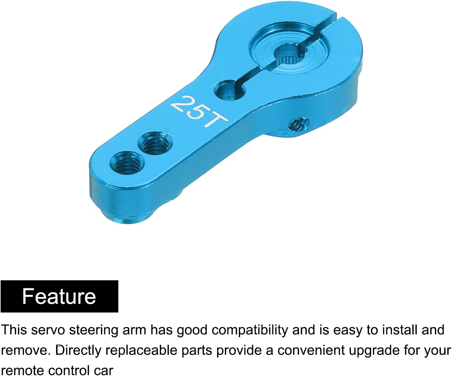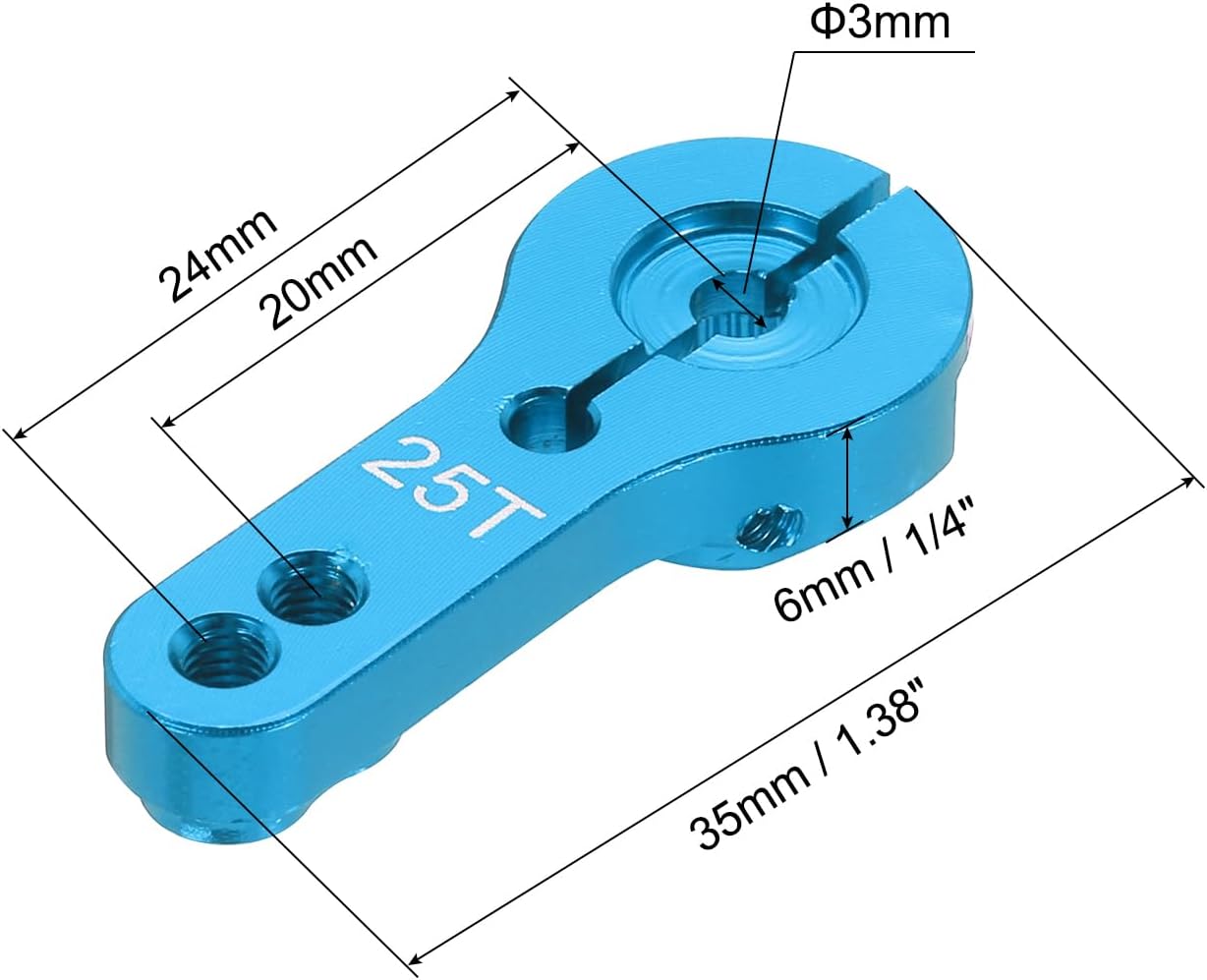 Realizzato in lega di alluminio resistente, il nostro braccio servo lavorato a CNC offre una maggiore resistenza e durata e garantisce prestazioni eccellenti per modellini RC fai da te. Lo speciale design non solo riduce il carico, ma migliora anche la manovrabilità e consente una guida fluida e reattiva. Adatto per diversi servo, offre una facile installazione ed è quindi una scelta eccellente. Materiale: metallo; tipo: braccio manubrio 25T; lunghezza totale: 35 mm/1,38 pollici; diametro interno: 3 mm; spessore: 6 mm/1/4 pollici; colore: blu; contenuto della confezione: 10 pezzi. x braccio manubrio 25T con 2 viti Questo braccio sterzo servo è caratterizzato da un'eccellente compatibilità, che facilita l'installazione e la rimozione. Può sostituire direttamente le parti e fornisce un comodo aggiornamento per la tua auto RC. La vite in dotazione fissa saldamente il morsetto diviso all'uscita del servo e garantisce una connessione stabile. Struttura in alluminio duro per precisione e durata. Allentare il servo corno esistente, collegare lo sterzo al nuovo corno, inserire il corno sull'albero di uscita e fissarlo con la vite centrale. Si prega di considerare un margine di errore di 0,1-0,5 mm a causa della misurazione manuale.