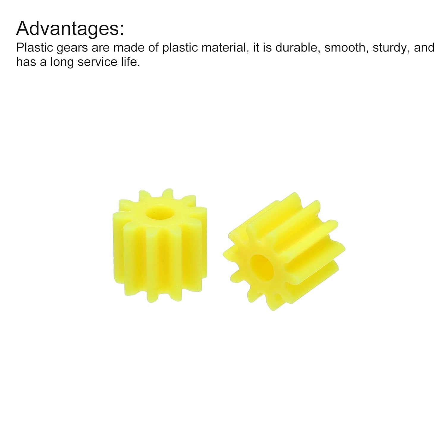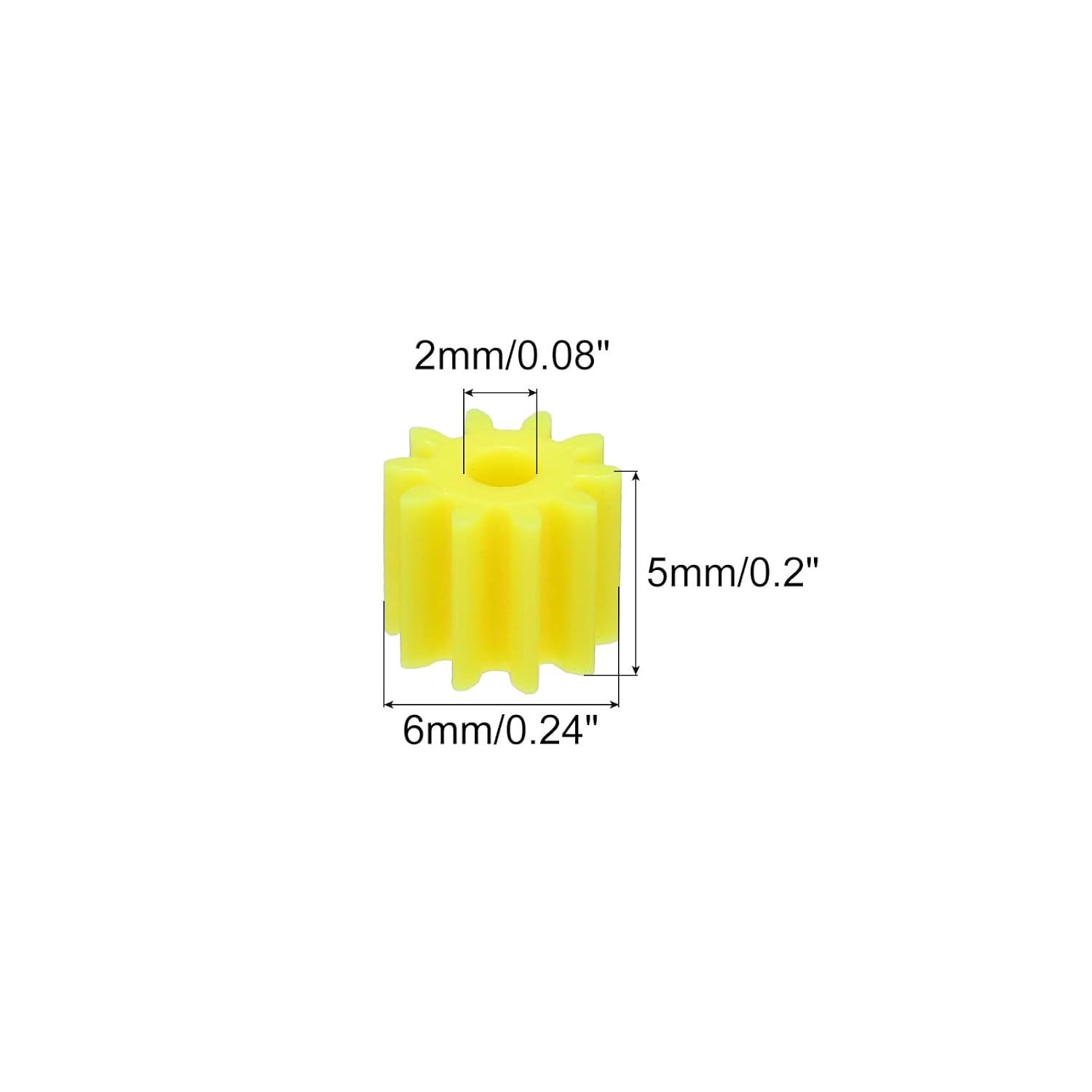 Gli ingranaggi in plastica sono adatti per progetti scientifici fai da te come modelli di auto RC, robot e mulini a vento, per scopi educativi come mostrare come funzionano i rapporti di ingranaggi e per qualsiasi altro progetto fai da te con piccoli motori per la famiglia. Ingranaggio modello, Diametro esterno: 6mm/0.24 pollici; Diametro albero: 2mm/0.08 pollici; Spessore: 5mm/0.2 pollici; Tipo: 102A; Modulo: 0.5; Denti: 10 denti; Materiale: Plastica; Colore: Giallo; Nella confezione: 10 x Ingranaggi in Plastica; Gli ingranaggi in plastica sono realizzati in materiale plastico, sono durevoli, lisci, robusti e hanno una lunga durata. È facile e conveniente da installare e rimuovere. Si prega di controllare attentamente le dimensioni prima di effettuare l'ordine.