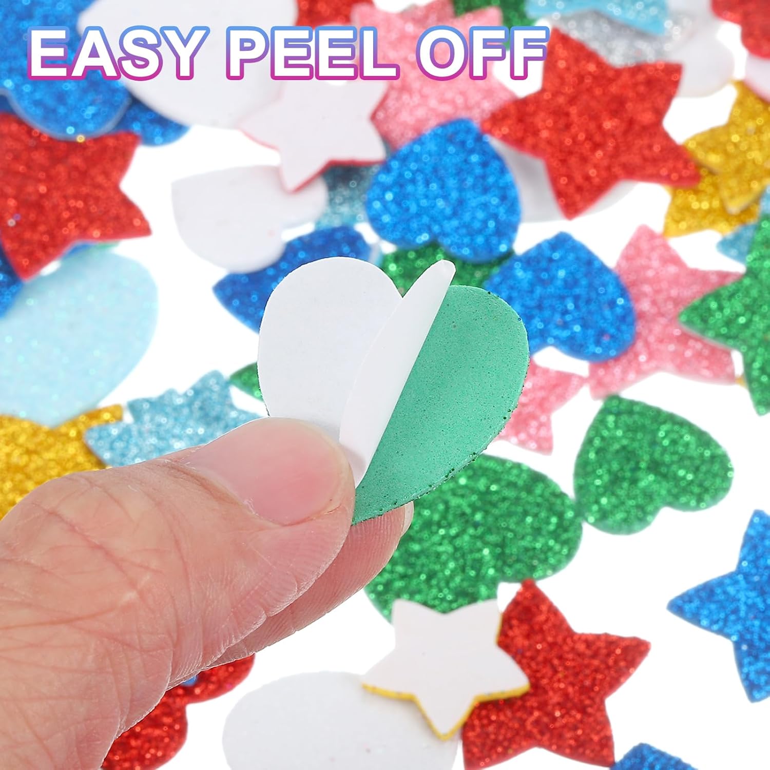 Adesivi in schiuma con glitter di diverse dimensioni con disegni di stelle e cuori, la superficie degli adesivi è ricoperta di polvere scintillante che brilla alla luce, aggiungendo un tocco elegante alla decorazione. Gli adesivi colorati in schiuma sono perfetti per biglietti di auguri, progetti di artigianato, decorazioni per la classe e la casa, telefoni, lavoretti fai da te, ecc., ideali per poster, album, biglietti di auguri e decorazioni per feste. Dimensioni Totali: 17 x 17 mm / 0,7 x 0,7 pollici; 25 x 25 mm / 1 x 1 pollice; 45 x 45 / 1,8 x 1,8 pollici; Forma: Stella e Cuore Materiali in schiuma PVC EVA, morbidi al tatto. Gli adesivi in schiuma con glitter hanno un effetto tridimensionale significativo, che aumenta la profondità e l'interesse della decorazione; Questi adesivi in schiuma per artigianato sono realizzati con materiali di Buona qualità e la superficie è ricoperta da uno strato sottile di glitter, morbido al tatto e con una lucentezza duratura che non si stacca facilmente. Questi cuori in schiuma sono realizzati in materiale EVA con forte adesività, resistenti e riutilizzabili, morbidi per lavoretti, leggeri e autoadesivi, e possono essere attaccati ovunque si desideri. Prima di applicare, assicurarsi che la superficie sia pulita e liscia per migliorare l'effetto adesivo. La superficie è ricoperta da polvere dorata scintillante che potrebbe perdere parzialmente la polvere, un fenomeno normale che non influisce sull'aspetto e sull'utilizzo.