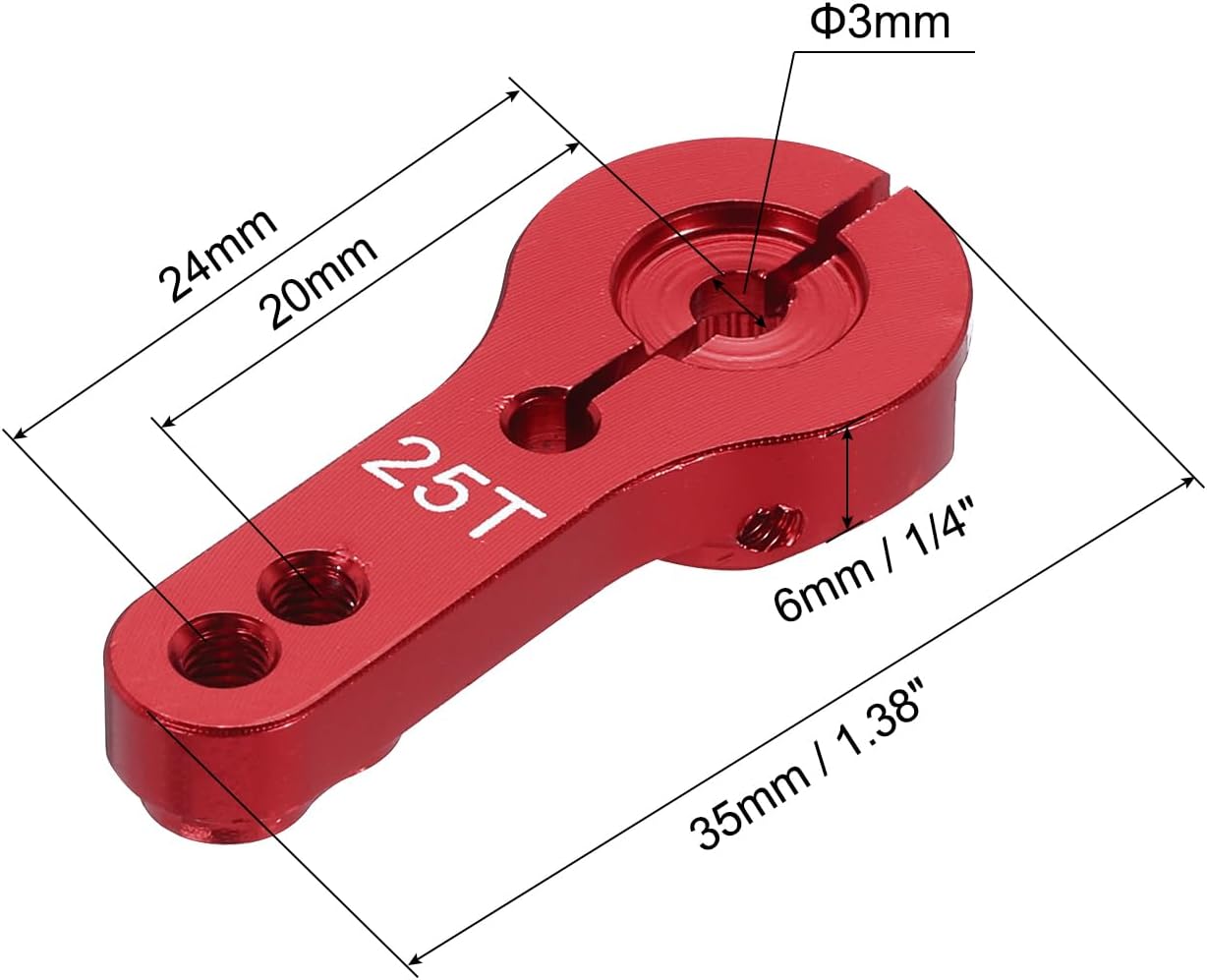 Realizzato in resistente lega di alluminio, il nostro braccio servo lavorato al CNC offre una resistenza e una longevità migliorate, garantendo un'eccellente prestazione per le auto modello RC Fai da Te. Il design particolare non solo riduce il carico ma migliora anche la manovrabilità, consentendo uno sterzo fluido e reattivo. Adatto per vari servocomandi, offre un'installazione facile, rendendolo una scelta eccellente per i costruttori di modelli radiocomandati. Materiale: Metallo;Tipo: Braccio di Sterzo 25T;Lunghezza Totale: 35mm / 1.38 Pollici;Diametro Foro Interno: 3mm;Spessore: 6mm / 1/4";Colore: Rosso;Nella confezione: 5 Pz x Braccio di Sterzo 25T inclusi 2* Viti Questo braccio di sterzo servo offre un'eccellente compatibilità, rendendolo facile da installare e rimuovere. Può sostituire direttamente le parti, offrendo un comodo aggiornamento per la tua auto RC. La vite inclusa fissa saldamente il morsetto diviso sull'uscita del servocomando, garantendo una connessione stabile. Costruzione in alluminio resistente per precisione e durata. Stacca il corno servo esistente, collega il collegamento dello sterzo al nuovo corno, inserisci il corno sull'albero di uscita e fissalo in posizione con la vite centrale. Si prega di consentire un errore di 0.1-0.5mm dovuto alla misurazione manuale.