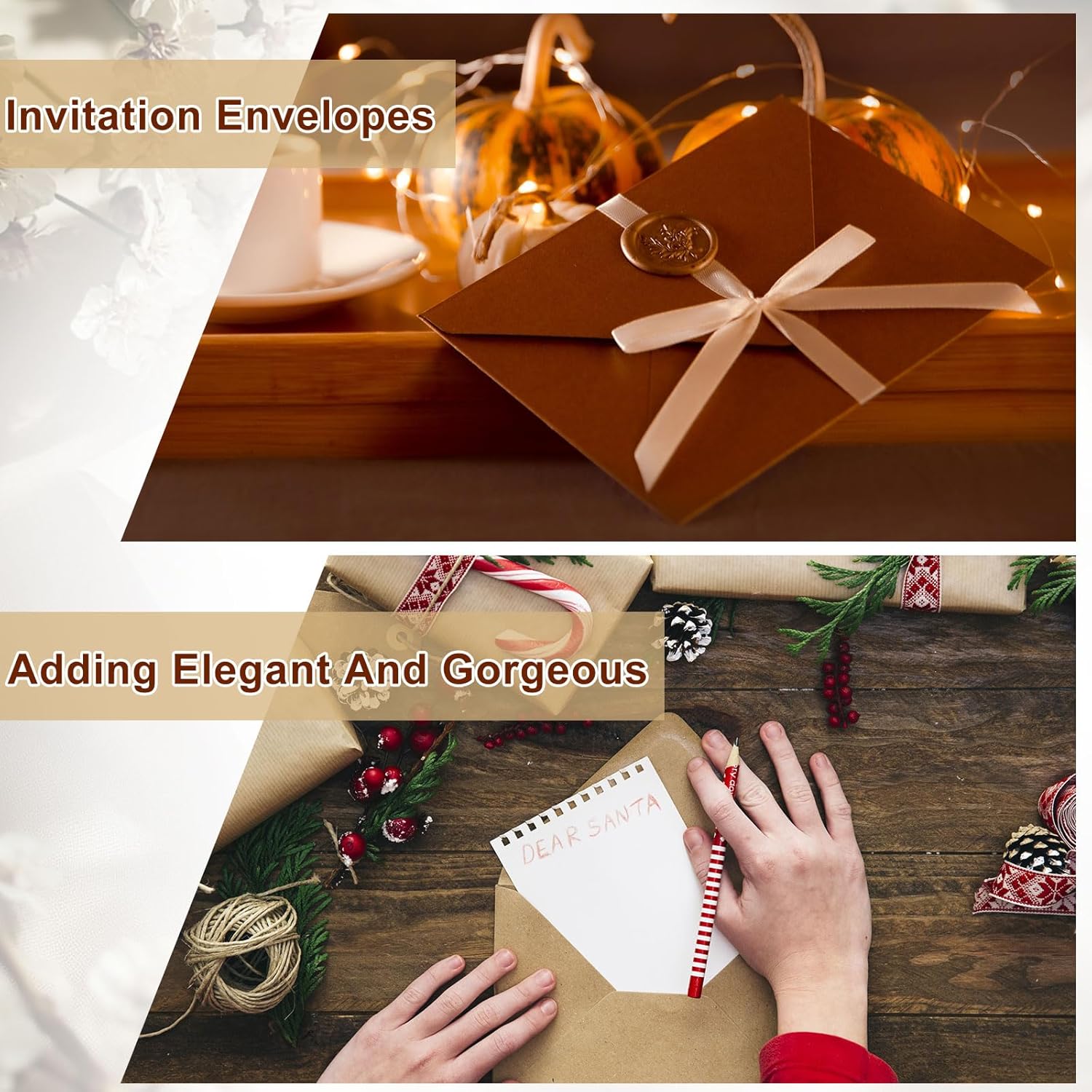 Confezione e Dimensioni: Riceverai 50 buste con dimensioni 15,8 x 10,8 cm / 6 x 4 pollici. Possono contenere facilmente oggetti cartacei fino a 4 x 6 pollici, adatti per foto, lettere, posta, corrispondenza personale o inviti, ecc. Materiale Cartaceo: Le buste per cartoline sono realizzate in carta spessa con design a linguetta a V, offrendo un aspetto resistente, elegante e testurato. Una buona scelta di buste riflette il tuo stile elegante e raffinato. Linguetta a V Autoadesiva: Le buste per cartoline di auguri dispongono di una striscia autoadesiva che si attiva con l'acqua e si sigilla facilmente senza bisogno di colla o nastro aggiuntivo, rendendo la preparazione e l'invio delle cartoline più efficienti. Non si sgualciscono quando le buste per inviti vengono esposte all'acqua. Creatività Fai da Te: Le buste bianche possono essere un processo creativo, permettendoti di stampare, disegnare o scrivere parole che preferisci sulla busta per adattarle al tema. Aggiungi un tocco di unicità ai tuoi inviti, cartoline di auguri o comunicazioni aziendali. Ampia Applicazione: Le nostre buste per inviti sono la scelta ideale per molte occasioni, tra cui matrimoni, feste di compleanno, feste di laurea, Natale, Giorno del Ringraziamento, celebrazioni, anniversari, appunti, affari o qualsiasi altra esigenza.