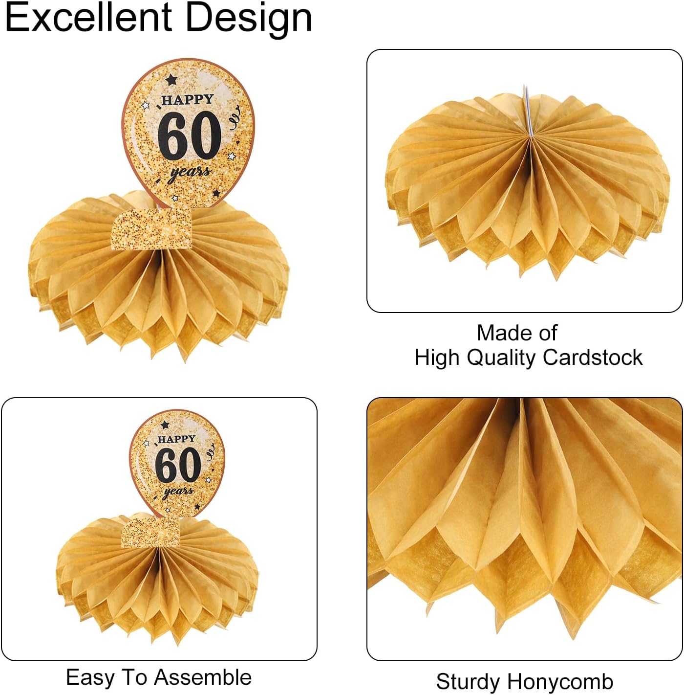 QUARKZMAN 60º Compleanno Centrotavola per Decorazioni per Decorazioni Tavoli Tavolo per Forniture per Decorazioni Feste di Compleanno Uomini e Donne (Nero + Tono Oro)