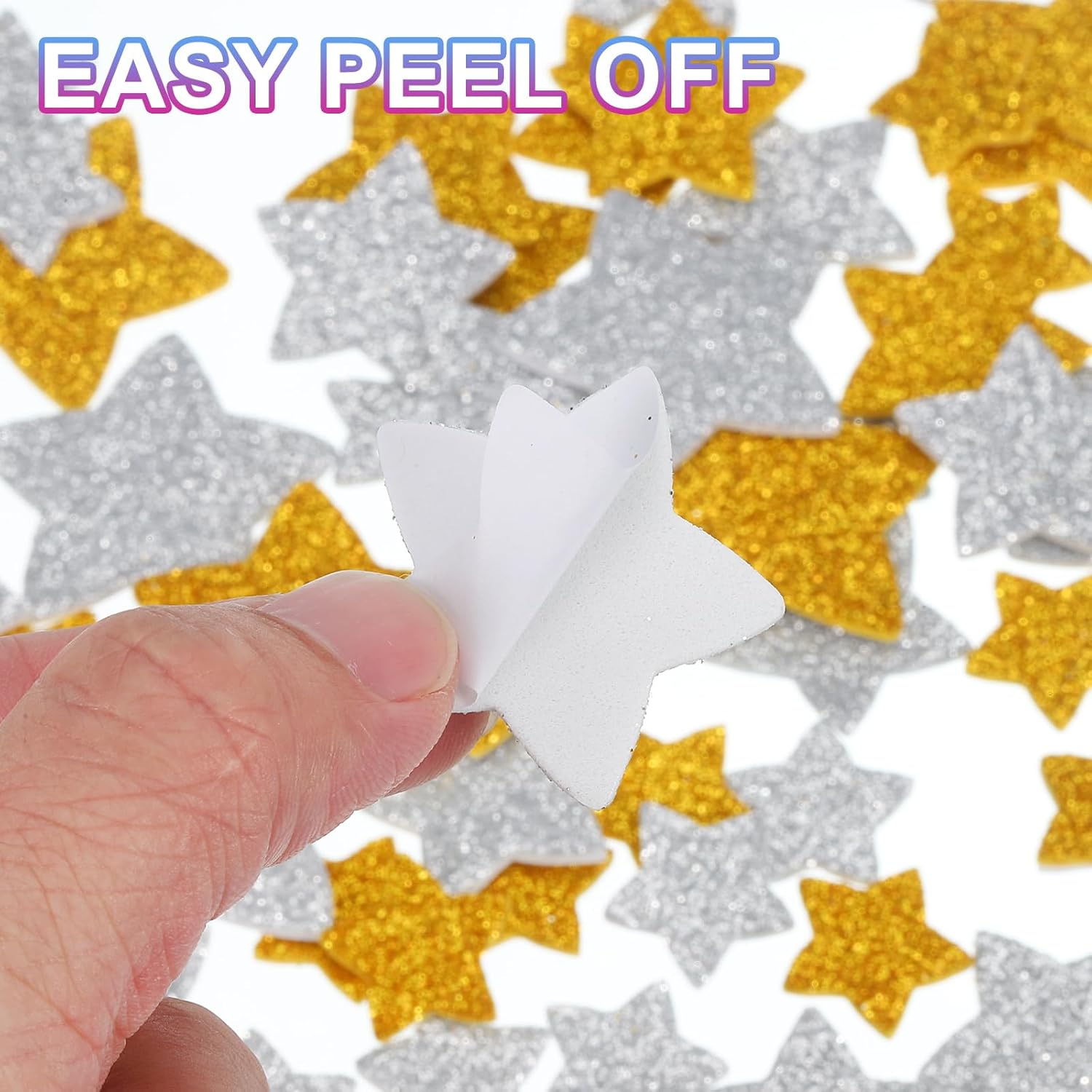 Adesivi in schiuma glitterata con design a stella in diverse dimensioni, effetto visivo scintillante e texture tridimensionale della schiuma. Ogni adesivo è luminoso e perfetto per poster, album, biglietti di auguri e decorazioni per feste. Gli adesivi colorati sono ideali per biglietti, progetti artistici, decorazioni per la casa e la suola, telefoni, lavoretti fai da te, ecc. Colore: Oro Argento; Dimensioni totali: 15 x 15 mm / 0.6 x 0.6 pollici; 25 x 25 mm / 1 x 1 pollici; 45 x 45 / 1.8 x 1.8 pollici; Forma: Stella Materiali in schiuma PVC e EVA, morbidi al tatto. Gli adesivi glitterati hanno un effetto tridimensionale , aumentando profondità e interesse nella decorazione. Realizzati con materiali di qualità e ricoperti da glitter, sono morbidi, brillanti a lungo e resistenti. Questi adesivi a forma di cuore sono in EVA, adesivi, resistenti e riutilizzabili, morbidi per lavoretti, leggeri e autoadesivi. Si attaccano ovunque si desideri. Prima di attaccarli, assicurarsi che la superficie sia pulita e liscia per migliorare l'adesione. La superficie è ricoperta da polvere dorata scintillante, che potrebbe perdere un po' di polvere senza compromettere aspetto e utilizzo.