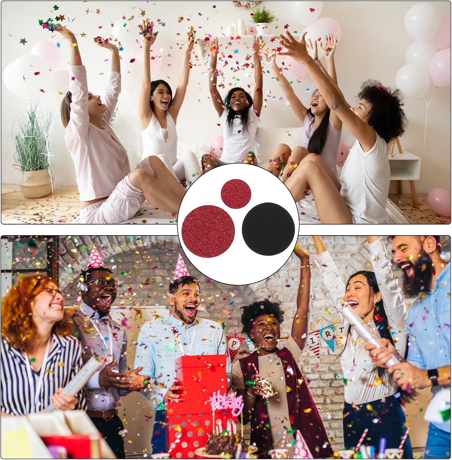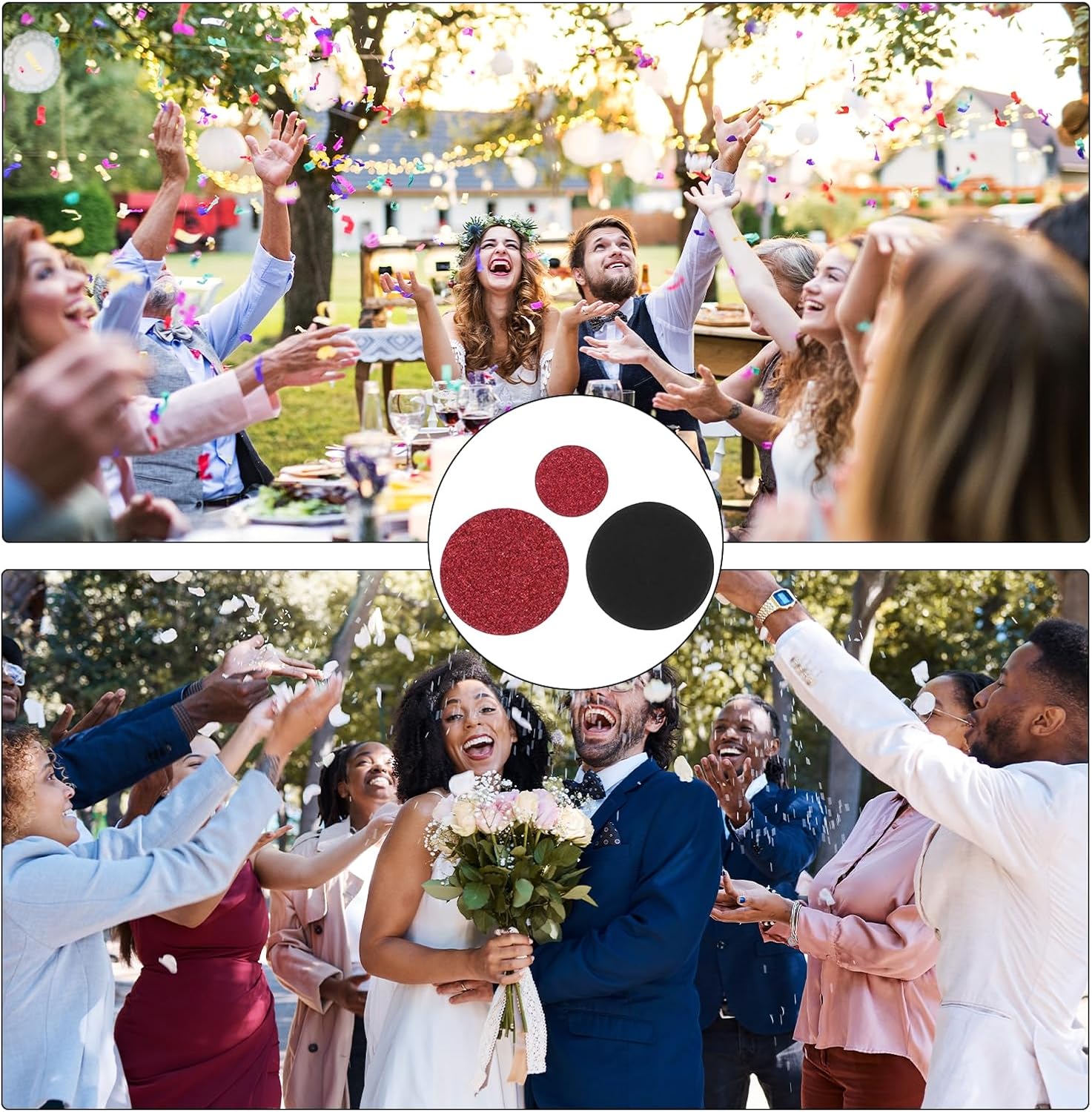 Questi coriandoli con superficie scintillante e colori vivaci e brillanti aggiungeranno un'atmosfera più festosa. Le dimensioni ridotte e il peso leggero possono soddisfare le tue esigenze di decorazione e artigianato fai-da-te. Perfetto per barrette di coriandoli, cestini, secchi, coni, borse, palloncini, tavoli, vasi, arte mista, ecc. La brillante decorazione di coriandoli è perfetta per compleanni, matrimoni o qualsiasi festa ed evento. Forma: rotonda; Colore: rosso, nero; Dimensioni: 2,5x2,5 cm/1x1 pollice; Materiale: carta glitterata; Confezione: 100 coriandoli rotondi. Ci sono quantità sufficienti per le decorazioni della tua festa di compleanno e di matrimonio, abbinate ad altre forniture per feste. Sembrano molto lucenti e belli, questi graziosi ed eleganti coriandoli sparsi combinati con colori classici, che possono creare un'atmosfera piacevole per la tua festa. Puoi goderti il momento felice con i tuoi amici o famiglie. I nostri coriandoli sono così facili da spargere sui vostri tavoli attorno a centrotavola, tavolo da torta, tavolo da dessert, tavolo da regalo e facili da pulire! Realizzato in carta di cartone di alta qualità con superficie glitterata, nessuna puntura particolare, sicuro e affidabile, non facile da sbiadire, può essere utilizzato ripetutamente.