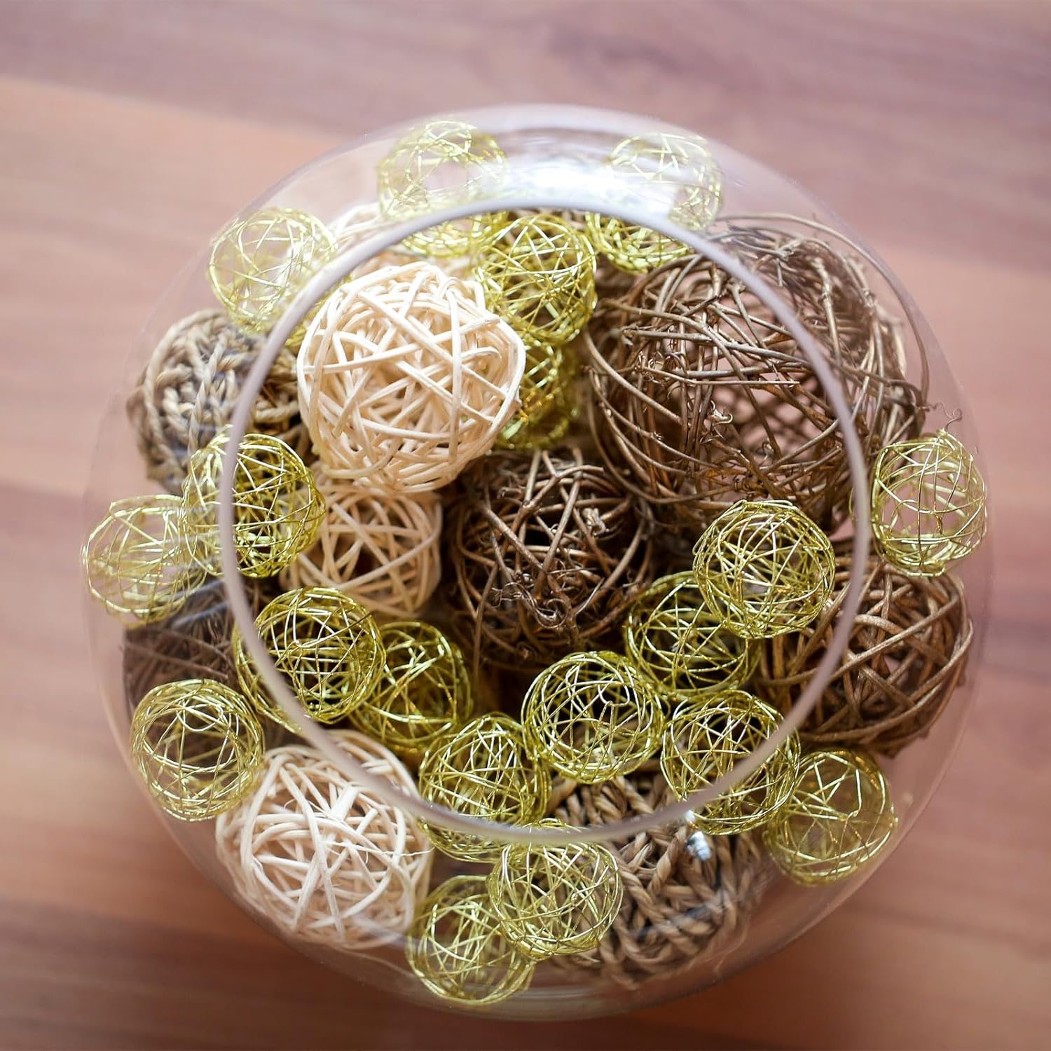 Colore: marrone; Diametro: 4 cm/1,6 pollici; Fornitura: 22 pezzi x palline in rattan Materiale: Le palline decorative sono realizzate in rattan, non sbiadiscono, hanno una superficie liscia senza sbavature, sono colorate in modo uniforme e sono leggere e compatte. Il nuovo design rende le palline di rattan più spesse, più resistenti e meno soggette a deformazioni, allentamenti o rotture. Ampie applicazioni: ideale per progetti fai-da-te, decorazioni da giardino, decorazioni da tavola, decorazioni murali e molte altre occasioni. Che si tratti di un compleanno, un matrimonio, una vacanza o una casa/ufficio, aggiungono un'eleganza naturale a qualsiasi stanza. Accessori artigianali fai-da-te per riempitivi di vasi: le palline in rattan possono essere appese al muro per creare un'atmosfera calda. Con le catenelle luminose puoi creare decorazioni luminose uniche. Collocati in vasi trasparenti, donano agli ambienti una naturale vivacità. Decorazione attraente: possono essere facilmente attaccati a specchi o legno con nastro biadesivo. Facile da rimuovere senza danni, senza parti sparse. Nota: utilizzare con attenzione ed evitare forti impatti/pressioni