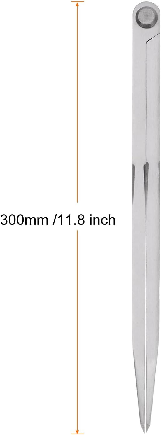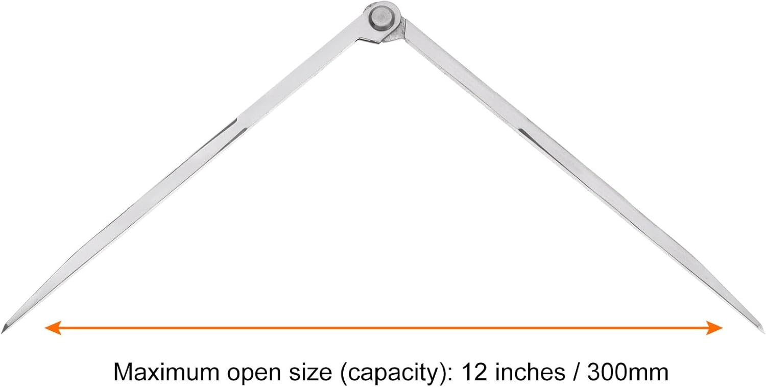 Dimensioni: bussola di navigazione in metallo 300 mm di lunghezza x 22 mm di larghezza x 14 mm di altezza con una lunghezza di apertura massima (capacità) di 12 pollici/300 mm. Materiale: la bussola per carpenteria di precisione è forgiata in acciaio al carbonio, con trattamento termico complessivo, resistenza all'usura, durata e lunga durata. Caratteristica: le aste forgiate in acciaio al carbonio di alta qualità sono dotate di punte temprate per una marcatura precisa del pezzo e una messa a punto precisa semplicemente aprendo o chiudendo l'asta. Applicazione: la bussola è un utile strumento di trasferimento delle misurazioni per misurare la dimensione interna di parti rotonde o oggetti di forma irregolare. È ideale anche per disegnare cerchi su metallo, linee di divisione, disegnare archi, segmenti di linea, disegni geometrici, ecc. Utilizzo: superficie liscia, misurazione accurata, può essere utilizzato a lungo e non è facile da allentare.