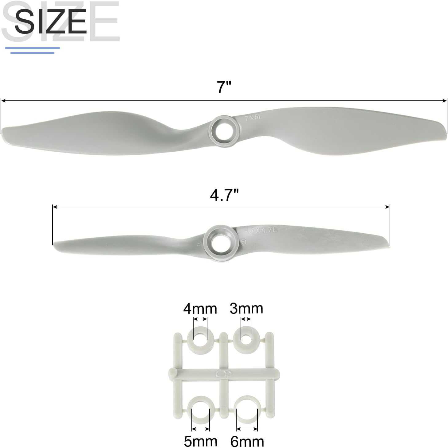 Le eliche RC vengono utilizzate su velivoli ad ala fissa, aeroplani, come eccellenti parti di ricambio per eliche. Contenuto della confezione: 4 eliche per aeroplani ad ala fissa; Quantità di palette: 2; Stile: 4,7x4,7, 7x5 pollici; Diametro dell'elica: 4,7, 7 pollici; Altezza: 7,3/8,7 mm; Dimensioni rondella elica: 5,7/4,8/2,9/4,8 mm (4,7x4,7), 3,7/4,8/5,8/2,8 mm (7x5) Questa elica può trovare la dimensione e il passo migliori per il tuo aereo, è davvero facile da bilanciare, il che rende questa elica adatta al tuo aereo elettrico, ottima per il volo generale dell'aereo. Le eliche per aeroplani RC a 2 palette sono realizzate in materiale plastico che riduce la massa rotante per prestazioni più elevate e una maggiore durata. Si prega di controllare il diametro di rotazione e il passo prima di ordinare per assicurarsi che sia adatto al motore dell'aereo RC.