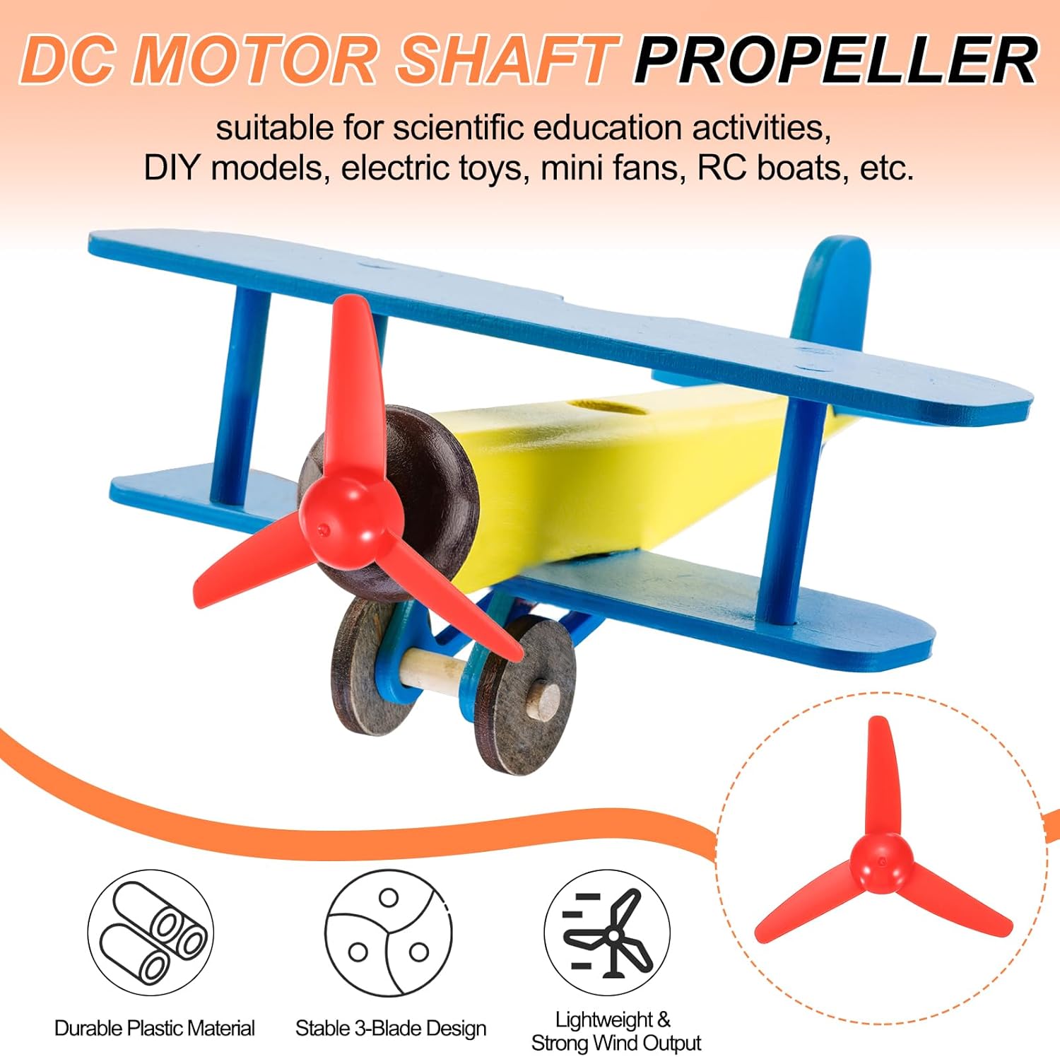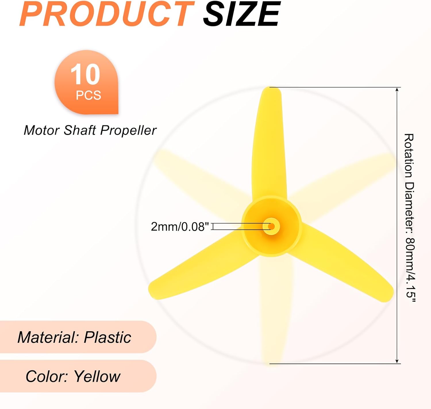 Questa elica a forma di ventaglio è un accessorio progettato per piccoli modelli come navi e aerei. Realizzata in plastica resistente, duratura e anti-usura. È adatta per attività di educazione scientifica, modelli DIY, giocattoli elettrici, mini ventole, barche RC, ed è una scelta ideale per gli appassionati di modellismo. Diametro Elica: 80mm/3.15 pollici; Diametro Albero: 2mm/0.08 pollici; Colore: Giallo; Confezione Da 10 Eliche Con Albero Da 2mm Materiale Plastico Resistente: Le nostre eliche sono realizzate con cura in plastica, riducendo notevolmente il peso complessivo, garantendo una forte spinta e resistenza all'usura, riutilizzabili a lungo. Design A 3 Pale: L'elica a 3 pale ha una struttura stabile, offrendo una spinta potente e un'esperienza di funzionamento fluida. Di piccole dimensioni, non occupa spazio, è facile da trasportare e installare. Montaggio Semplice: Non sono necessari strumenti speciali, basta installarla sul modello. Si prega di considerare una differenza di misurazione di ±0.05mm dovuta alla misurazione manuale.