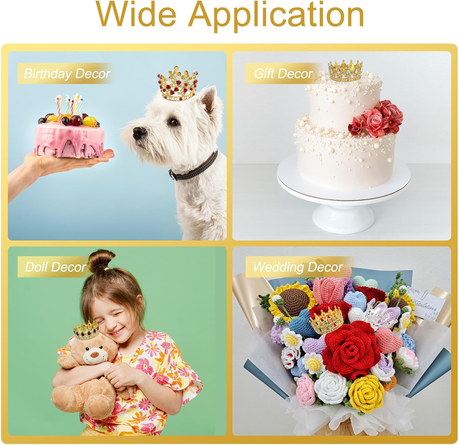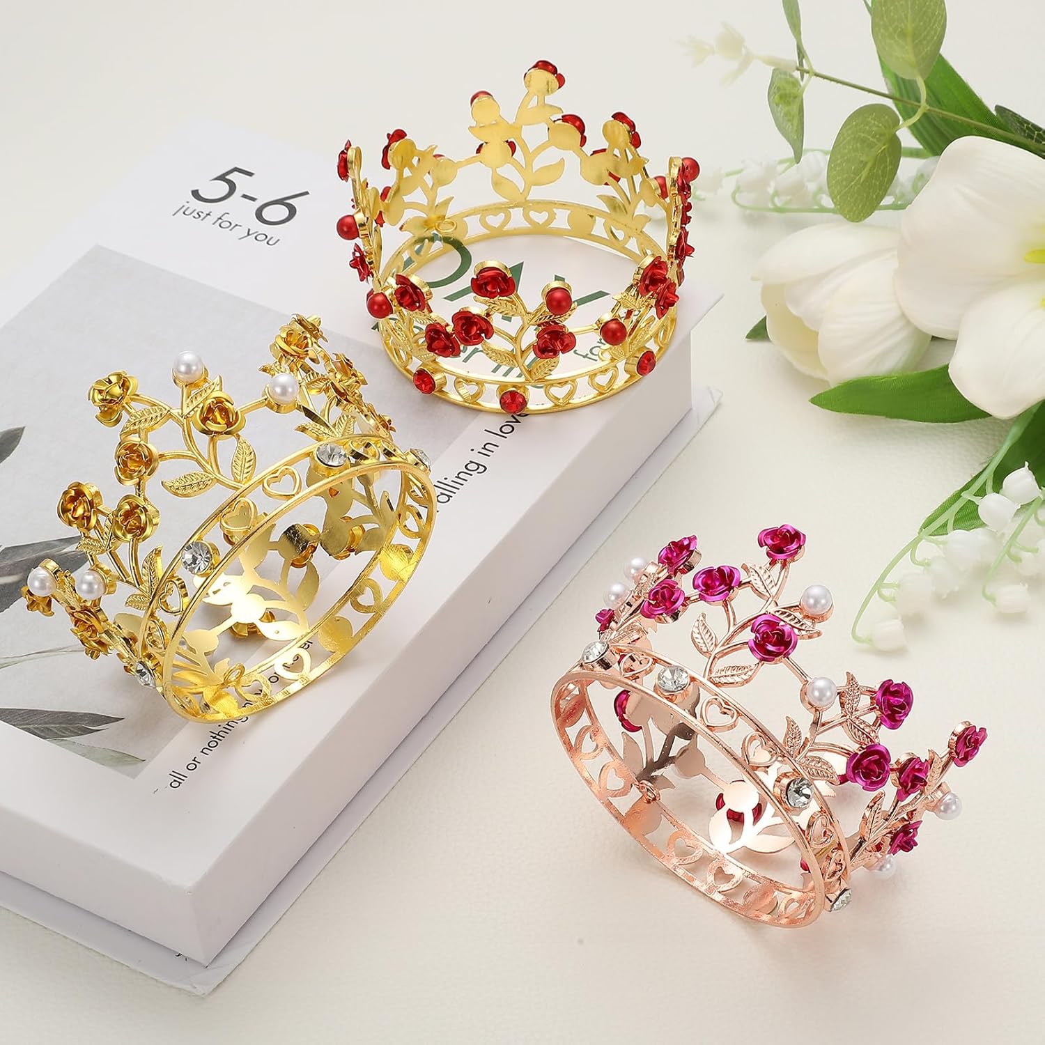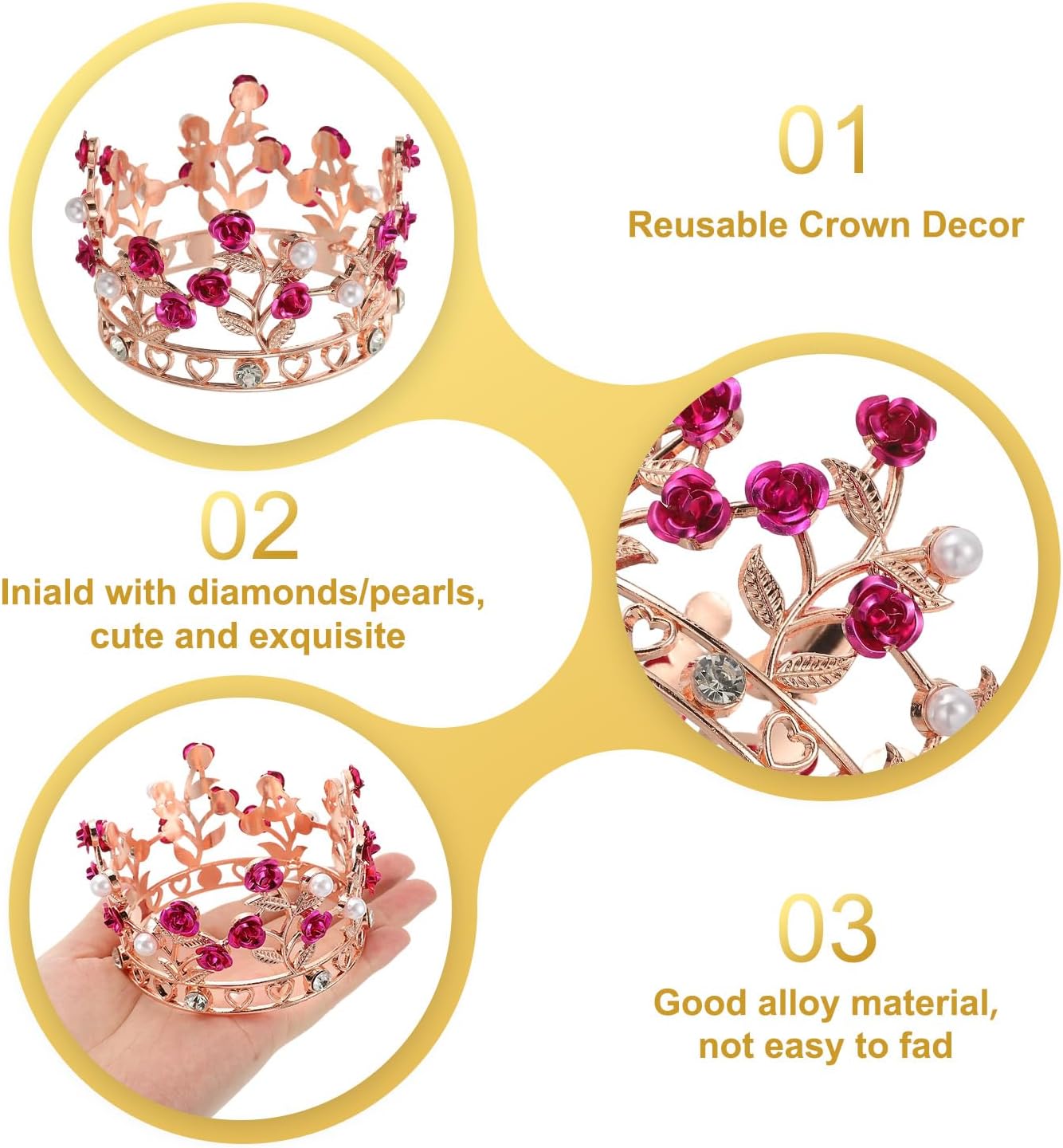Tiara per Decorare Torte: Riceverai 1 tiara per torta. È carina ed esquisita, ha un diametro di 8,3 / 3,3 pollici e un'altezza di 5,5 / 2,2 pollici, adatta per torte di varie dimensioni, forme e stili, portando una bellezza unica alla tua celebrazione. Lavorazione Fina: L'esquisita tiara è realizzata con materiali scintillanti in cristallo e lega, che brillano al sole e alle luci, rendendo la tua torta più attraente e mettendo in risalto il bagliore dell'ospite della festa. Facile da Usare: La tiara realizzata con materiali in lega di buona qualità è resistente, non si rompe facilmente ed è riutilizzabile, rendendo la tua festa piena di divertimento e felicità. Si adatta a vari stili di feste e soddisfa le tue diverse esigenze di decorazione. Ampia Applicazione: Le decorazioni per torte con mini corone sono adatte per compleanni, matrimoni, feste di gala e a tema principesse. Puoi mettere una tiara sulla torta per aggiungere il suo fascino, attirare l'attenzione e lasciare un'impressione profonda sugli altri. Puoi anche indossare la tiara come copricapo sulla testa del piccolo ospite della festa. Regali per Principesse e Regine: Queste belle mini corone per torte sono ottimi accessori e decorazioni per torte, perfette per creare sorprese per le membri femminili della famiglia e la fidanzata in occasioni importanti come compleanni, Natale, Capodanno, anniversari, ecc.