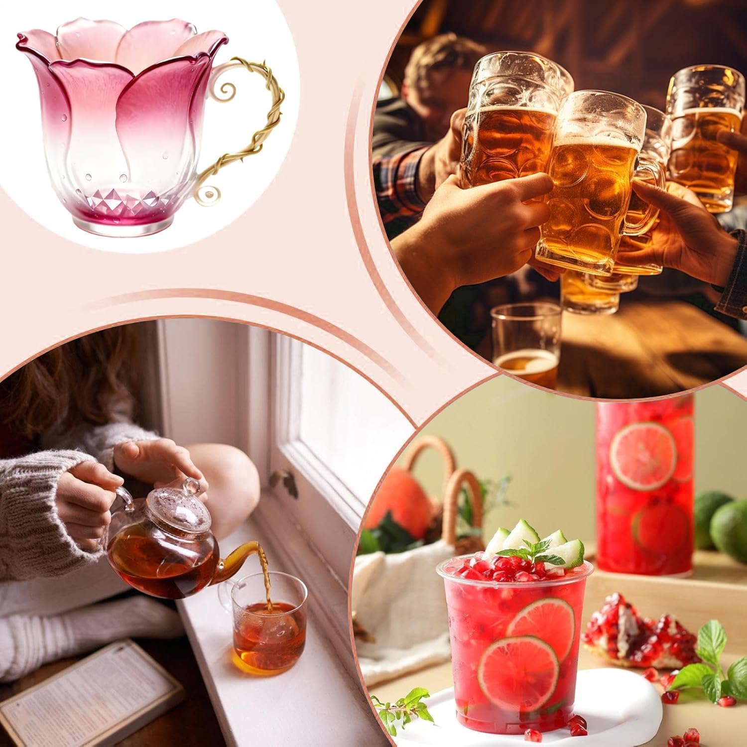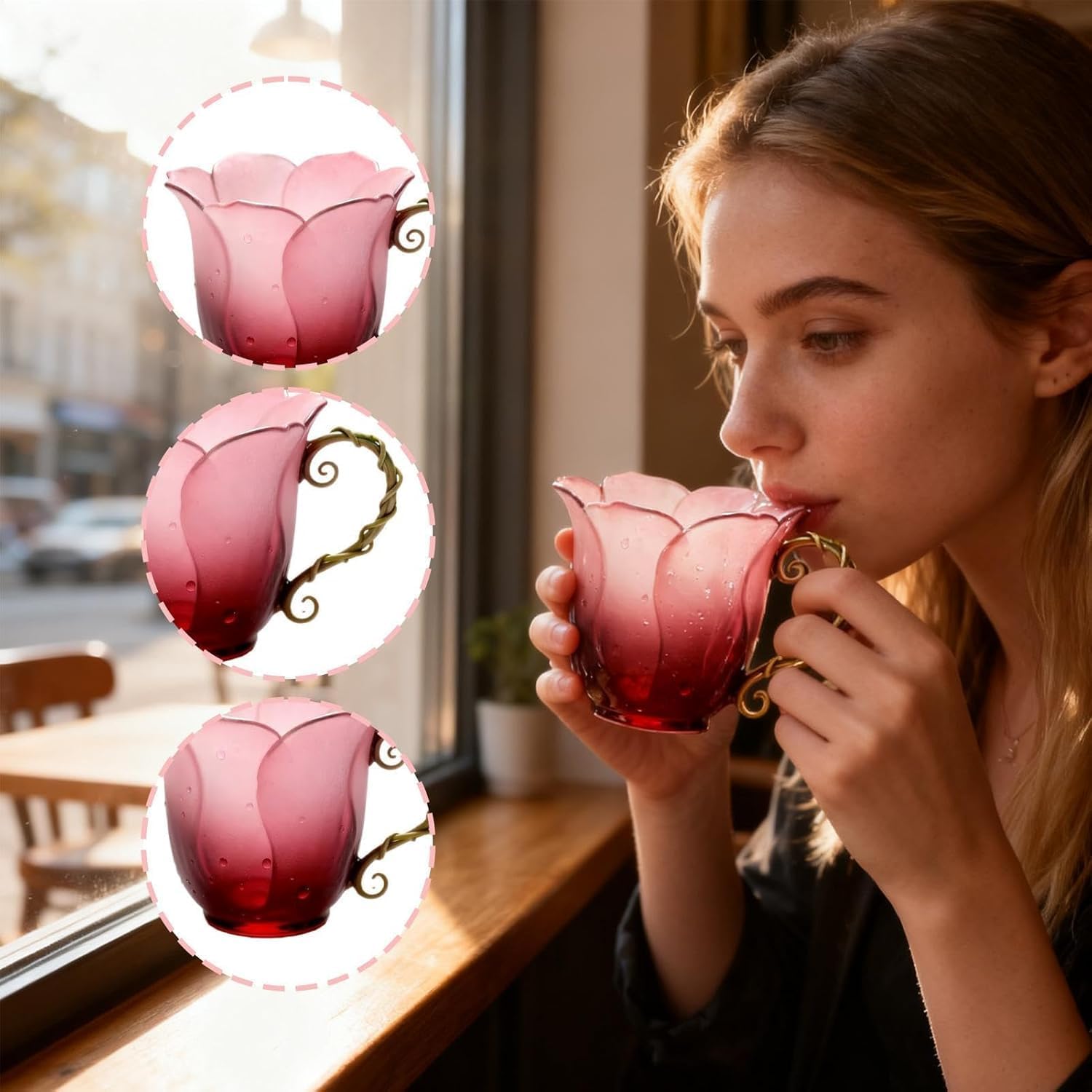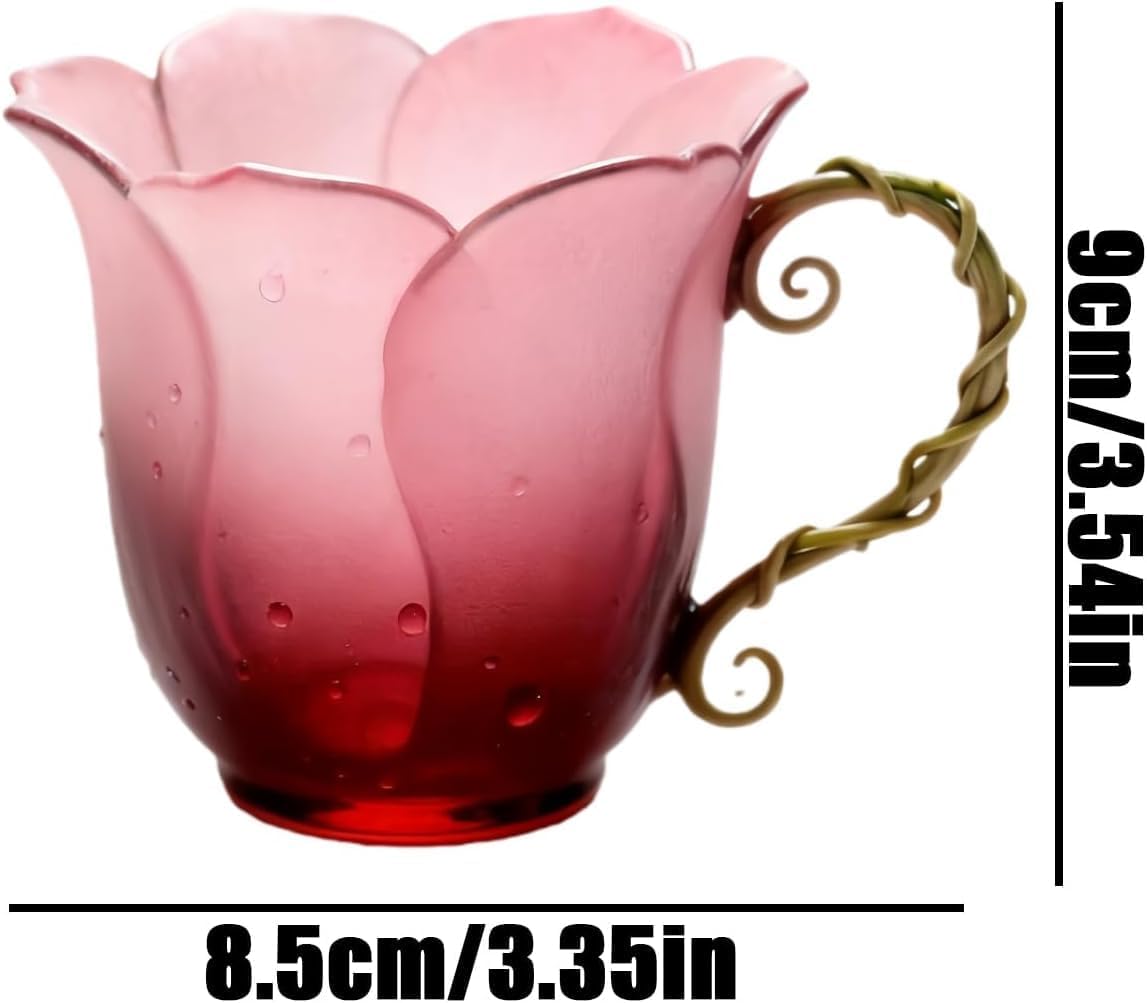 Manico a forma di vite: Questa tazza presenta un elegante manico curvo a forma di vite, che garantisce una presa comoda e aggiunge un tocco di bellezza naturale. Il manico è pratico e decorativo, integrandosi perfettamente con l'arredamento della tua casa. Il suo design artistico a forma di vite è perfetto per l'uso quotidiano e valorizza le tue stoviglie. Motivo floreale naturale: questo bicchiere artigianale, ispirato ai petali in fiore e alla rugiada mattutina, emana eleganza a ogni sorso. Perfetto per caffè, tè o altre bevande floreali, trasforma i momenti più semplici in momenti di pace e tranquillità. Forma floreale: questo bicchiere a forma di fiore brilla delicatamente alla luce del sole, trasformando il tuo rituale quotidiano del caffè o del tè in un momento di tranquillità. Ogni sorso è delizioso come una giornata di primavera. Facile da pulire: realizzata in vetro trasparente, resistente agli odori e alle macchie, questa tazza floreale è facile da pulire e respinge efficacemente macchie e odori, garantendo un sorso confortevole. È la scelta perfetta per gustare caffè o tè a casa o al lavoro. Opzioni di colore obliquo: ogni tonalità incarna uno stato d'animo: calmo, romantico, passionale o tranquillo. Il colore ombré aggiunge profondità a questo bicchiere resistente al calore, rendendolo il complemento perfetto per le tue bevande o per l'arredamento della casa. È perfetto per tè, caffellatte o bevande floreali, o per composizioni floreali.