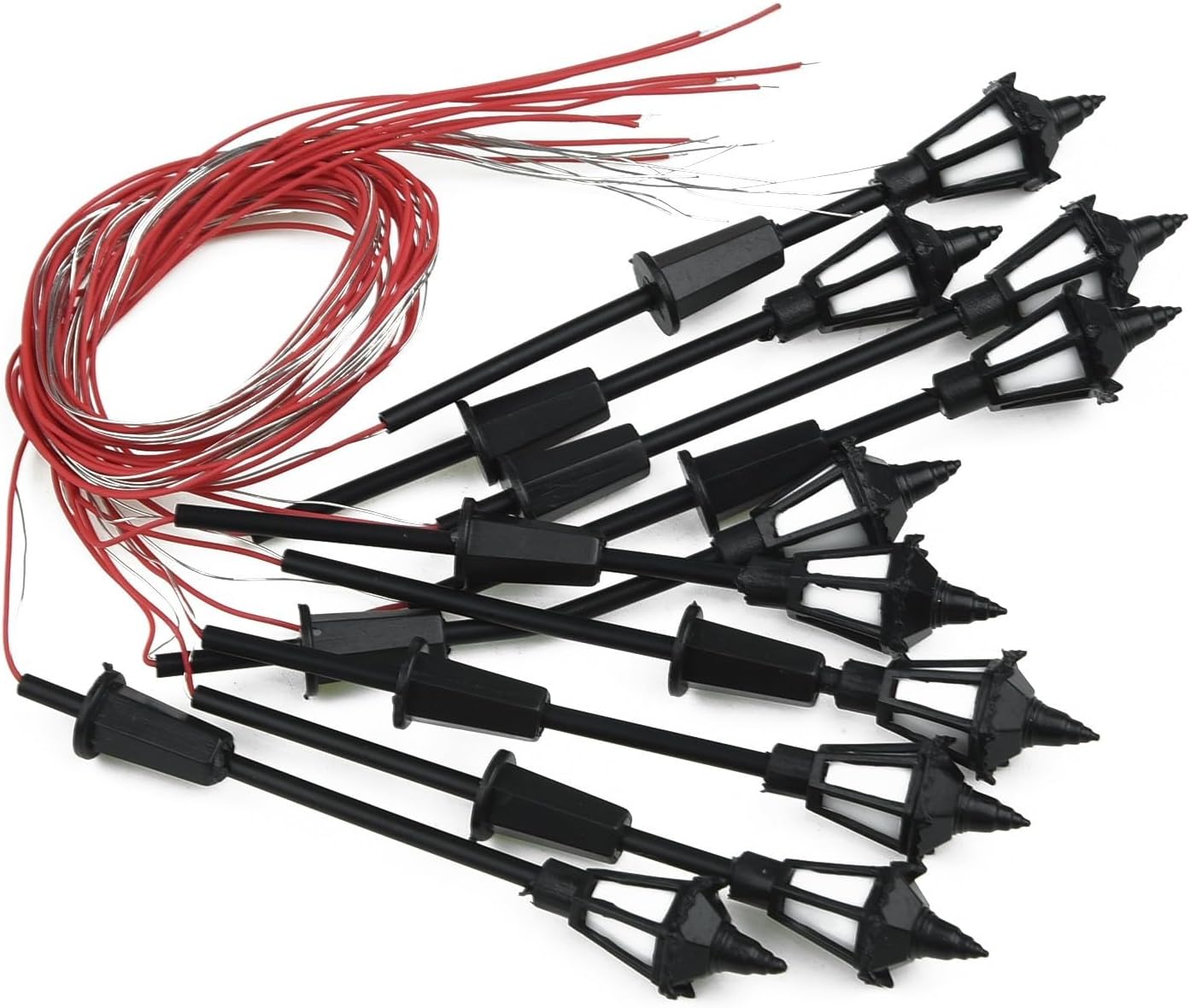 10 lampioni stradali modellati: lampioni a LED da 3 V in scala 1:75, perfetti per modellismo di treni o accessori per layout stradale. 【materiali】 sicurezza, rispetto dell'ambiente e durata. 【Include cablaggio e LED】, che permettono di accendere i lampioni. Progettato per tensione di alimentazione da 3 V, che li rende compatibili con varie configurazioni. Ideale per la costruzione di modelli di tavoli da sabbia: decorazione da giardino, luci per modellini di scena e progetti fai da te.