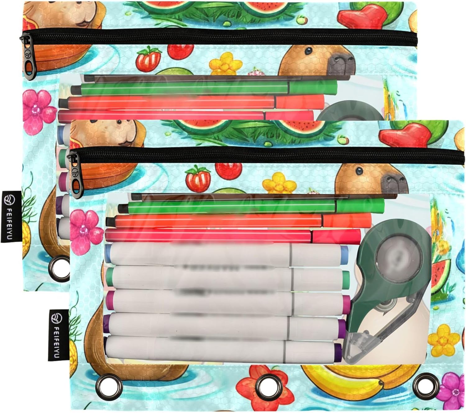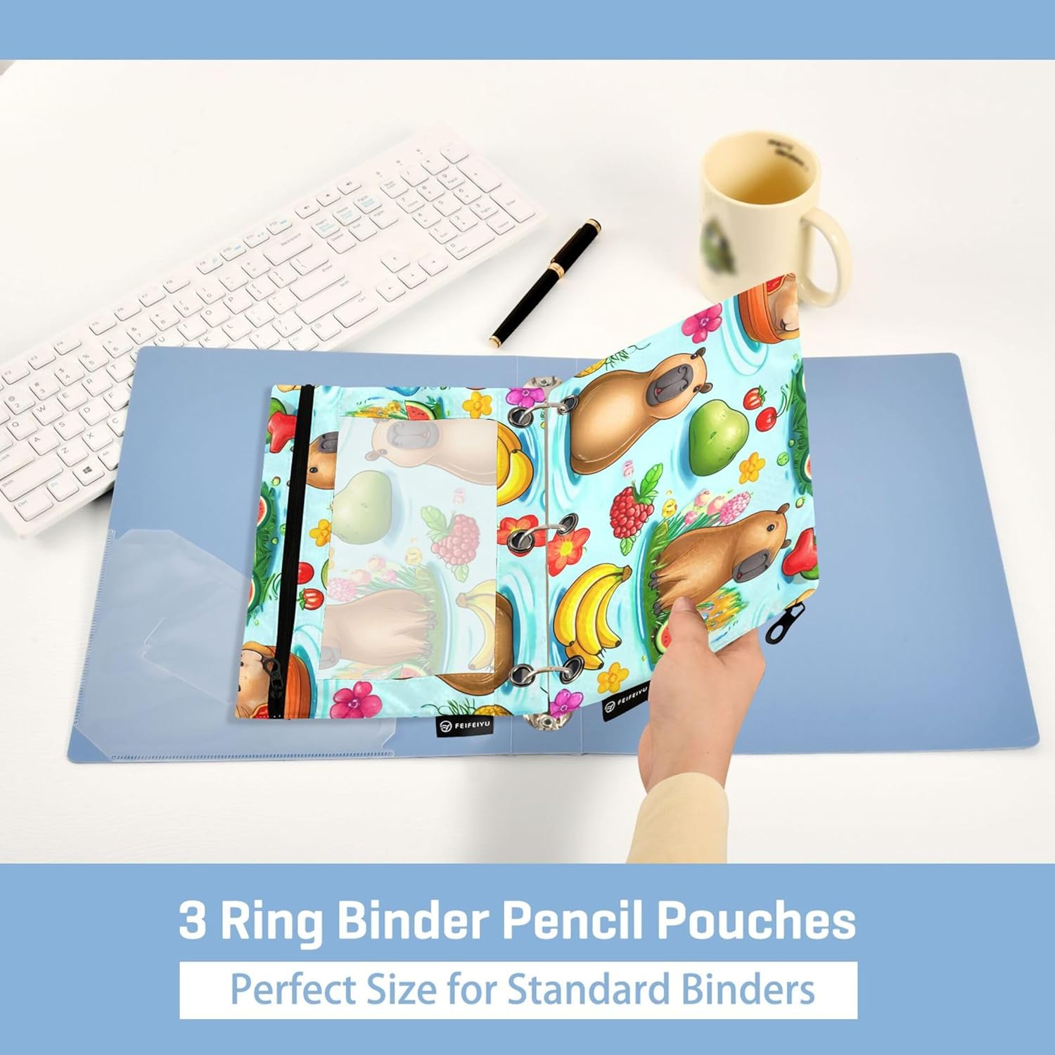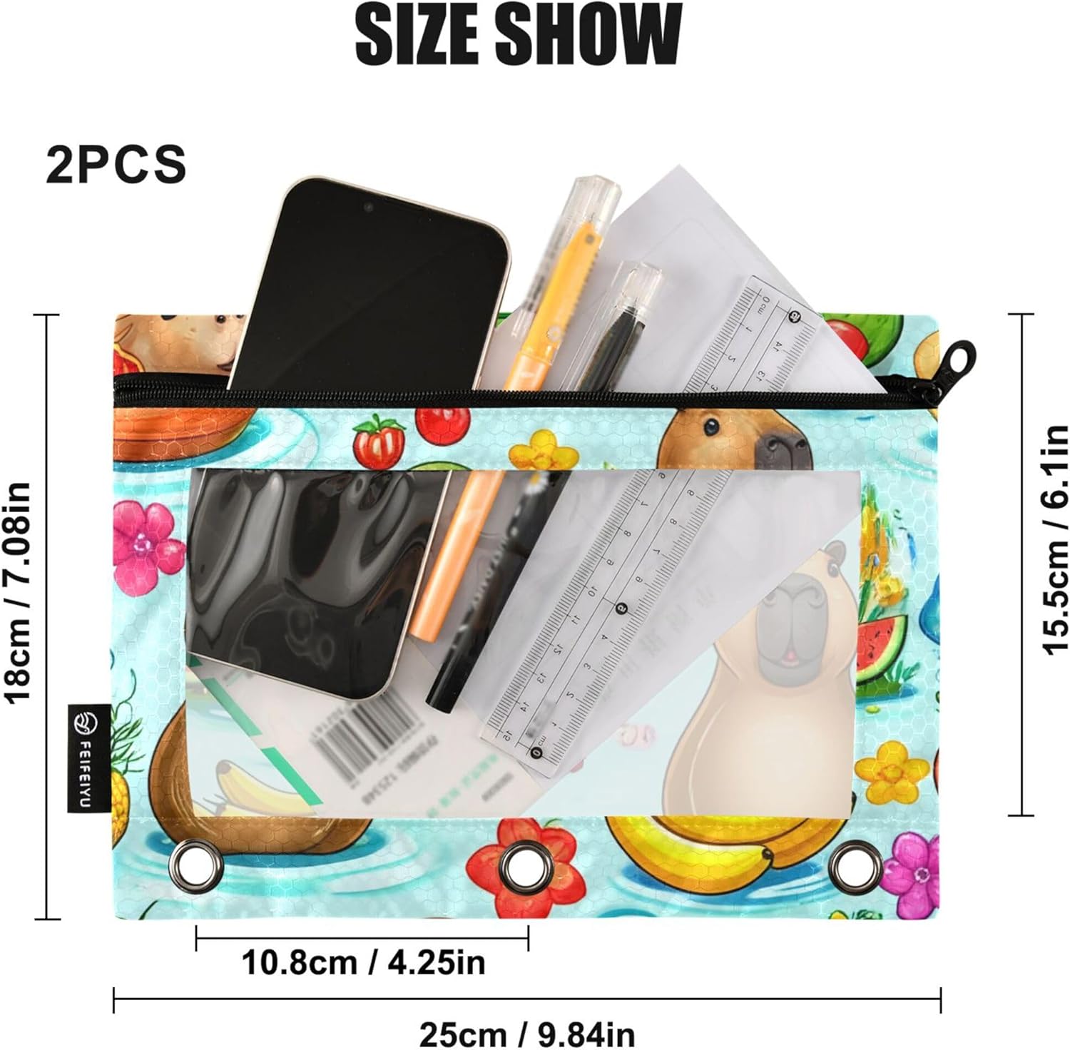 Materiale durevole: realizzato in tessuto lucido con motivo a calcio (100% poliestere), il raccoglitore per pittura è resistente all'acqua e costruito per durare, garantendo che la cancelleria rimanga protetta. Spazio spazioso: dimensioni di 25 x 18 x 0,5 cm e una dimensione utilizzabile di 15,5 x 25 cm, l'astuccio per raccoglitori offre ampio spazio per penne, matite e pennarelli. Design pronto per il raccoglitore: con una distanza tra i fori di 10,8 cm, il raccoglitore a 3 anelli si integra perfettamente con i raccoglitori standard a 3 anelli, rendendolo una scelta versatile per l'organizzazione. Facile visualizzazione: la sezione frontale trasparente del raccoglitore con cerniera consente una facile visibilità e accesso ai tuoi oggetti, rendendolo un comodo strumento per organizzazione ed efficienza. Stampe affascinanti: la custodia colorata in plastica presenta un delizioso mix di simpatici animali, fiori colorati e disegni festivi, aggiungendo un tocco giocoso alle tue esigenze organizzative.