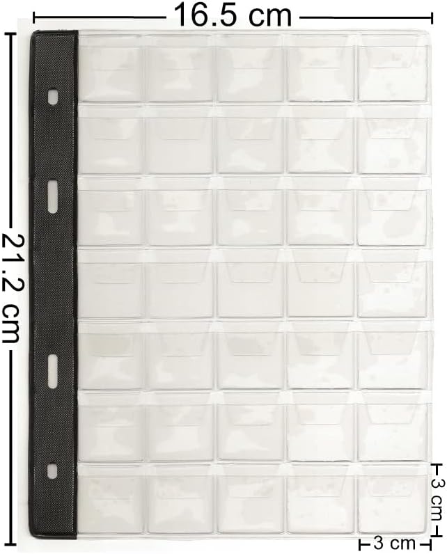 RACCOGLITORE DI MONETE con 300 monete di diverse dimensioni PICCOLO MEDIO GRANDE MIGLIORE QUALITÀ DEL PRODOTTO – SODDISFAZIONE GARANTITA – Questo album è prodotto con molta attenzione, prestando attenzione ai dettagli per garantire la massima qualità del prodotto. Il raccoglitore può contenere facilmente fino a 17 fogli (tasche), che è molto di più rispetto ad altri marchi disponibili sul mercato. Dimensioni dell'album: 21 x 23 x 5,5 cm = 8,3 x 9 x 2,2 pollici 14 fogli interni (160 mm x 210 mm). 4 pagine con 35 tasche per monete (27mm x 27mm) – monete piccole [Argento 3p, 4p, 6p, 20p] /ET/ 5 pagine con 20 tasche per monete (35mm x 40mm) – monete medie [€ 1 € 2 50p £1 £2] /ET/ 5 pagine con 12 tasche per monete (46mm x 50mm) – monete grandi [£5 o corone] /E/ 14 divisori rossi e un indice