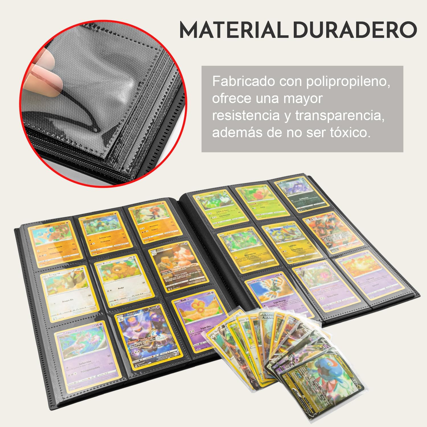 Protezione completa contro gli incidenti: materiale impermeabile che protegge le tue carte da liquidi e macchie; ideale per tornei, scambi con amici o viaggi. Inserto laterale anticaduta: a differenza delle tasche con apertura superiore, le tue carte rimangono saldamente in posizione anche quando giri le pagine o porti con te il raccoglitore. Capacità adatta per collezioni in crescita – disponibile nella versione da 396 slot/400 tasche o 540 slot/600 tasche; perfetto sia per i principianti che per i collezionisti esperti. Compatibilità universale: progettato per Yu Gi Oh, MTG, Lorcana, Digimon, Adrenalyn, Marvel Champions, Football Cards, Fantasy Riders e altro, senza piegare gli angoli o danneggiare le carte. Chiarezza di visualizzazione e idea regalo ideale: buste trasparenti di alta qualità che mettono in risalto ogni dettaglio; un regalo perfetto per compleanni, Natale o qualsiasi occasione speciale.