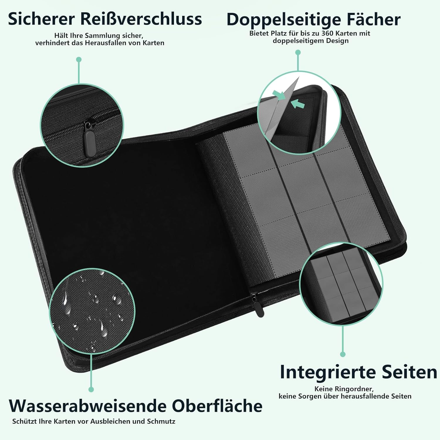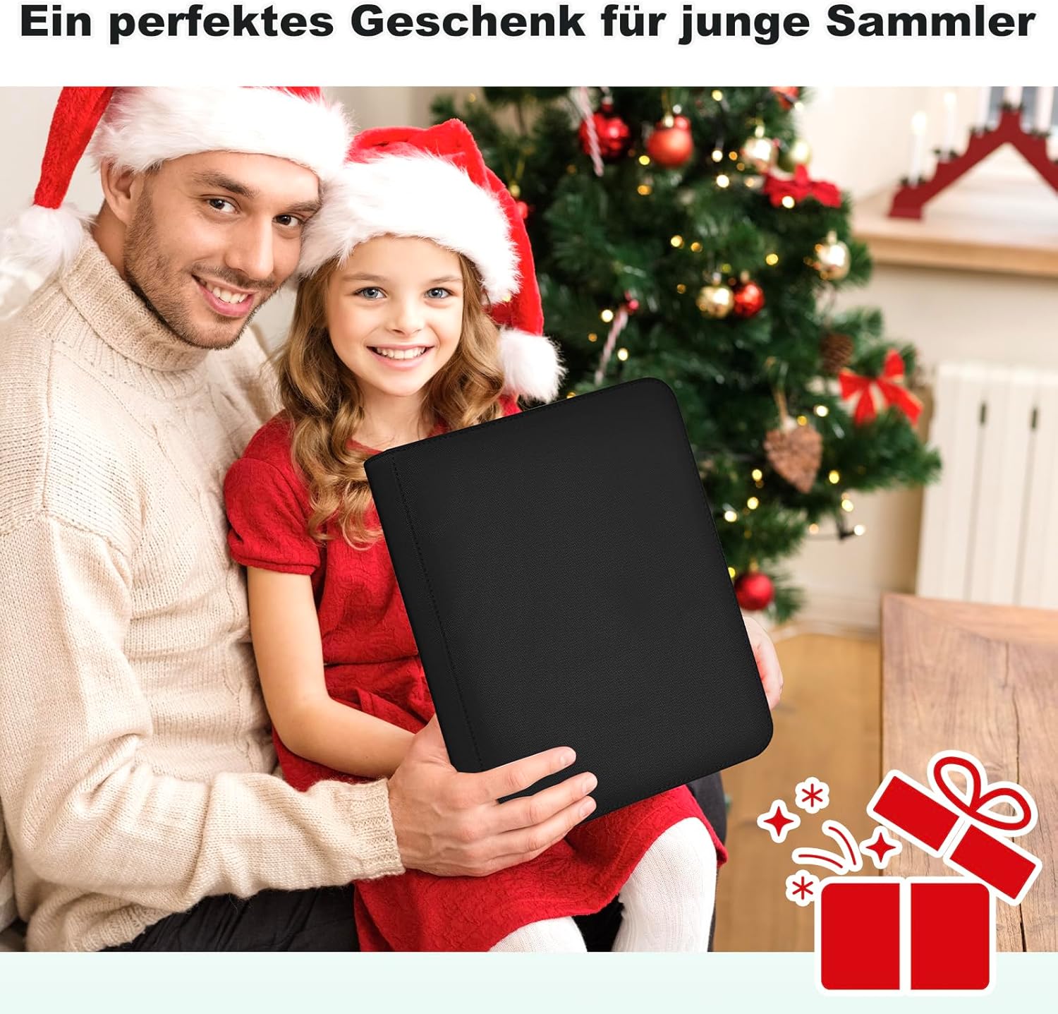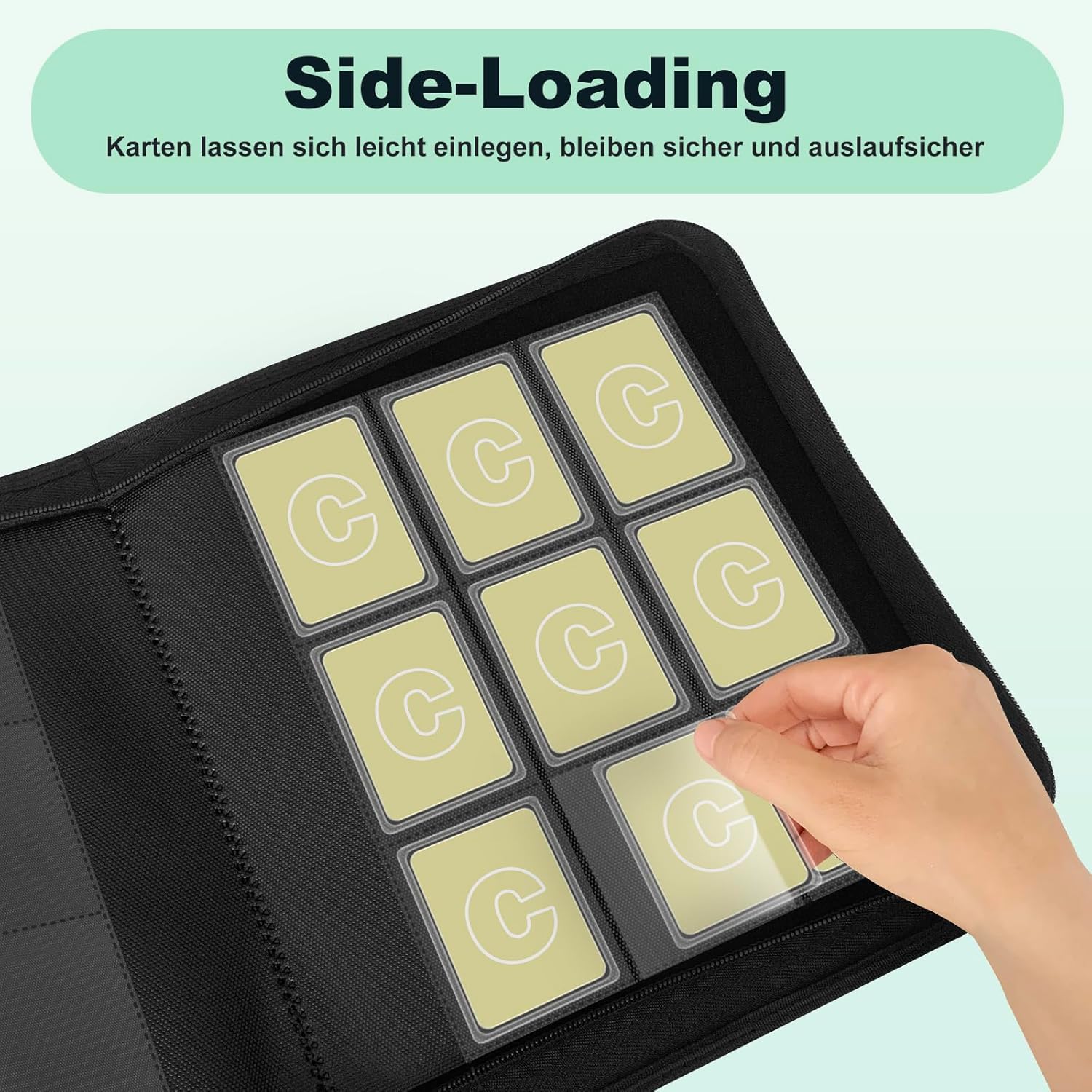 Album di carte collezionabili con caricamento dall'alto e 360 di grande capacità: questo album di carte collezionabili di grandi dimensioni da nove pagine ha 20 pagine e può contenere 360 carte dall'alto in formato 3 x 4 pollici. Offre molto spazio per le tue carte collezionabili o per la collezione di carte sportive in edizione limitata. Alta qualità: il guscio in PU impermeabile con cerniera impedisce la caduta del porta carte e protegge da acqua e polvere. Le pagine interne trasparenti senza PVC del raccoglitore con caricamento dall'alto prevengono lo sbiadimento e consentono di ordinare le carte per serie e tipo. Compatibile con una varietà di carte: il raccoglitore per carte collezionabili è adatto per carte rigide da 3,4 x 4 pollici per carte da gioco, carte collezionabili, carte TCG, carte sportive, carte da calcio, ecc. e soddisfa tutte le esigenze di raccolta. Inoltre, viene fornito con 10 squisiti toploader. Conservazione sicura: il raccoglitore di carte è progettato per l'inserimento laterale delle carte, in modo che possano essere facilmente rimosse e non cadano. Tra i singoli scomparti si trova uno strato tampone che impedisce alle carte di graffiarsi e deformarsi. REGALO IDEALE: questo album da collezione di carte combina design alla moda e funzionalità. Non è solo la scelta ideale per i collezionisti di cartoline, ma anche un ottimo regalo per ragazzi e ragazze che amano collezionare cartoline per compleanni o Natale.