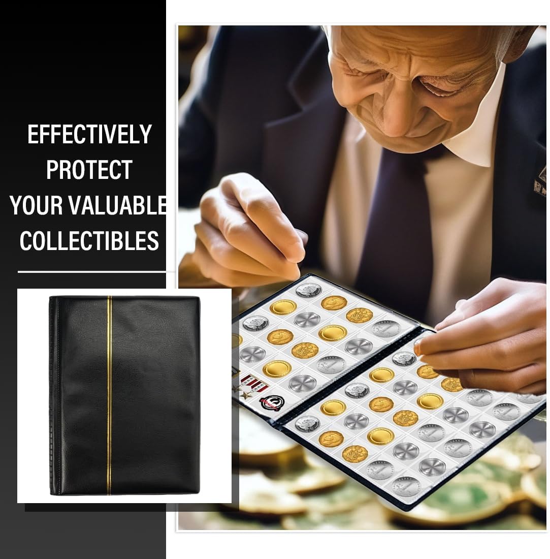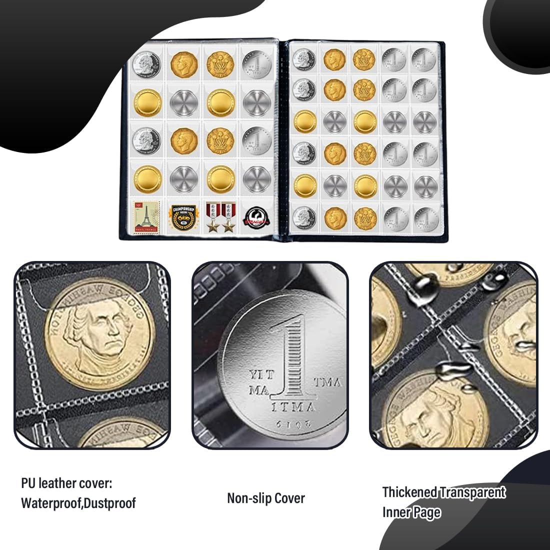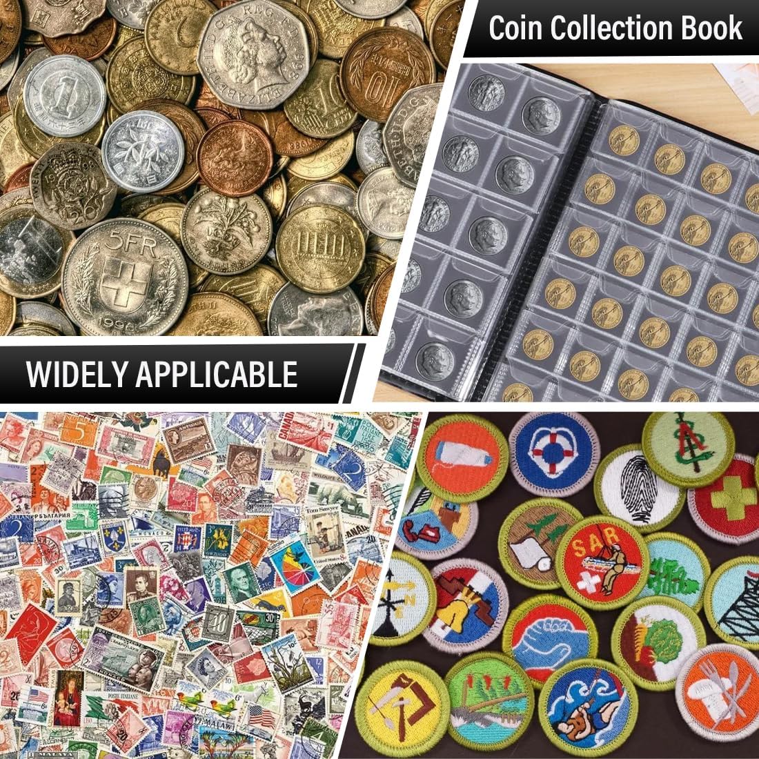 Grande capacità: questo raccoglitore per monete con caricamento dall'alto contiene 10 pagine e 250 scomparti in due diverse dimensioni, consentendo di conservare monete fino a un diametro di 3,5 cm. Ideale per conservare quasi tutte le monete in modo sicuro Materiale di qualità: realizzato con un materiale speciale morbido al tatto e con una bella consistenza, questo raccoglitore è abbastanza spesso da proteggere le tue monete rimanendo flessibile anche a basse temperature Protezione ottimale: ogni scomparto per monete è dotato di un tappo superiore per evitare che le monete cadano. Lo scomparto è impermeabile e resistente all'umidità, offrendo la massima protezione per le tue monete rare e preziose Pagina trasparente di alta qualità: il design trasparente semplifica la visualizzazione delle monete o la loro sostituzione. Il nastro trasparente ti consente di vedere chiaramente entrambi i lati delle monete, ideale per esporre e conservare la tua collezione. Versatile: questo raccoglitore può essere utilizzato per conservare monete, francobolli, buoni di valore, medaglie, penny, distintivi e altro ancora. Un grande regalo per un appassionato collezionista di monete o un amico che ama le monete