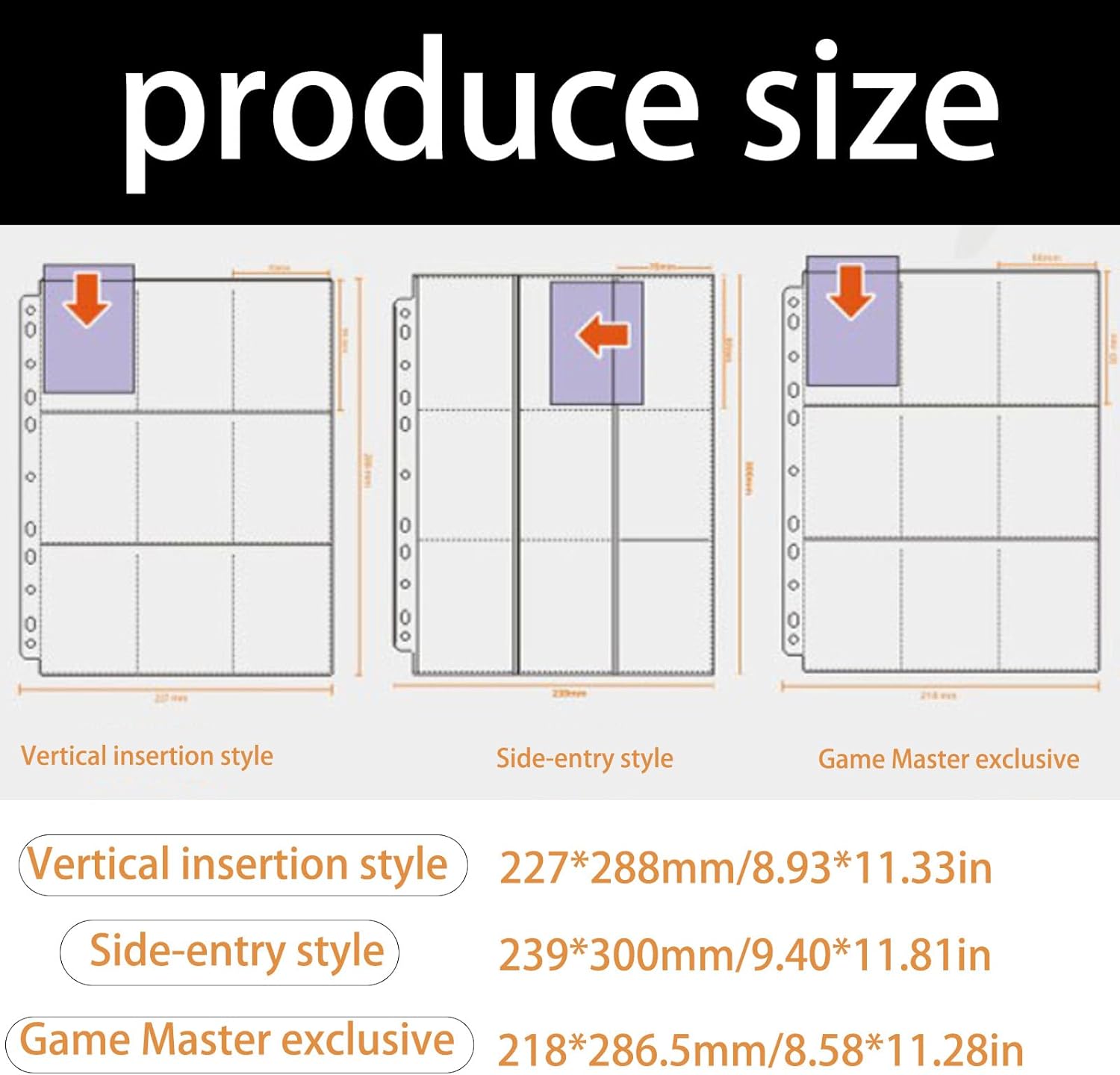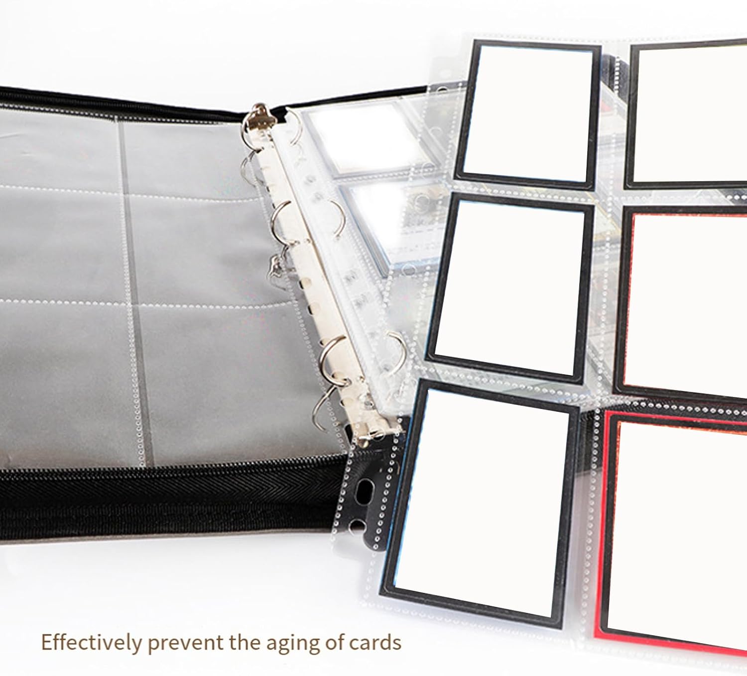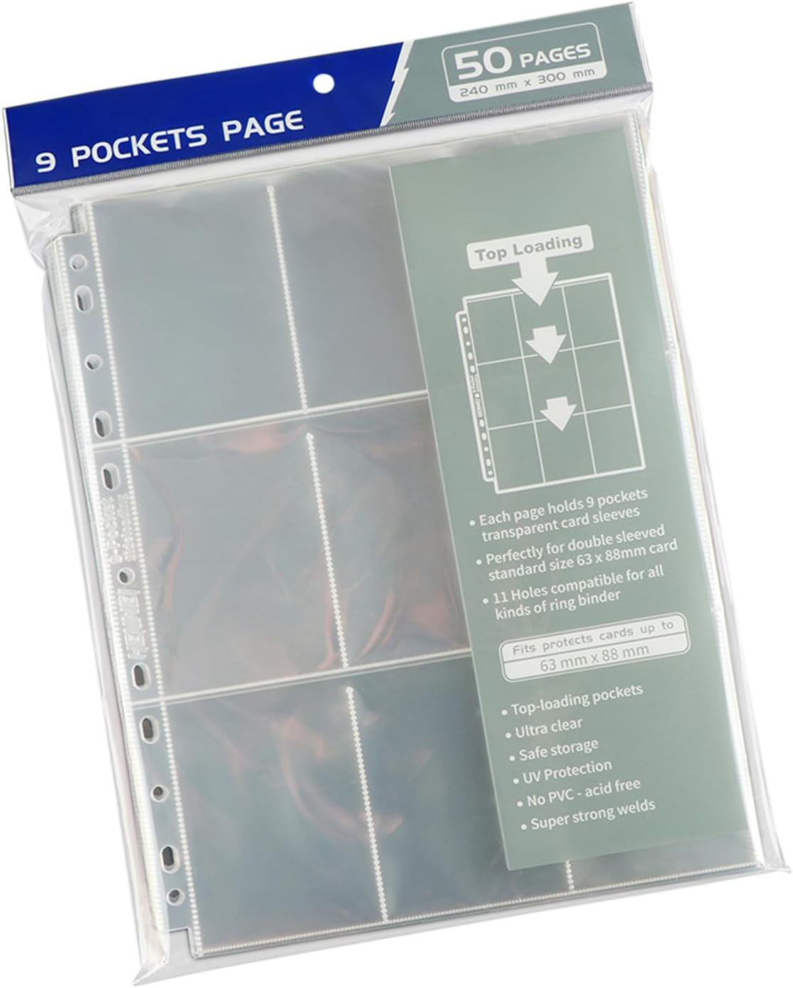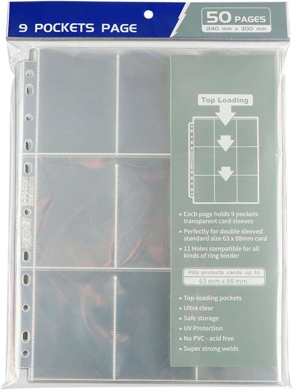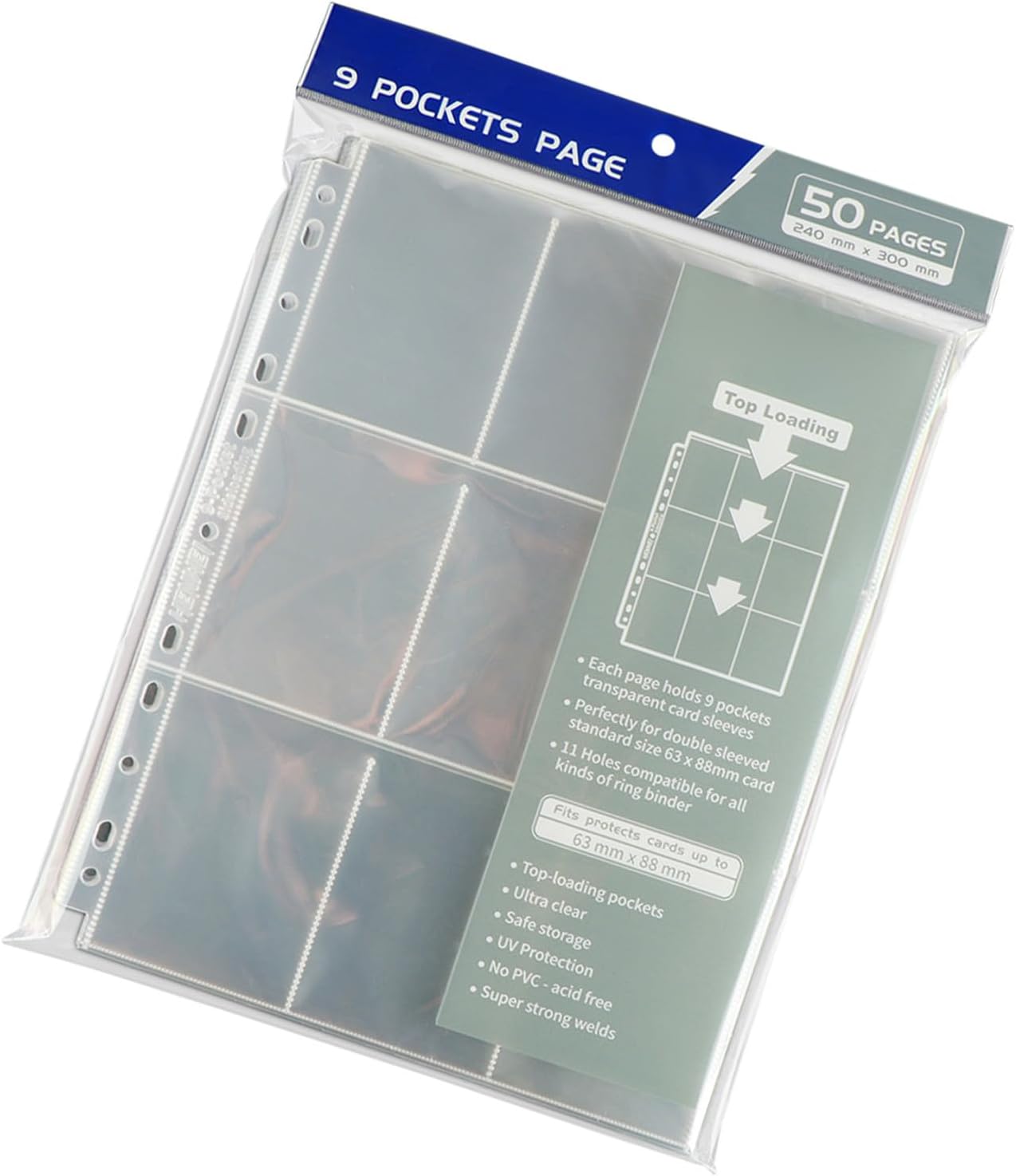 Le pagine in PP ad alta trasparenza garantiscono protezione contro l'usura, con struttura e portabilità per gli appassionati di carte frequenti Progettati con materiali PP di grado archivistico per ingiallimento nel tempo, questi fogli protettivi da collezione mantengono le condizioni della carta attraverso ripetute manipolazioni e visualizzazioni Il design a 9 tasche a doppio lato contiene 18 carte per foglio (50 pagine in totale), offrendo una capacità di 900 carte per riporre carte collezionabili organizzate mantenendo la visibilità attraverso materiali PP trasparenti Per giocatori competitivi, collezionisti con ampie collezioni di carte e genitori alla ricerca di una soluzione di archiviazione sicura per bambini carte collezionabili Mostra carte preziose durante tornei, mostre o meetup di gioco trasportando in modo sicuro la raccolta in pagine compatte per riporre le carte