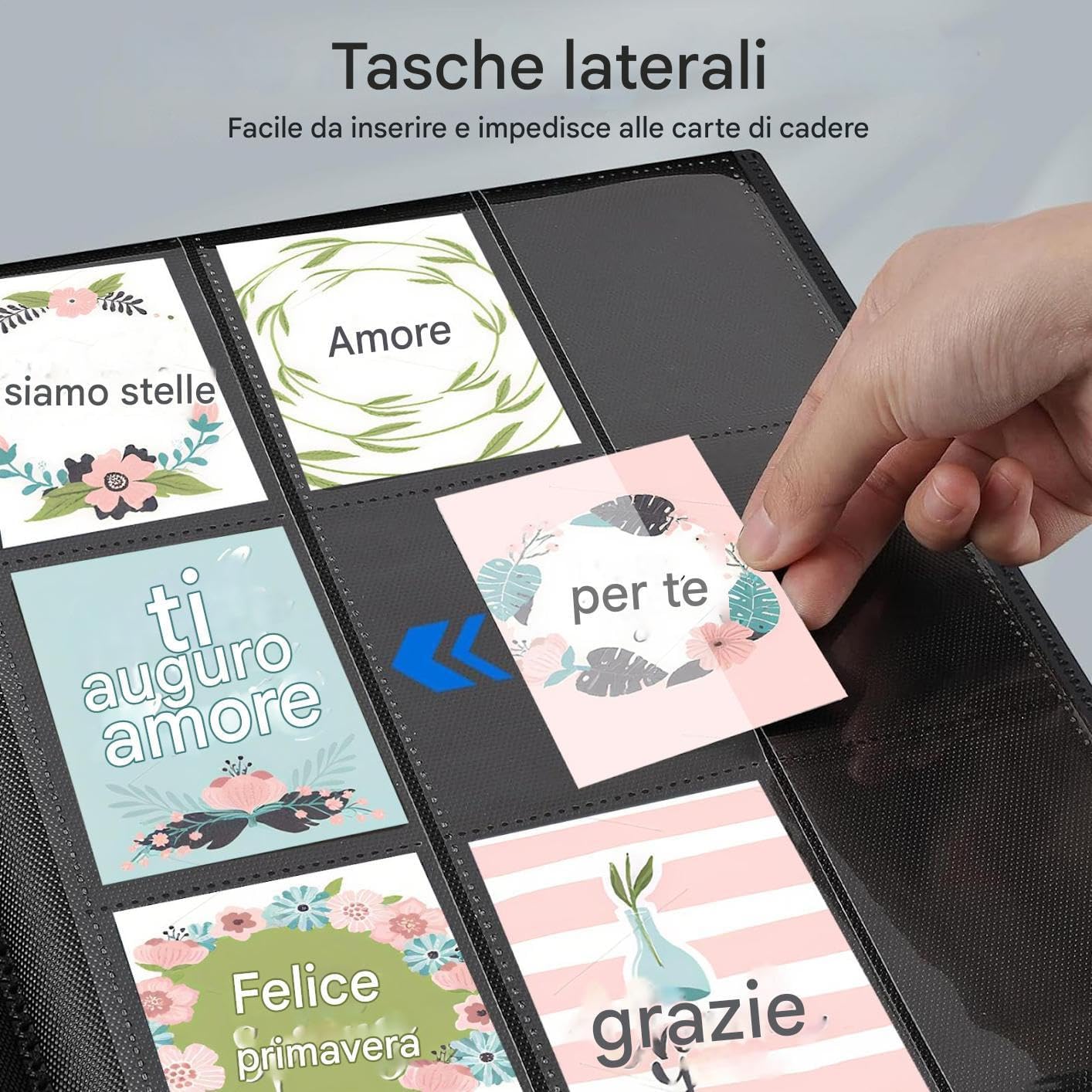 Strumento Collezionista: Progettato per la passione del collezionismo, offre un modo appagante per organizzare i pezzi preziosi e celebrare l'arte della curatela delle raccolte, valorizzando ogni singola carta. Scudo Anti-Umidità: Barriera protettiva robusta difende carte da piegature e ambientali, assicurando conservazione sicura e duratura nel Soluzione Completa: Ideale per carte da gioco e sportive, questo organizzatore versatile assicura archiviazione funzionale e affidabile. Dispone carte standard in modo ordinato e accessibile in un'unica soluzione efficiente. Protezione Affidabile: Materiali rinforzati e resistenti all'usura prevengono graffi e mantengono le carte sempre saldamente fissate Organizzazione Ottimale: Caricamento laterale per inserimento veloce e visibilità nitida, contiene centinaia di carte collezionabili su 20 fogli con 9 tasche per pagina per ordinamento e visualizzazione senza sforzo