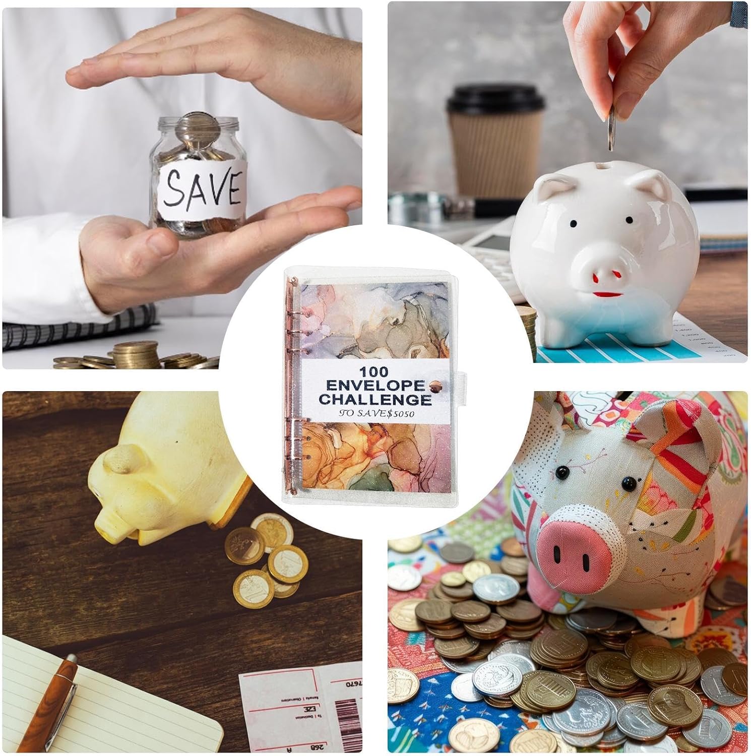 Risparmio senza sforzo: presentiamo il nostro raccoglitore a 100 buste e la lavagna a fogli mobili per un metodo divertente e risparmio di denaro. Con modi creativi per risparmiare denaro, accumulare risparmi gradualmente nel tempo per raggiungere i tuoi obiettivi finanziari, senza alcuno sforzo. Protezione durevole: il raccoglitore da 100 buste garantisce una lunga durata, grazie al suo materiale spesso e resistente all'usura, che garantisce la sicurezza dei tuoi documenti dandoti comunque una sensazione di stile. Budget modernizzato: il nostro raccoglitore da 100 buste utilizza un design scientifico che include uno speciale slot per carte di banconote e un comodo portapenne, che garantisce un monitoraggio finanziario organizzato e meticoloso. Incoraggiare abitudini finanziarie responsabili e promuovere buoni risparmi con questo strumento indispensabile per la gestione finanziaria. Varie funzioni: ottieni un'organizzazione efficiente nella tua vita quotidiana con il nostro raccoglitore da 100 buste, perfetto per ordinare e conservare accuratamente ricevute, biglietti da visita e altri piccoli oggetti. Una soluzione versatile che aggiunge struttura alle tue finanze personali. Regalo sorprendente Questo raccoglitore da 100 buste, un regalo premuroso con uno scopo, aiuta amici e familiari a sviluppare disciplina finanziaria, rendendolo un regalo pratico e divertente per ogni occasione.