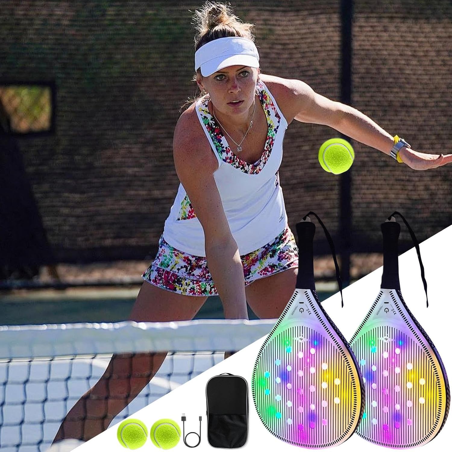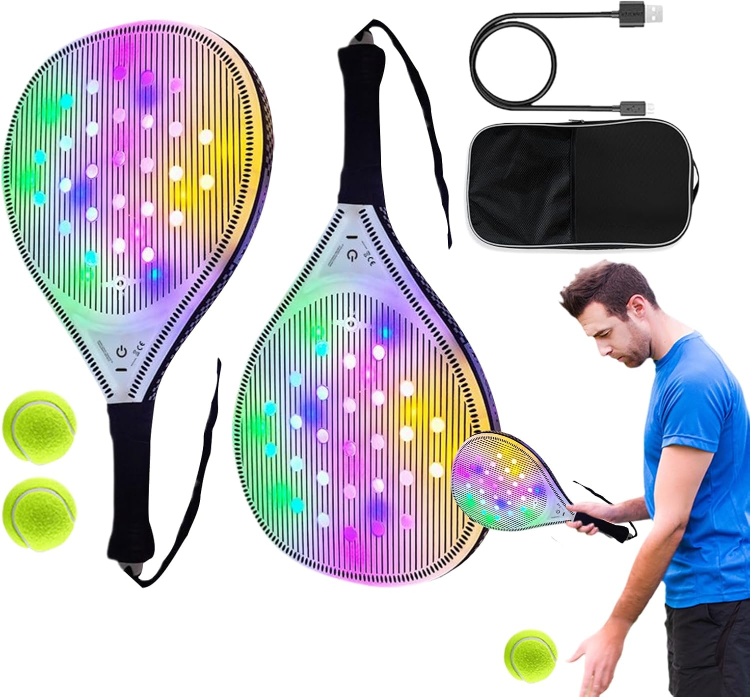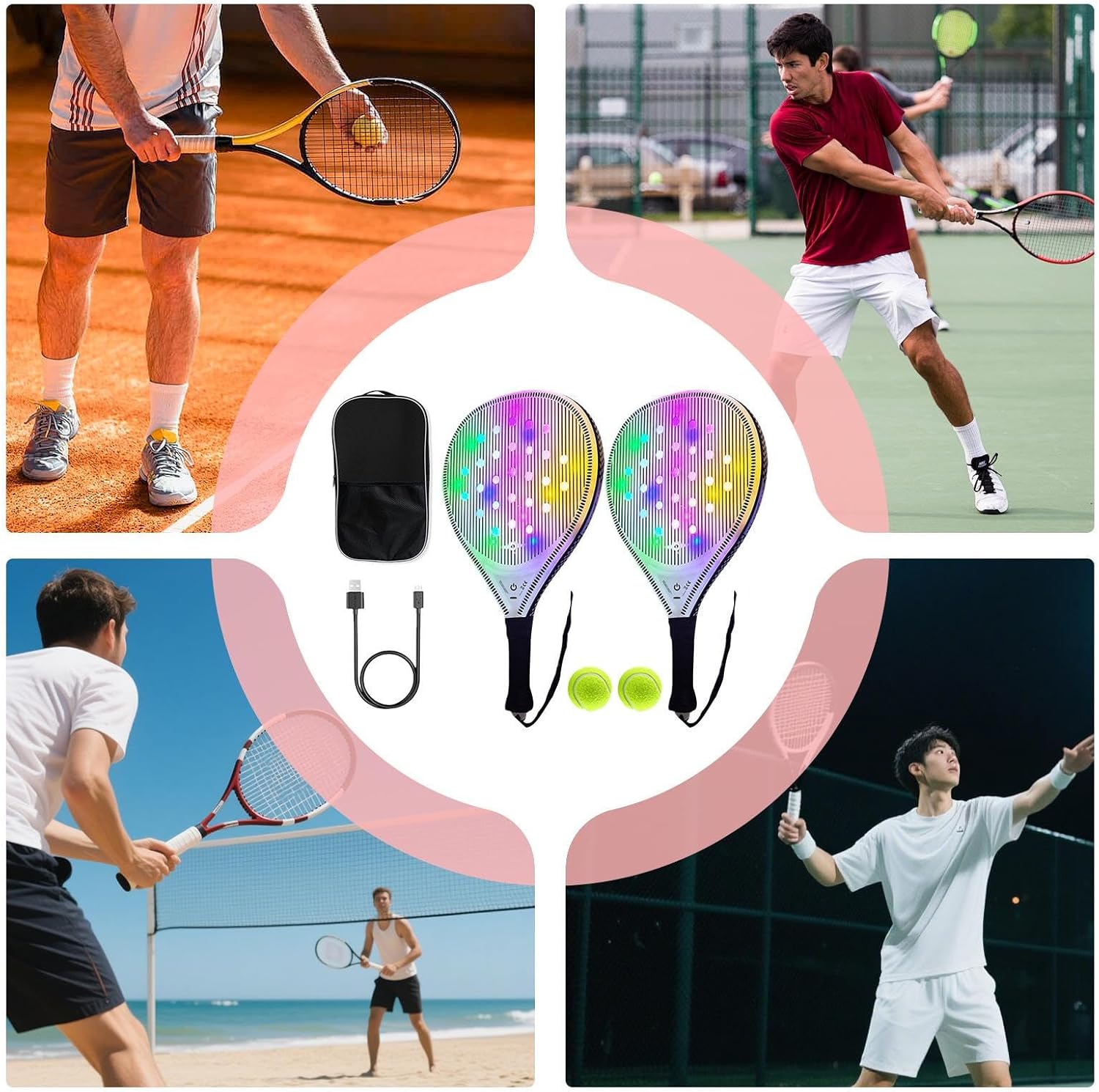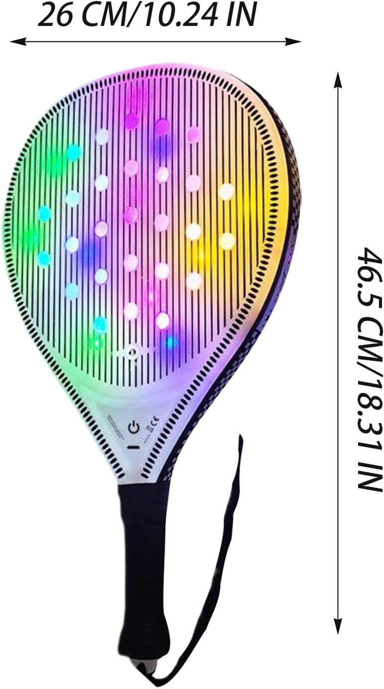 Luminosità con alimentazione USB: con un vibrante design di illuminazione, questa racchetta da tennis consapevole ecologica utilizza materiali riciclabili e offre prestazioni stabili della batteria, rendendolo ideale per una maggiore visibilità durante le partite serali Tecnologia di assorbimento degli shock: innovazione del core in schiuma riduce al minimo le vibrazioni, fornendo un controllo comodo e preciso, integrato da fori del flusso d'aria ottimizzati e superfici in fibra di carbonio per garantire prestazioni di racket stabili e sicure sul campo Allenamento senza fatica: realizzato utilizzando una leggera composita, questa racchetta una resistenza equilibrata e un elevato nucleo di schiuma elastico per il gioco prolungato senza affaticamento, insieme a una struttura a risparmio spaziale che è facile da trasportare e conservare Grip stabile e confortevole: progettato per ospitare utenti di tutte le età, la presa ergonomica della racchetta offre comfort e stabilità senza pari, garantendo una piacevole esperienza di presa mentre si sia a giocatori adulti che per bambini in modo efficace Utilizzo ampiamente: progettato per gli appassionati in cerca di attrezzature affidabili per la pratica personale e le attività del libero, questa racchetta si fa in più ambienti tra cui avventure all'aperto, sabbiosi o terreni che soddisfano le esigenze delle competizioni