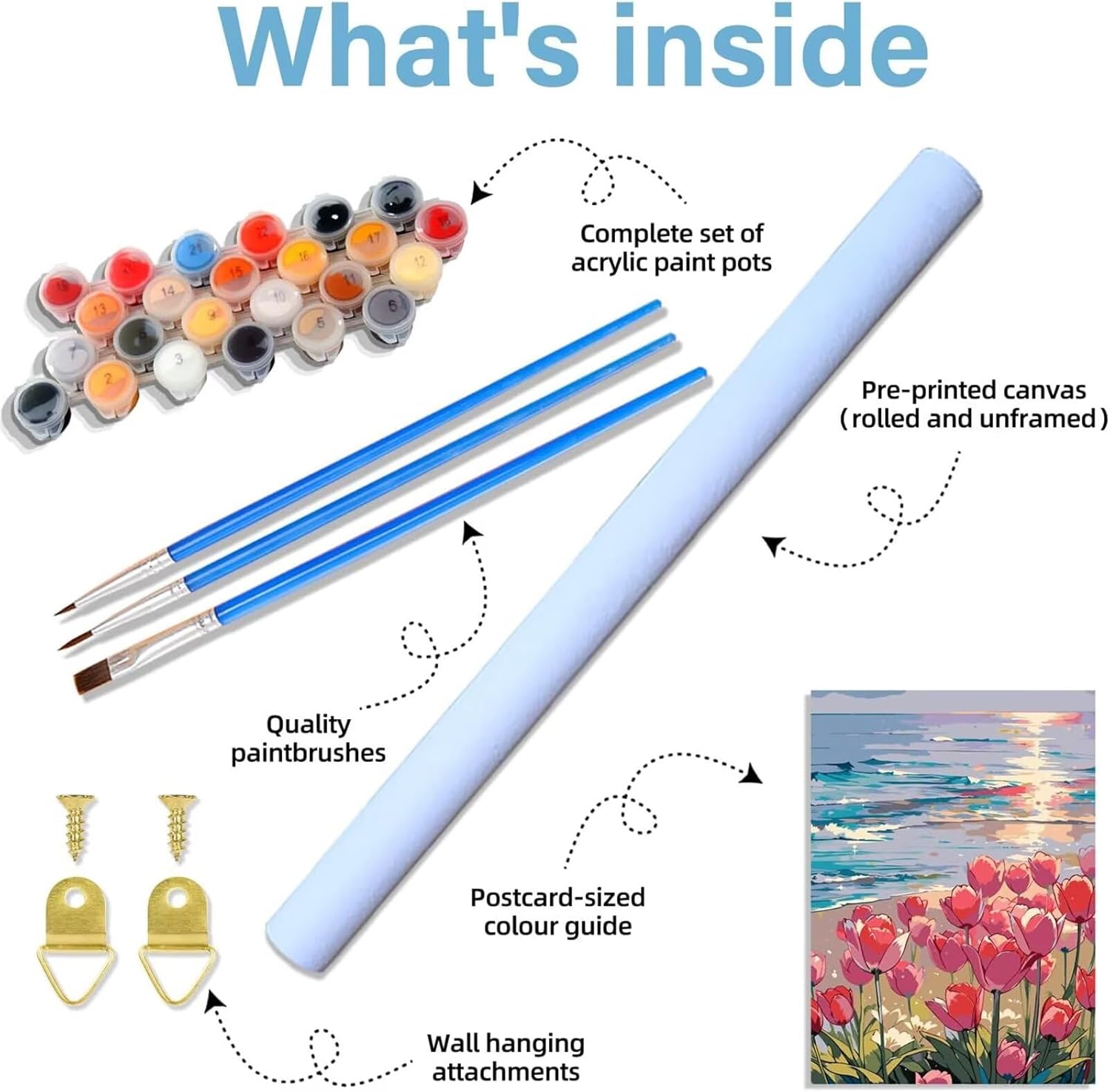 【Kit per dipingere con i numeri per adulti 】Il kit per dipingere con i numeri per adulti include 1 tela (senza cornice), 3 pennelli, 1 set di colori acrilici, 1 tela di riferimento numerata e 2 ganci di metallo. (Grande dimensione con più set di strumenti) 【Dipingere con i numeri per adulti】 Paint by numbers utilizza una tela colorata ad alta definizione, che rende più facile distinguere l'area dei numeri, la vernice è facile da aderire. I numeri della tela sono chiari e facili da leggere. La vernice è di colore brillante e non facile da sbiadire e asciugare. 【Facile da dipingere 】Il kit Paint by number è facile, basta colorare l'area corrispondente in base ai numeri sulla tela. Sono disponibili pennelli di tre diverse dimensioni, in modo da poter scegliere quello appropriato in base alle proprie esigenze. 【Divertimento e rilassamento 】Paint by numbers per adulti può aiutarvi a trascorrere il vostro tempo libero. È facile e adatto a tutti. Non solo potete alleviare lo stress della vita dipingendo e tornare alla pace interiore, ma anche migliorare la vostra abilità manuale. 【Decorazione e regalo significativo 】La pittura per numero è perfetta per l'arredamento della casa. La pittura per numero è anche una buona scelta per Halloween, Natale, compleanno e premi di gioco per le feste. È applicabile a una vasta gamma di scene.