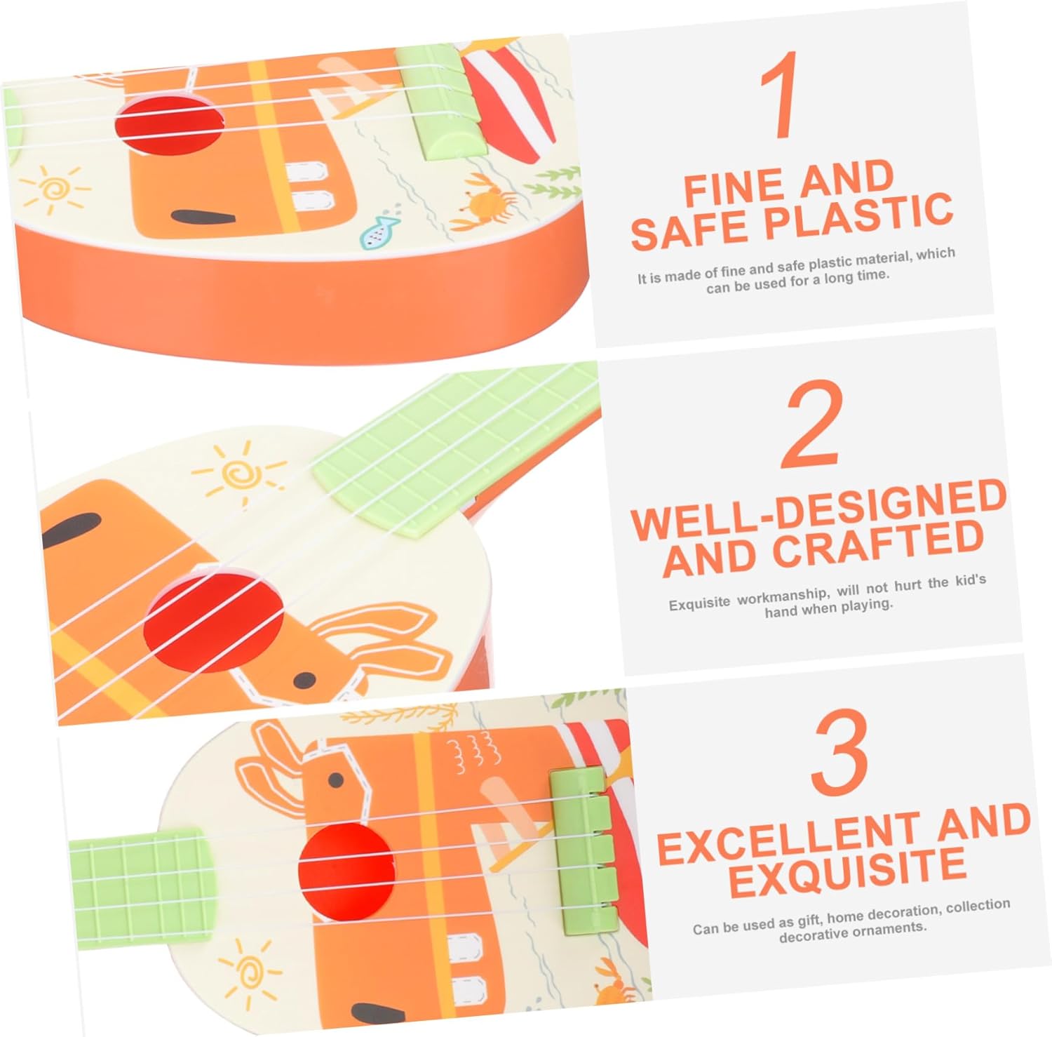 Strumenti musicali per: uno strumento musicale simulato può aumentare l'interesse ed è adatto a promuovere l'interesse Strumenti per bambini: il prodotto è realizzato e il materiale è facile da usare, giocattolo per bambini Ukulele per bambini: il design in stile cartone animato e colori vivaci può evidenziare l'atmosfera di gioco e portare buon umore, ukulele, chitarra per bambini: questo giocattolo creativo per ukulele è per bambini pratici interessati alla musica. -Giocattolo ukulele Mini ukulele: questo giocattolo ukulele è realistico grazie alla sua pregevole fattura ed è molto sicuro da suonare con la mini chitarra