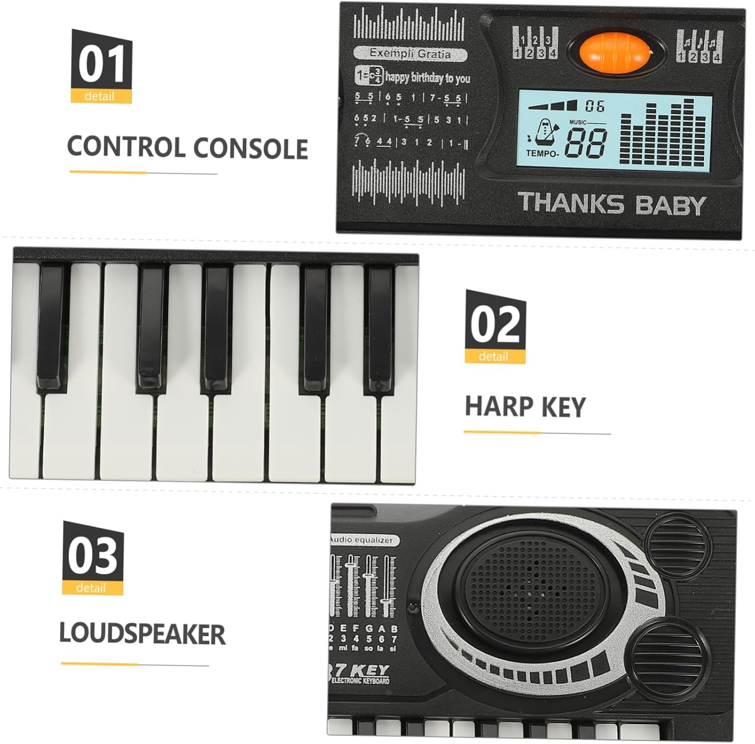 Strumenti musicali per bambini: superficie liscia, tocco confortevole, le mani sensibili dei tuoi bambini non possono essere facilmente ferite, strumento a tastiera Giocattoli musicali multifunzionali: realizzati in materiale di alta qualità, garantiscono durata e praticità, giocattoli per pianoforte Giocattoli musicali per bambini: è ottimo per i bambini, puoi regalarlo ai tuoi bambini a Natale, compleanno, ecc., strumenti per bambini Giocattoli elettronici per bambini: funzionanti con batterie AA, non batterie alcaline (batteria non inclusa), Giocattoli musicali per l'apprendimento della tastiera del pianoforte per bambini: perfetti come regalo di compleanno/Natale per i tuoi bambini, famiglia, parenti, ecc., giocattoli musicali