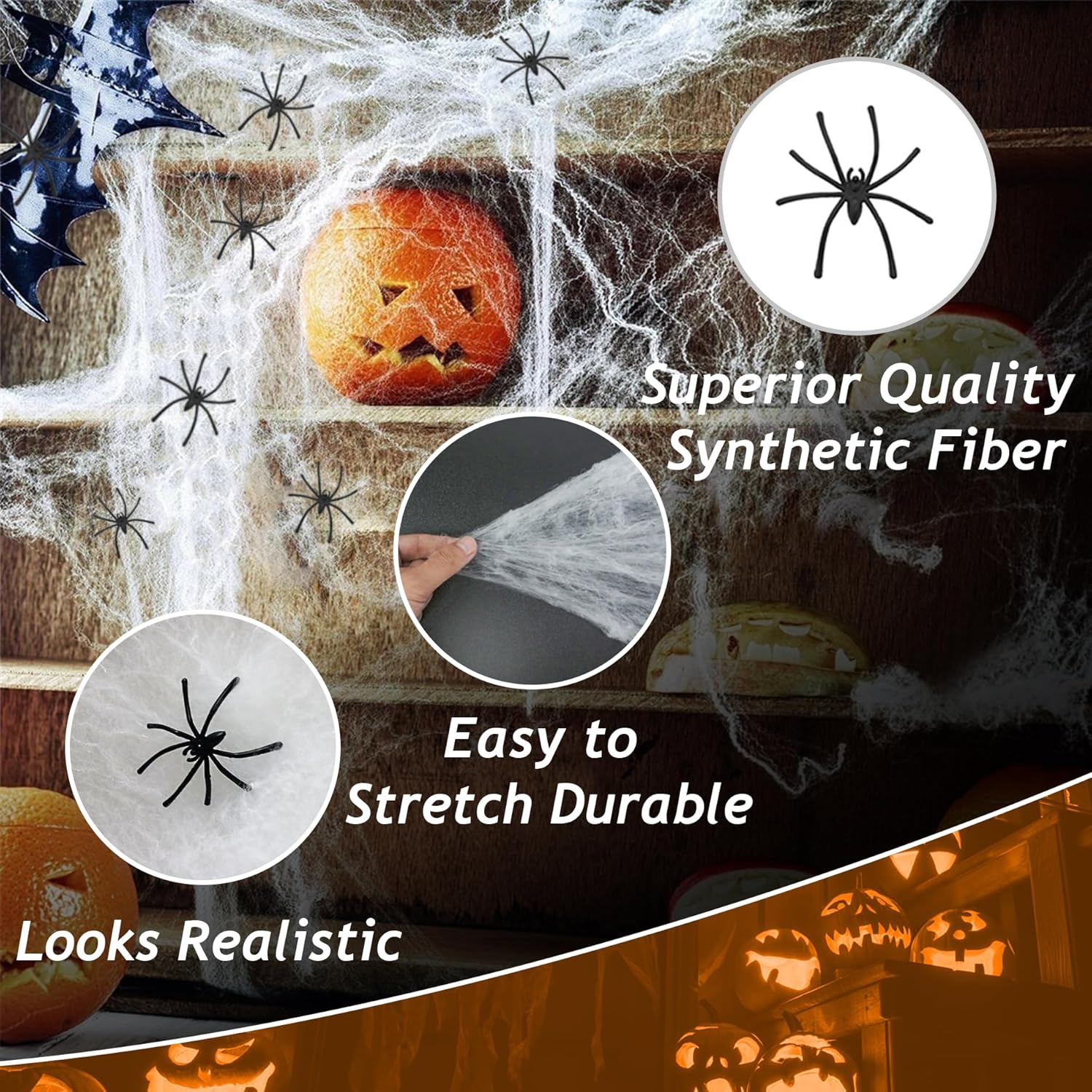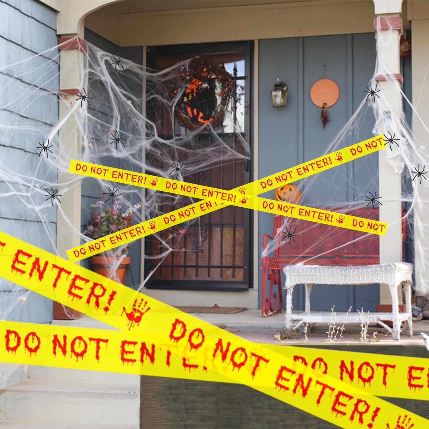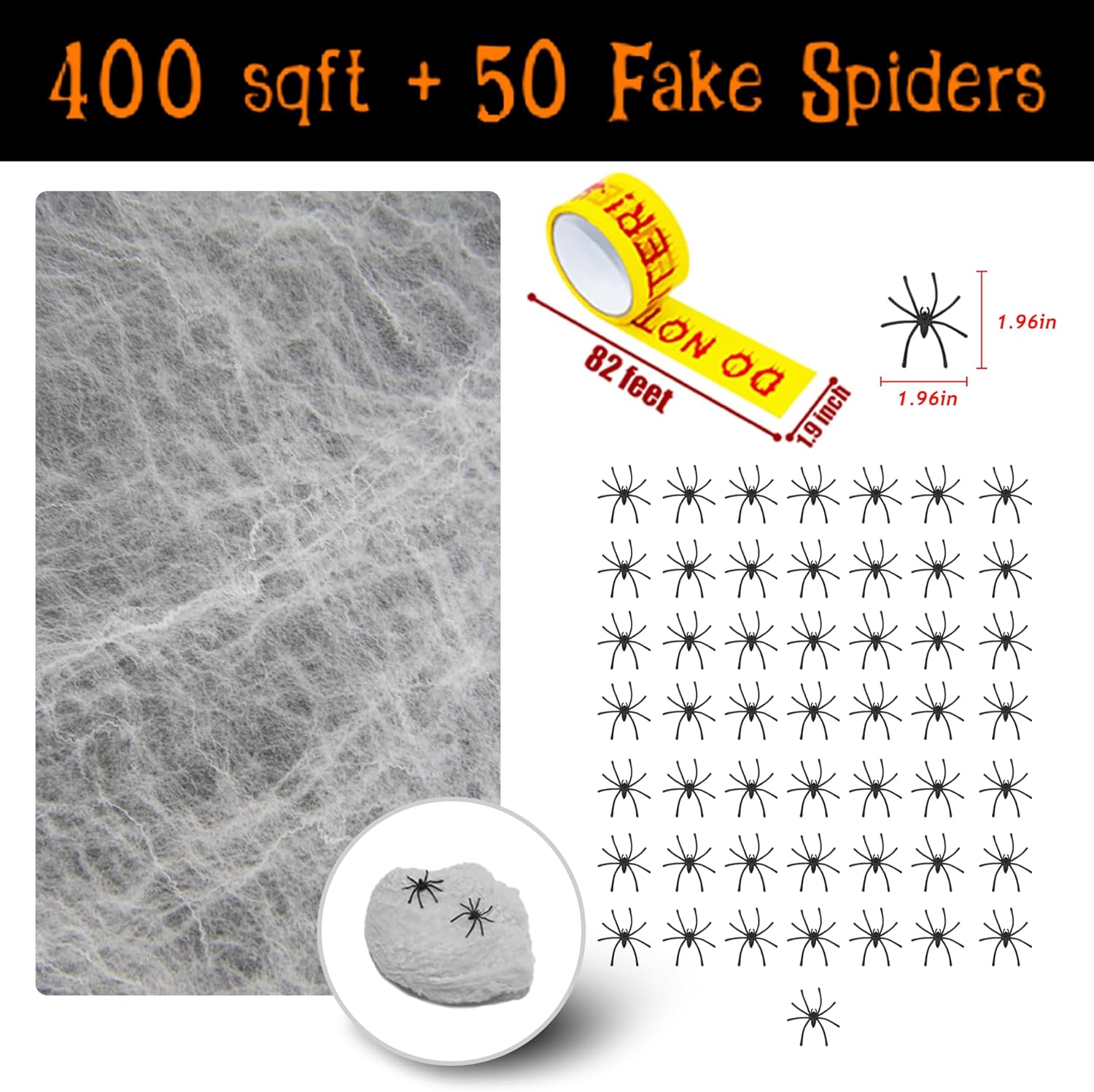 【Decorazioni di Halloween】 Realizzata con 100 grammi (3,53 once) di cotone artificiale, la rete super elasticizzata è sufficiente per coprire 400 piedi quadrati della tua casa all'interno e all'esterno, tessendo su finestre, pareti, mobili, ecc. Facile da allungare e attaccare su oggetti ovunque tu voglia. 1 Rotolo di grande nastro giallo di avviso di Halloween con un avviso rosso di NON ENTRARE stampato in colori vivaci, ideale per rendere il tuo arredamento di Halloween autenticamente inquietante. 【Vieni con 50 pezzi di ragni finti】 Ogni ragnatela di Halloween include 50 ragni finti per migliorare l'atmosfera di Halloween. Adatto per la festa di Halloween, aggiungi un'atmosfera inquietante alla tua festa di Halloween. 【Facile da usare】 Le ragnatele possono essere posizionate su tavoli, sedie, finestre, porte o pareti, soffitto o ovunque tu possa pensare, all'interno o all'esterno, per far sembrare la tua casa una capanna abbandonata o il tuo soggiorno come una cantina inquietante. Facile da pulire e non lascia macchie. Abbinato a mini ragni finti, organizzerai una festa indimenticabile. 【Multi Applicazione】 Il nostro nastro per scena del crimine di Halloween è perfetto per decorazioni di Halloween, decorazioni per Halloween all'aperto, decorazioni per Halloween all'esterno, decorazioni per il cortile di Halloween, decorazioni per l'esterno di Halloween, decorazioni per Halloween per interni, decorazioni per interni di Halloween, decorazioni per la scena del crimine, decorazioni per feste in camera di fuga, decorazioni per misteri di omicidio, decorazioni per feste di spionaggio, decorazioni per feste con nastri di avvertenza, decorazioni per case stregate per interni, decorazioni da appendere per Halloween, oggetti di scena per vittime morte, ecc. 【Pulizia semplice e versatilità】 Ragnatele in cotone resistente e poliestere materiali, la nostra decorazione a ragnatela è facile da pulire e rimuovere senza danneggiare i mobili o l'arredamento, abbinali ad altre decorazioni di Halloween come scheletri, tessuti inquietanti, decorazioni di zucca e altro ancora per un look completo e coeso.