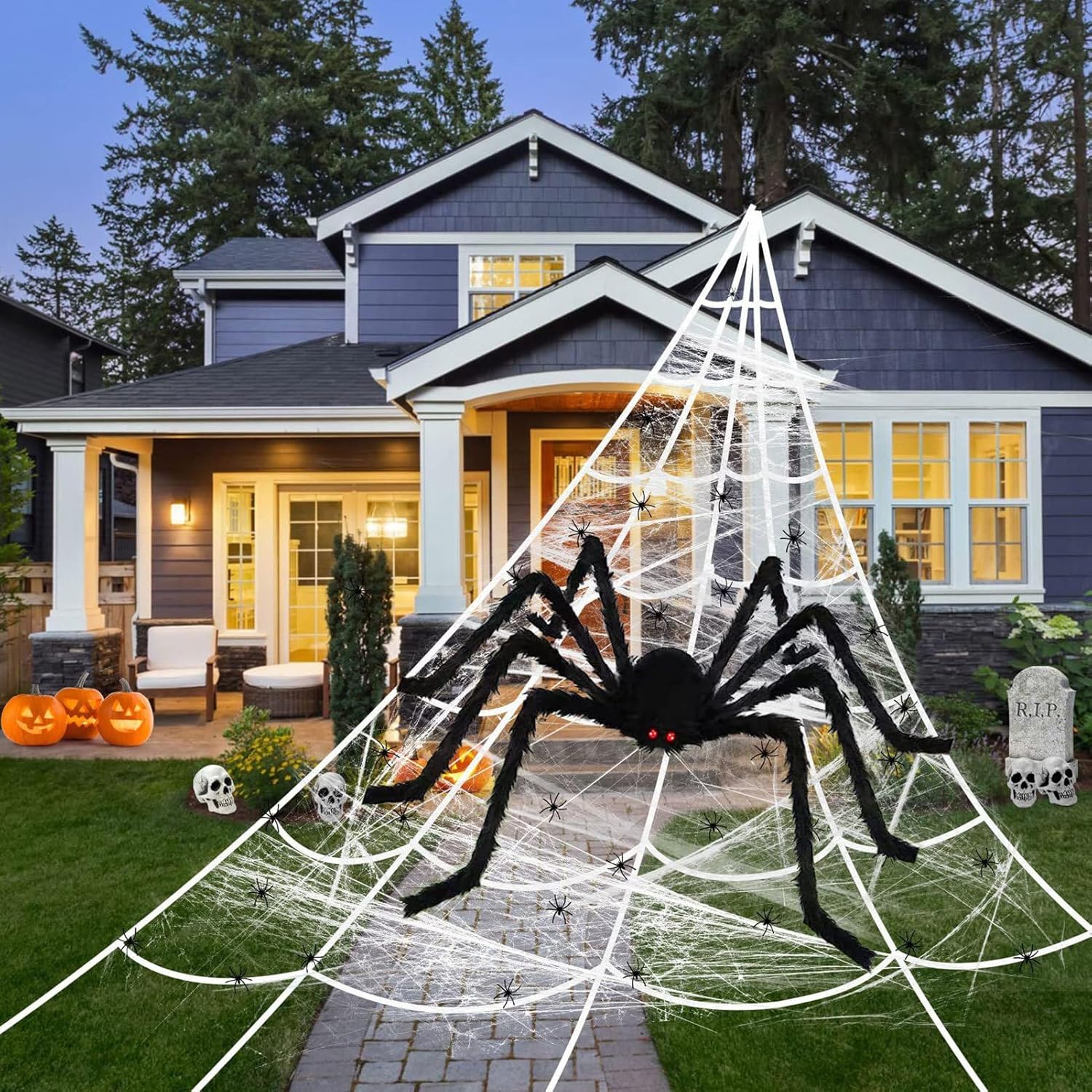 Realismo terrificante: i movimenti realistici attraverso gli arti dinamici e la silhouette inquietante conferiscono alle scene spaventose una presenza spaventosamente reale per un'intensa esperienza horror. Lavorazione durevole: il materiale resistente all'usura e l'imbottitura in fibra compatta garantiscono un riutilizzo a lungo termine, un eccellente mantenimento della forma e una stabilità costante per prestazioni affidabili. Occhi rossi luminosi: la superficie smerigliata contrasta con gli occhi luminosi rosso intenso per un'emissione di luce inquietante durante la notte. La massima visibilità notturna crea intensi effetti di shock visivo e un'atmosfera inquietante in qualsiasi ambiente. Effetto profondità spaziale: il ragno gigante crea un'affascinante profondità spaziale attraverso morbidi contrasti di texture, combinando senza sforzo stimolazione tattile e fascino visivo - ideale per presentazioni accattivanti ed esplorazione tattile Uso universale: si adatta perfettamente a diversi ambienti interni ed esterni consente decorazioni interattive di Halloween con elevato adattamento ambientale per un'esperienza accattivante