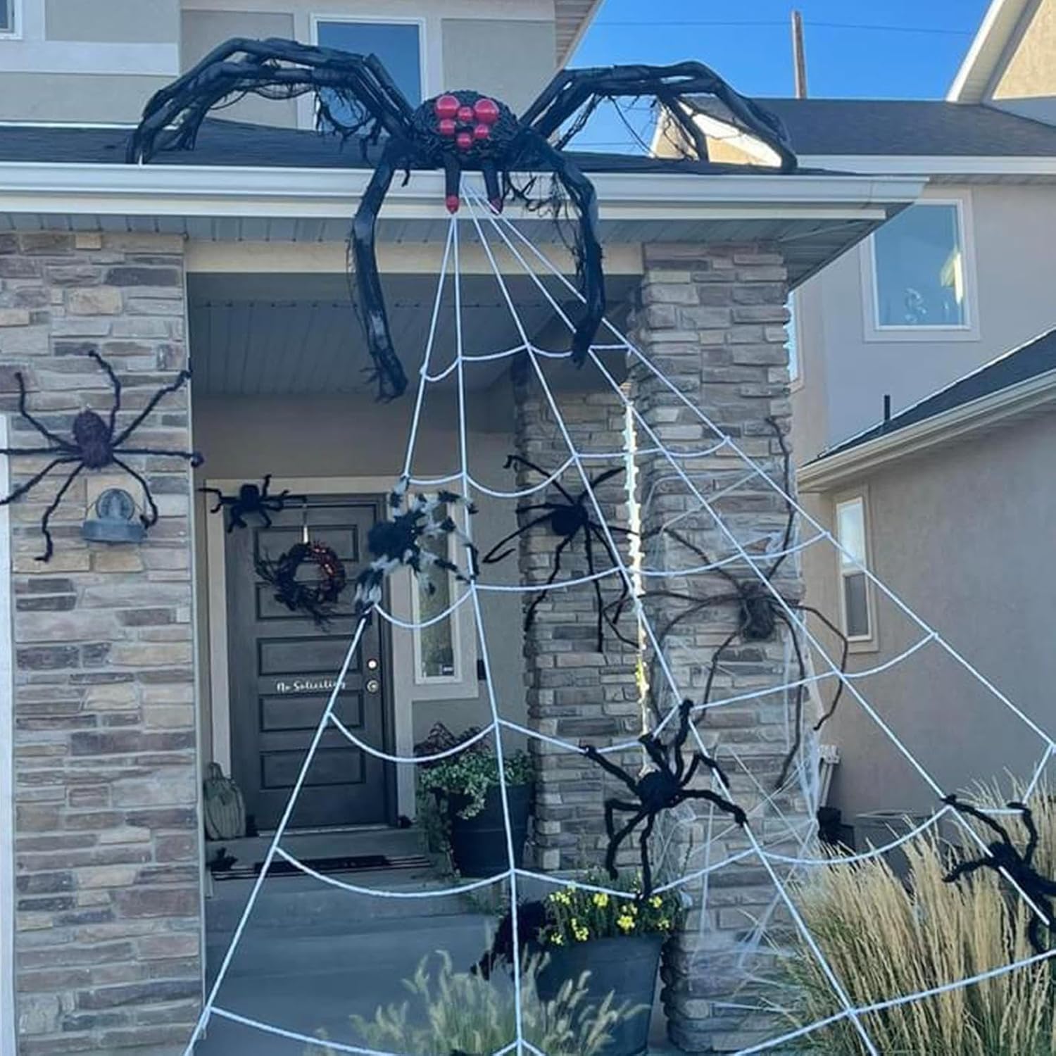 Illuminazione variabile: crea un'atmosfera inquietante con una struttura a rami regolabile ed elementi di illuminazione per aumentare l'atmosfera spettrale: la ragnatela estensibile garantisce la regolazione per le azioni mattutine o al chiaro di luna. Ragno gigante realistico: crea una decorazione horror coinvolgente con un ragno gigante ingannevolmente reale e profondità spaziale. La ragnatela elastica extra lunga consente un posizionamento flessibile in una varietà di scenari per un'atmosfera accattivante. Posizionamento senza sforzo: progettato per una lunga durata riutilizzabile. Il design resistente alle intemperie con struttura a caduta naturale e struttura robusta consente un'installazione senza attrezzi per le azioni di Halloween all'interno e all'esterno. MULTIUSO: Perfetto come punto focale per la narrazione o come parete del cortile, ideale per la pianificazione di eventi di Halloween, mostre a tema e riunioni di famiglia. Arricchisce ogni celebrazione con versatili decorazioni a ragnatela. Ottima scelta: motivi di Halloween senza tempo con design affascinanti semplificano la progettazione - incluso un supporto affidabile per domande per impressioni durature durante le festività natalizie