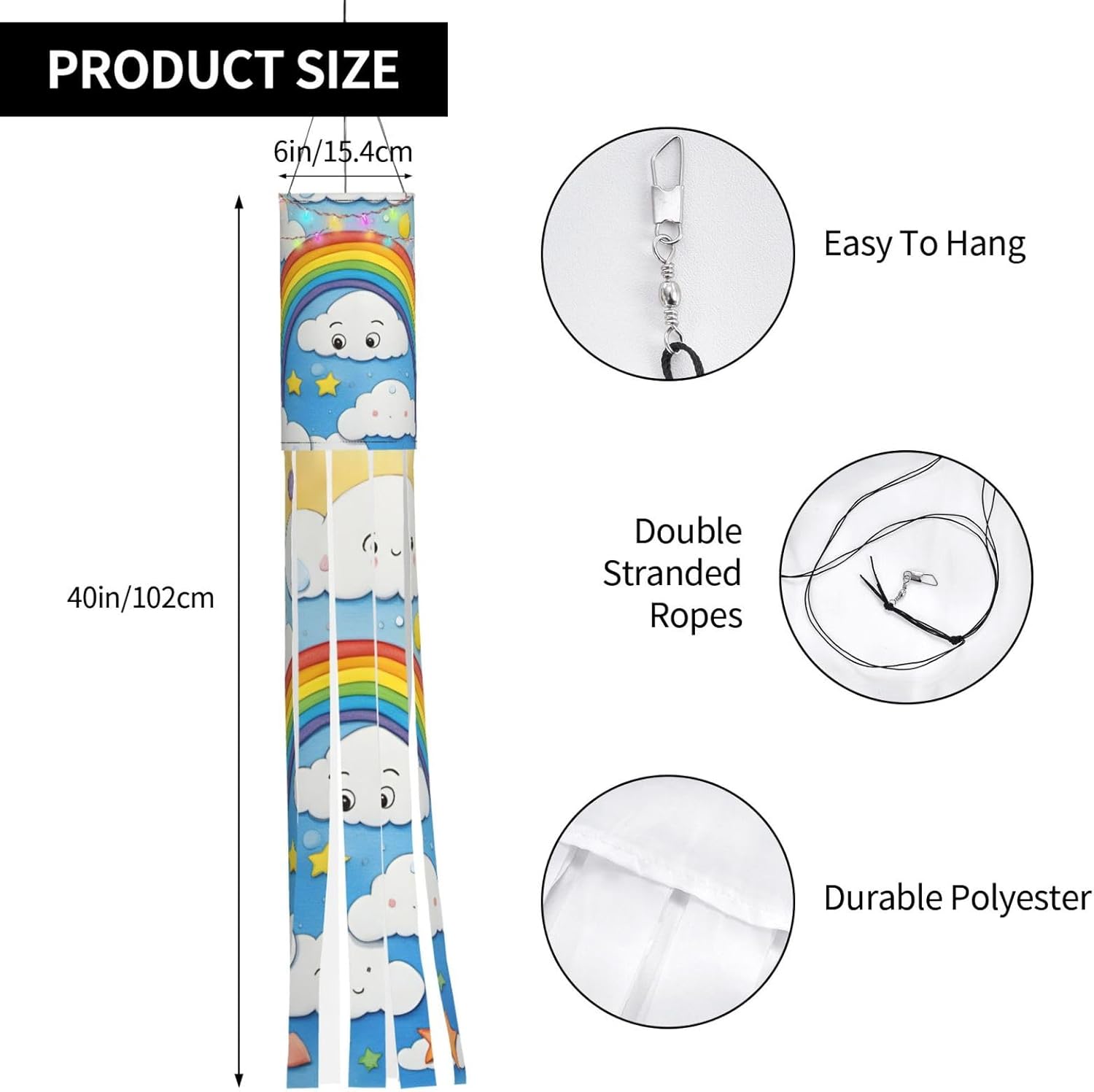 Materiale di alta qualità: le nostre calze a vento sono realizzate in poliestere leggero ed elegante, consentendo un rapido processo di asciugatura, facile volo al vento e durata duratura. Design accattivante: la manica a vento presenta 9 code che ballano e ondeggiano con il vento, creando un bellissimo spettacolo. Se scegli la versione con illuminazione, aggiunge un tocco romantico e caldo alle tue notti con le sue stelle scintillanti. Multiuso: questa calza a vento festiva è perfetta per Halloween, Natale e altre decorazioni natalizie. È anche una scelta eccellente per abbellire giardini, strade, parchi giochi, inaugurazioni di eventi e molto altro ancora! Costruzione attenta: la nostra manica a vento misura 102 cm di altezza e 15,4 cm di larghezza. Include un'asta di supporto integrata per una maggiore stabilità, una corda di nylon da 40 cm con un connettore di tipo A e una corda a tre lati. La versione con luci viene fornita con una bella gamma di luci a LED per un maggiore fascino. Istruzioni per la cura: nonostante l'uso all'aperto, la nostra manica a vento è semplice da pulire. Si consiglia di lavare a mano e asciugare all'aria naturale. Non si consiglia di lavare in lavatrice e candeggiare.