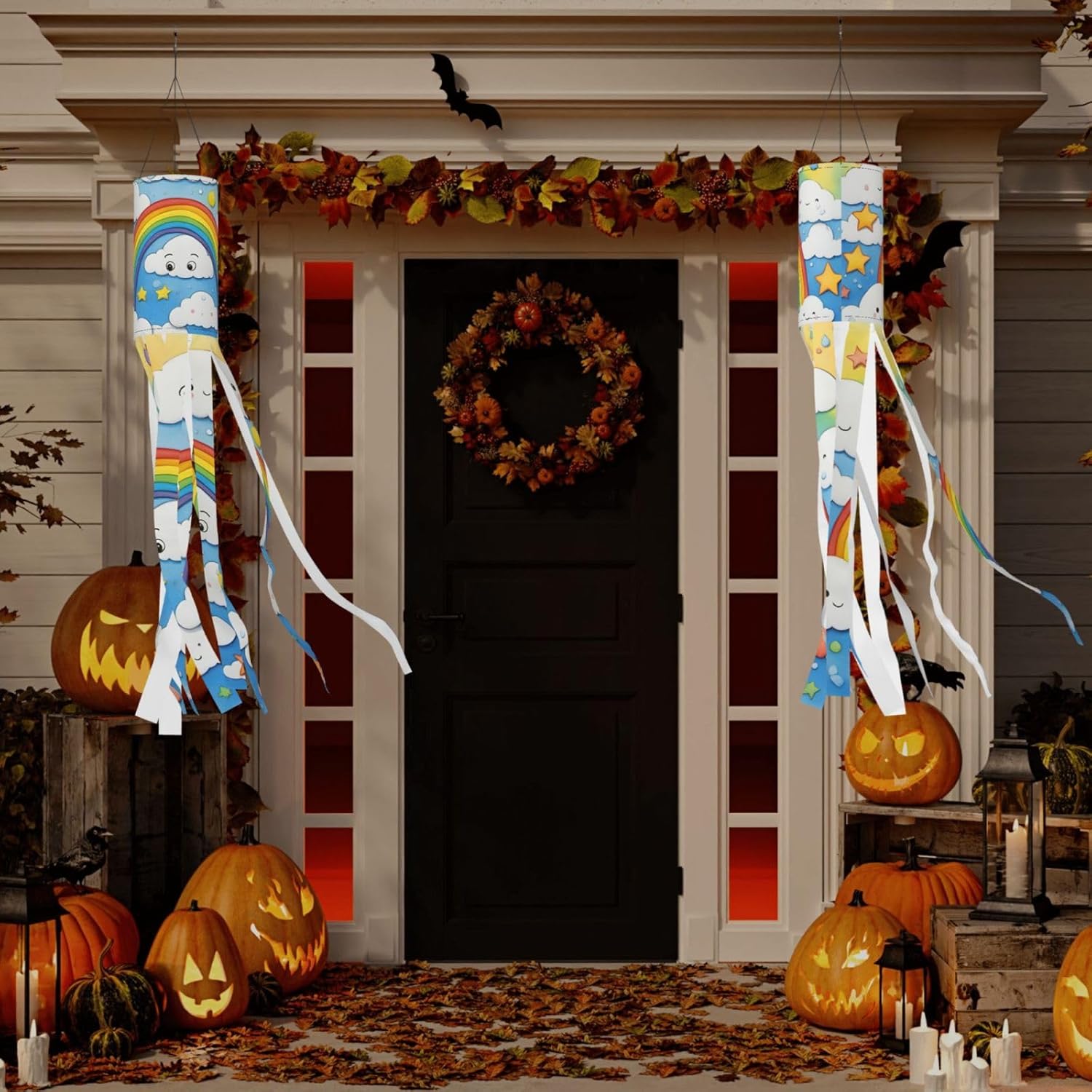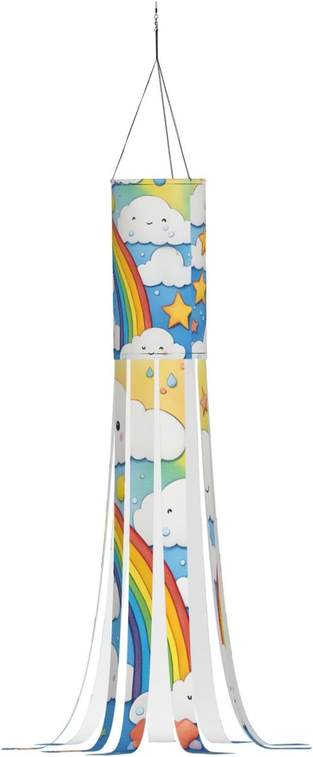 Rainbow Clouds Goccia di pioggia Deliziosa illuminazione esterna per vacanze: calze a vento da strega di Halloween per esposizione stagionale mozzafiato