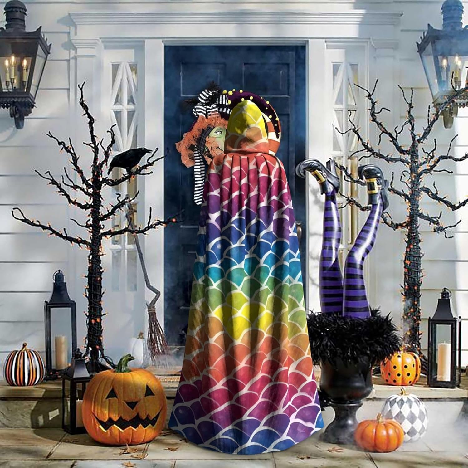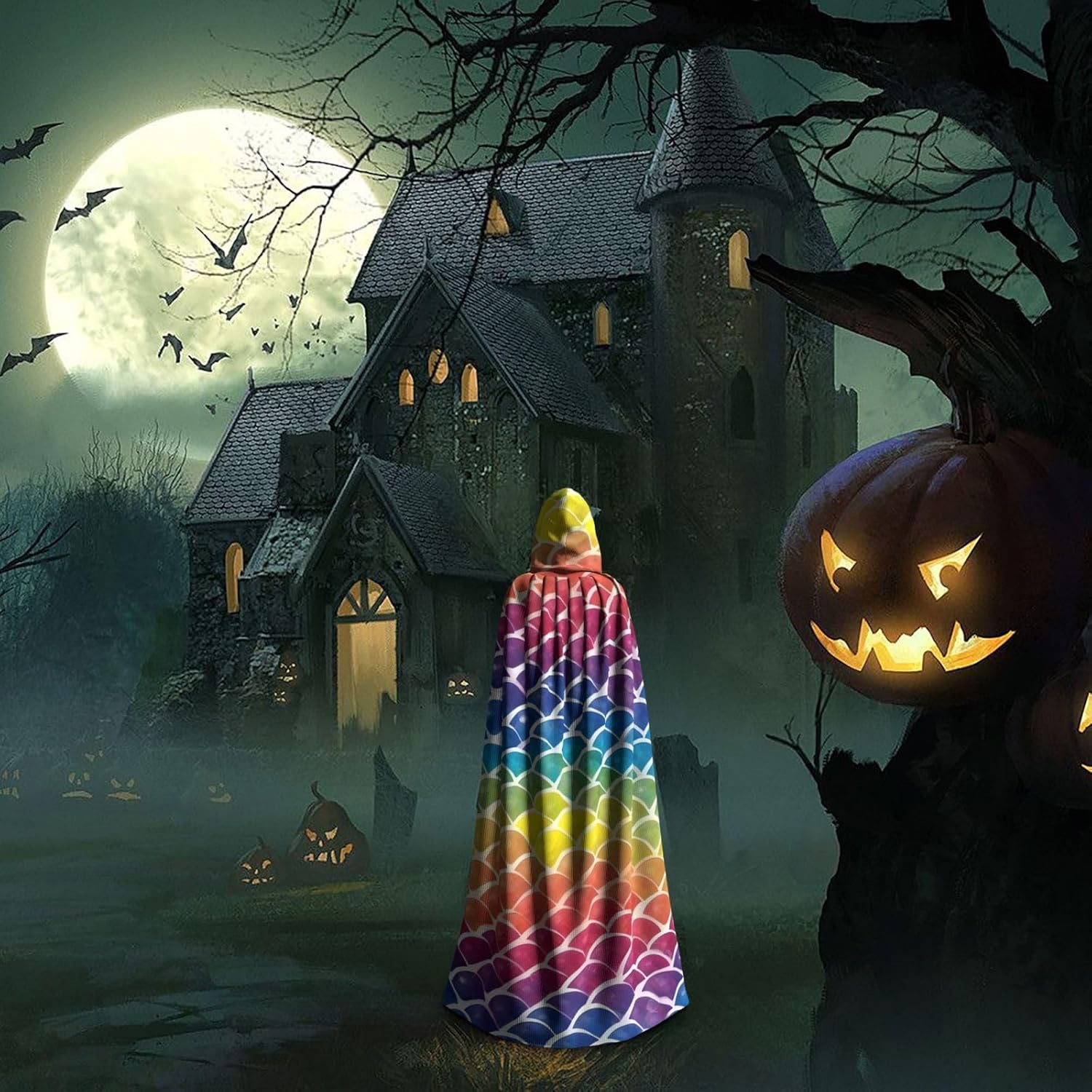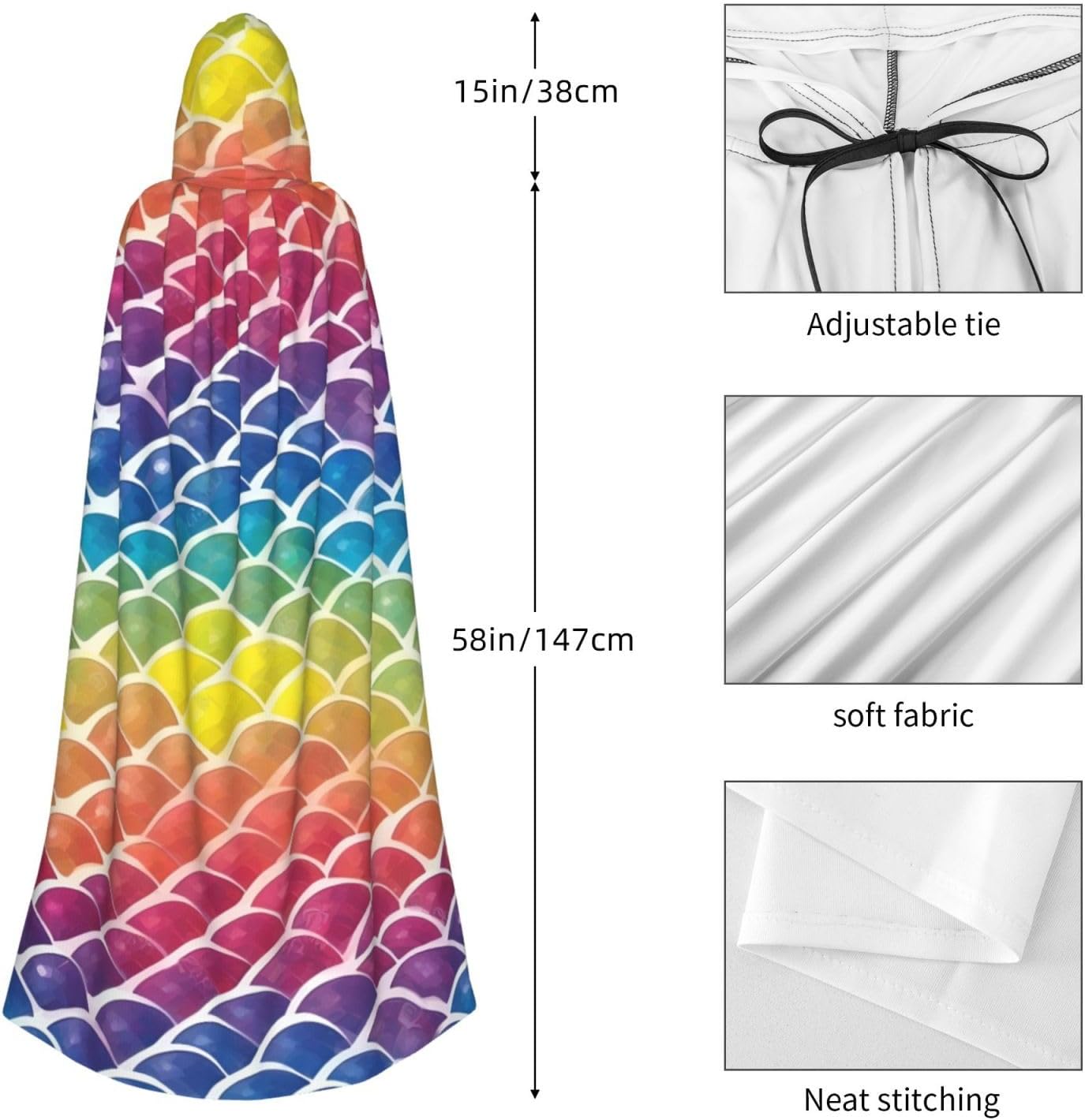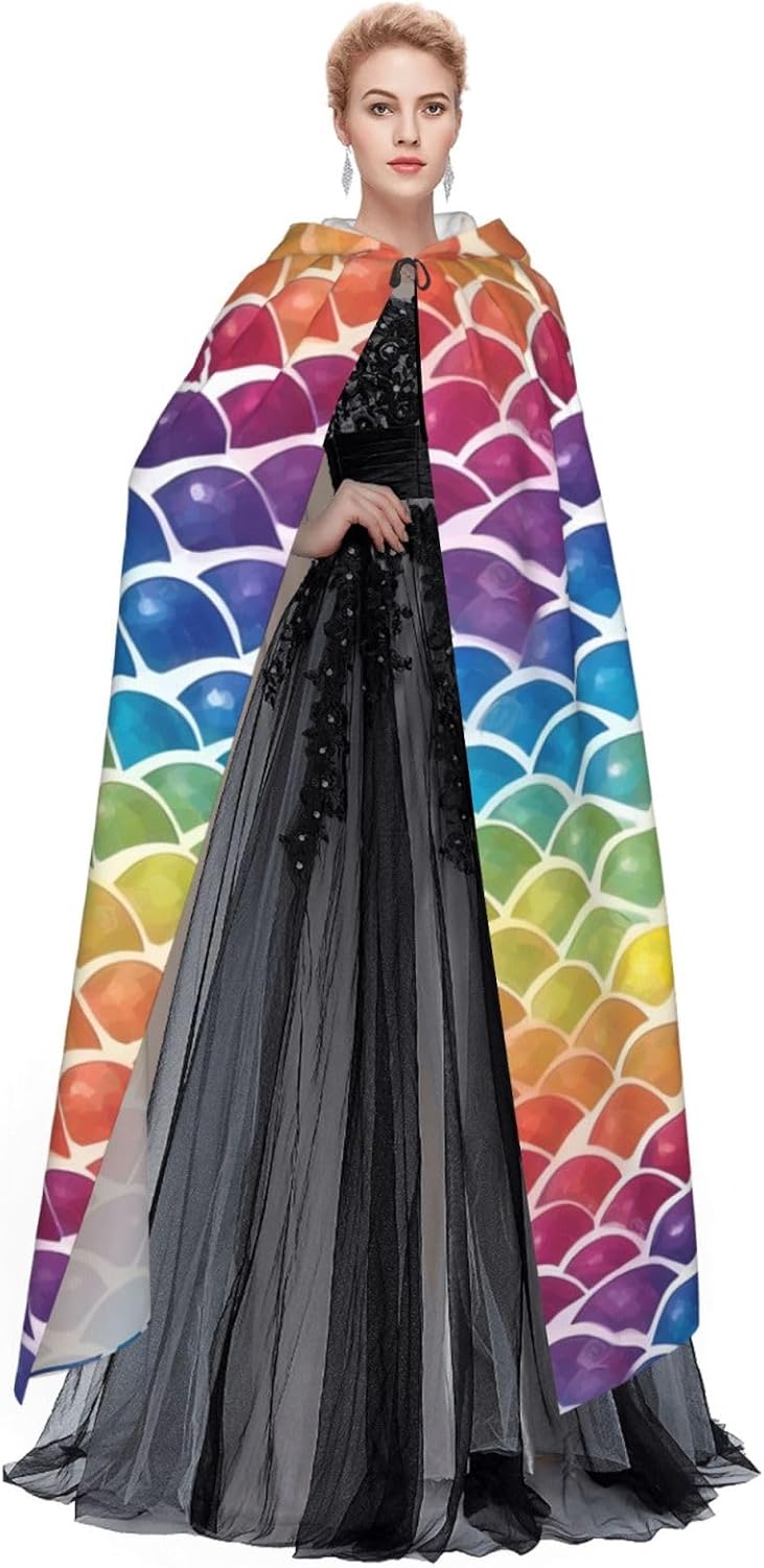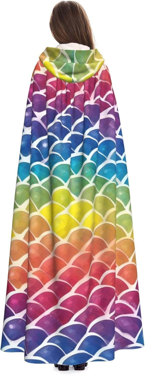 Rainbow Fish Scale Unisex Cosplay Costume Halloween Mantello con Cappuccio Mantello per Party Dress Up Full Length Uniforme Robe