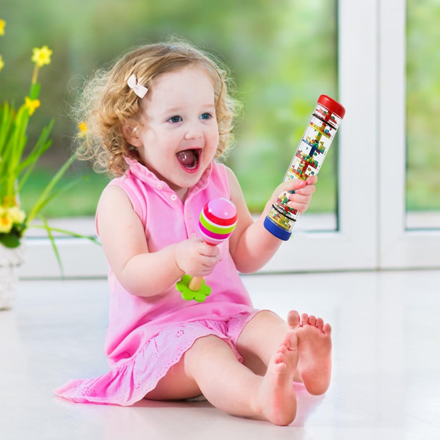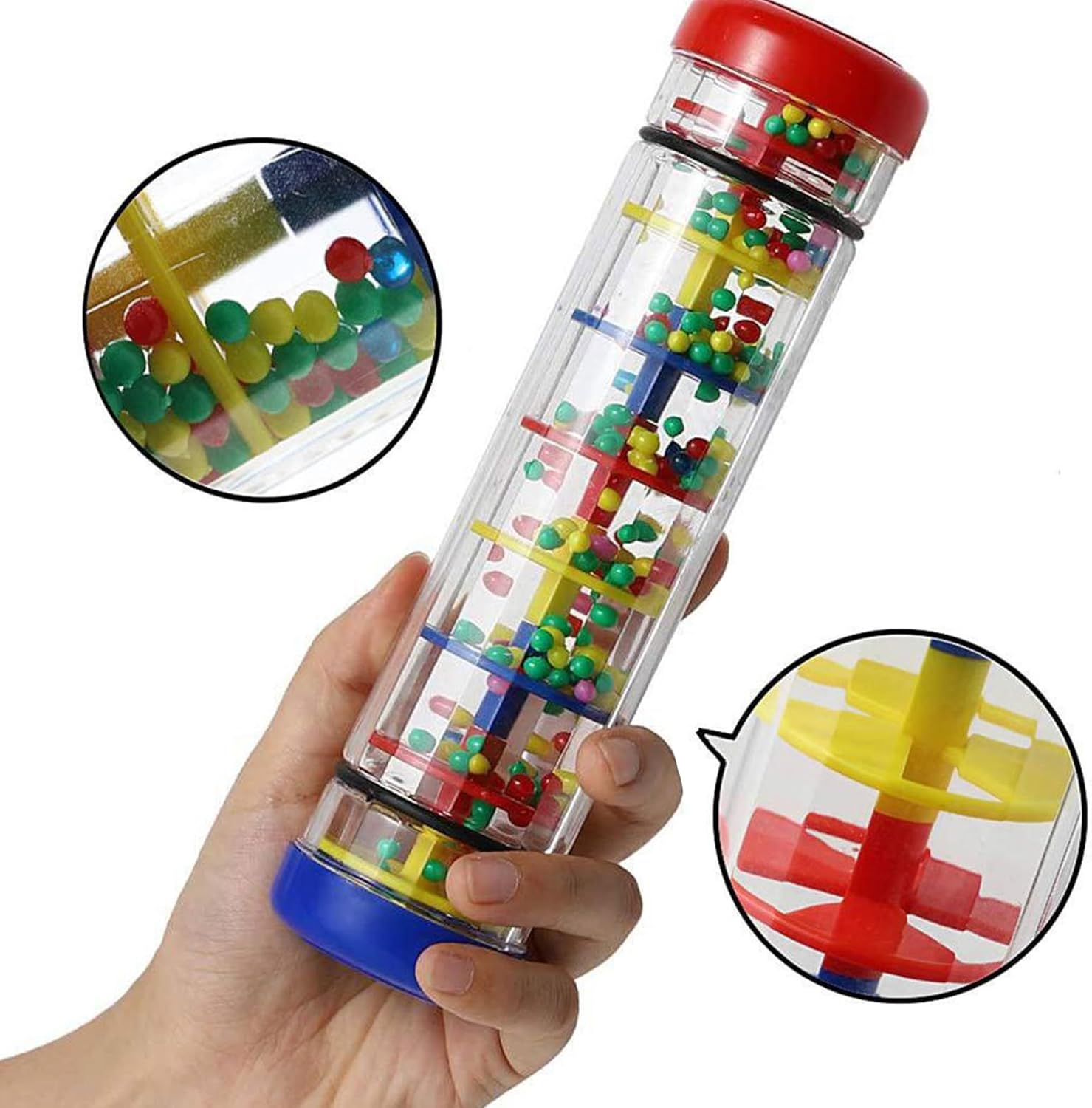 Facile da tenere in mano: la lunghezza di 8 pollici del giocattolo del produttore della pioggia è perfetta per essere afferrata e agitata dalle mani dei più piccoli, promuovendo le capacità motorie e la coordinazione occhio-mano. Il sonaglio del produttore della pioggia fornisce un'educazione precoce per imparare e scoprire colori, suoni e movimenti..Divertente e divertente per il tuo bambino. Suono rilassante della pioggia: il giocattolo del produttore della pioggia produce un suono calmante che aiuta a calmare e rilassare i bambini, rendendolo perfetto per andare a dormire o per giocare tranquillamente. Sicuro e: realizzato in plastica, questo giocattolo per la pioggia è sicuro per far giocare i bambini ed è costruito per resistere a ore di gioco. Educativo: questo giocattolo aiuta a sviluppare le capacità uditive e sensoriali del tuo bambino mentre ascolta il suono delle perle che cadono ed esplora le diverse trame e colori del giocattolo.