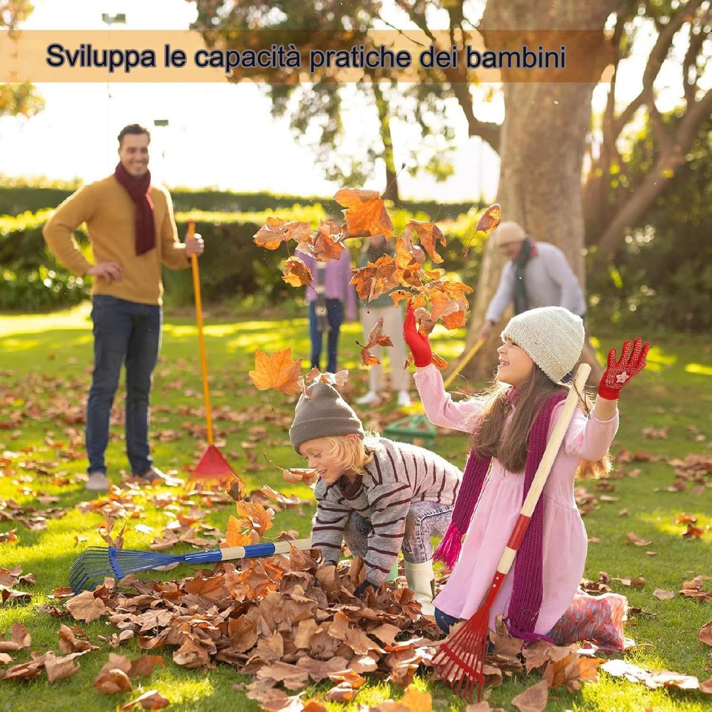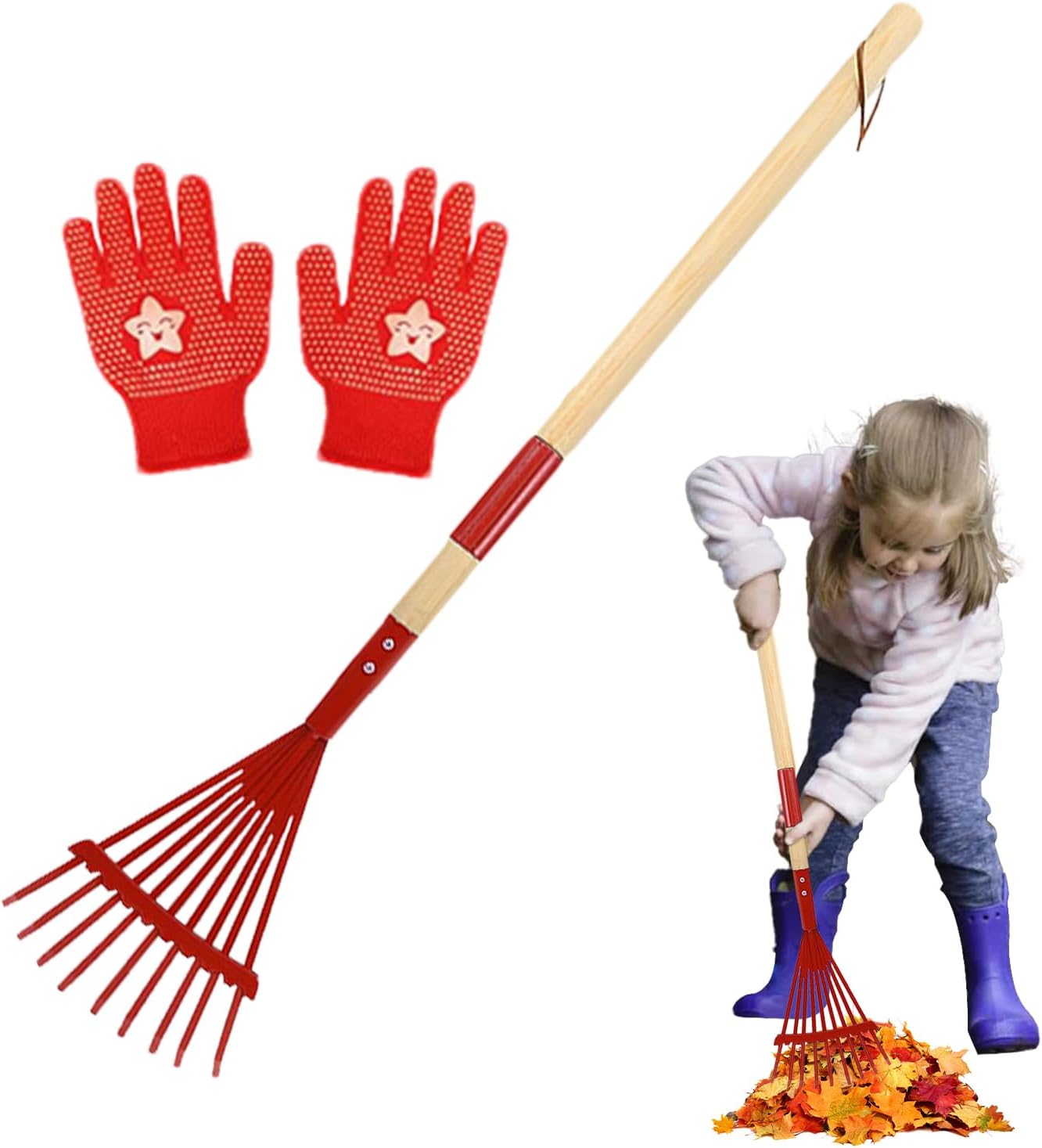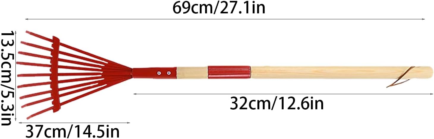 Kid-Friendly Convenience: Uniquely lightweight and crafted with a kid- design, ideal for children, ensuring easy grasp and proper handling. It is very practical Inspire Outdoor Adventure: Spark your child's love for nature and foster sense of exploration with the Lawn Rake for Leaves. This tool will encourage kids to actively participate in outdoor work, cultivating environmental awareness and hands-on abilities. Increased Flexibility: Simplify your lawn care routine with our Lawn Rakes Leaves. Equipped with a detachable wooden handle, effortlessly clean up leaves and make yard work a breeze. Enjoy increased flexibility and ease of use Not Easy to Break: With its sturdy wooden, steel, and nylon construction, lawn rake is designed to last season after season without breaking. Enjoy safe, wear-resistant and enendurable use while keeping your garden clean and tidy with ease Multiple Uses: This sturdy lawn rake for leaves effortlessly collects fallen and is versatile for outdoor activities such as leveling soil during camping trips and exploring the great outdoors