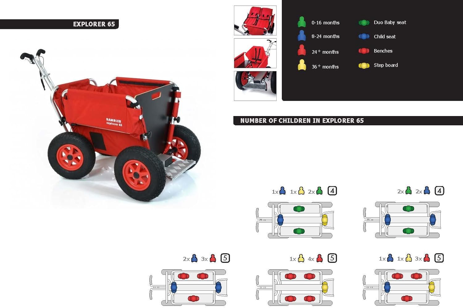 ALTA QUALITÀ E DUREVOLE: il Rambler Explorer 65 Wagon, essendo il membro più piccolo della serie Explorer, garantisce prestazioni robuste e durature con materiali di prima scelta, trasportando in sicurezza fino a 4-5 bambini attraverso tutte le avventure e le varie condizioni SICURO E ADATTO AI BAMBINI: garantendo un trasporto sicuro e accogliente, questo carro è dotato di comode panchine e un design adatto ai bambini, adatto a bambini da 1,5 anni in su. Sono disponibili accessori per il trasporto sicuro dei bambini da 0 a 2 anni. ACCESSIBILITÀ: l'ampio spazio e una piattaforma bassa facilitano l'entrata e l'uscita senza sforzo, consentendo ai bambini di salire e scendere in sicurezza in modo indipendente, mentre il design interno accurato garantisce comfort e facilità di movimento durante le corse STOCCAGGIO E CONVENIENZA: quando è necessario più spazio per i bagagli, il Rambler Explorer 65 vanta un ampio spazio per giocattoli, snack ed elementi essenziali, che garantisce che sia i bambini che le loro necessità vengano trasportati con la massima comodità e salvaguardati durante il viaggio UTILIZZO VERSATILE: Prevalentemente un trasporto per bambini, il carro funge anche da versatile portaoggetti per l'attrezzatura essenziale durante le gite in spiaggia, il campeggio o gli eventi all'aperto, sposando praticità e stile in ogni avventura