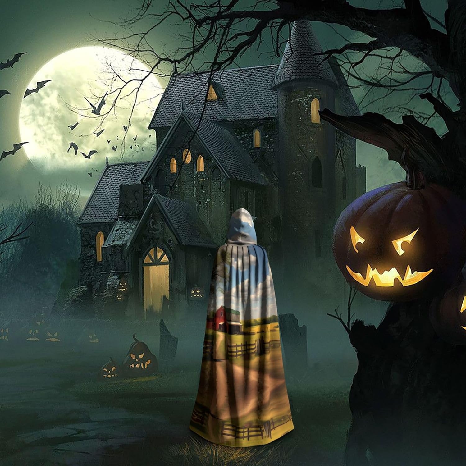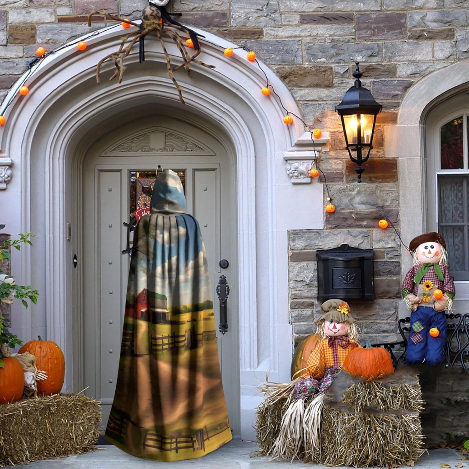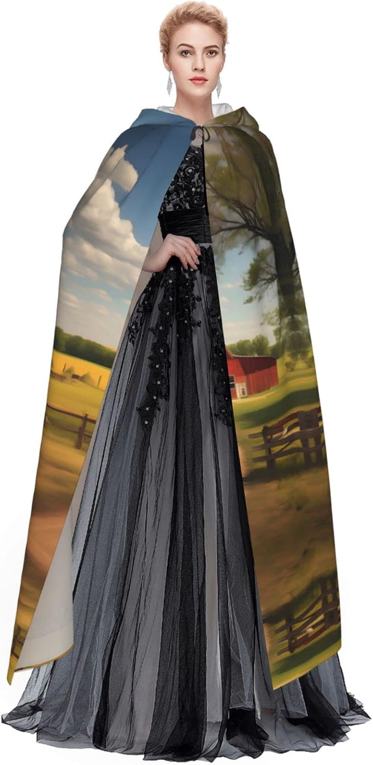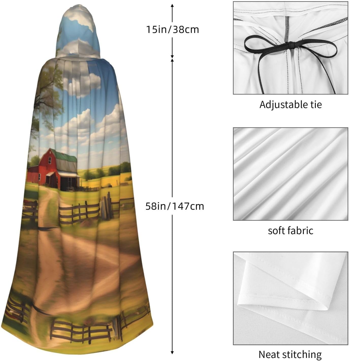 Ranch View - Mantello con cappuccio e stampa larga \r Descrizione del materiale: 100% fibra di poliestere (poliestere). \r Prestazioni del prodotto: il mantello con cappuccio oversize è realizzato in tessuto lungo, resistente e non pruriginoso, senza cravatta, senza cerniera, comodo mantello con cappuccio e tessuto lungo, resistente e non prurito) \r Scenari applicabili adatti per Halloween, costumi cosplay, costumi da palco, feste in maschera, feste a tema, balli, convegni di fumetti, ecc. Può essere utilizzato per feste, carnevale, Halloween, feste in costume, ecc. \r Istruzioni di lavaggio: lavabile in lavatrice a mano, facile da pulire e durevole