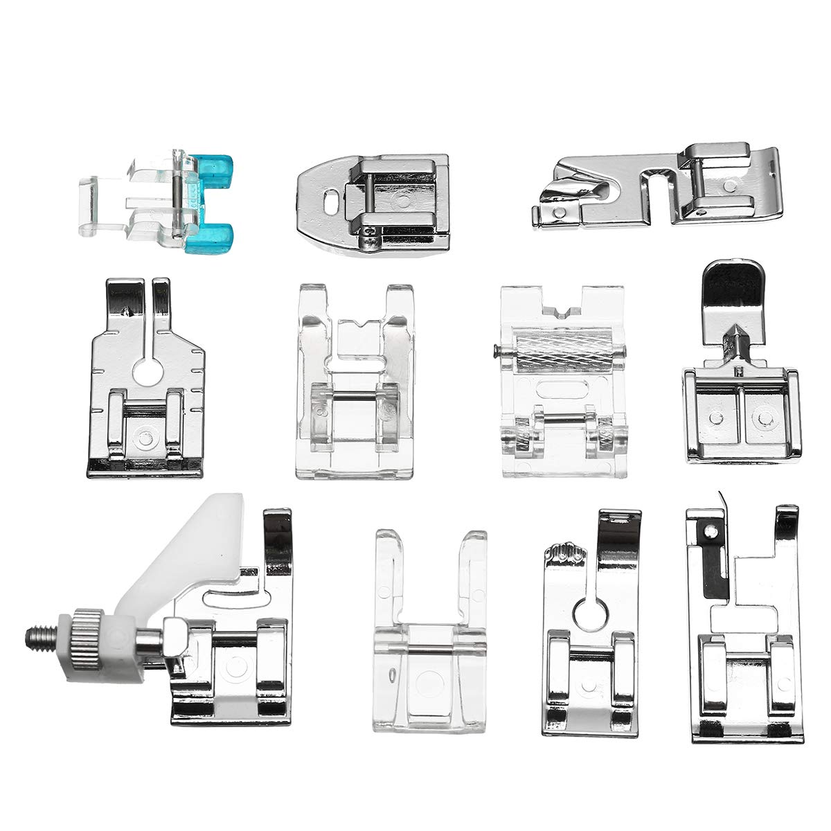 11 pezzi macchina per cucire domestica piedini per piedini set accessori per artigianato kit di attrezzi Colore principale: Argento, Trasparente QUANTITÀ: 11 pezzi / set Design semplice e pratico, facile da usare. 11 Stück Nähmaschine Nähfuß Füße Set Handwerk Zubehör Teil Kit Werkzeuge