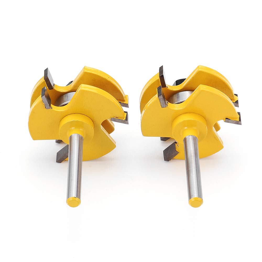 2 pezzi diametro del gambo 6mm / 8mm, mortasa a 3 denti e coltello a tenone, coltello da pavimento, taglierina per pannelli, fresa per legno, scocca in plastica. Materiale del corpo: acciaio temprato massiccio Materiale della lama: carburo di micro grano di grado industriale Larghezza dei denti: 6 mm Profondità denti: 13mm