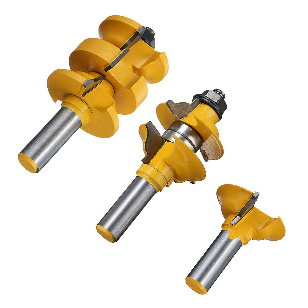 3pcs 1/2 '' asta di entrata del gambo e ogee porta interna assortita punta del router R / S. Materiale: Corpo - Lama in acciaio temprato solido - Carburo di micro grana di grado industriale Colore: Nastro Giallo + Dimensioni: diametro vibrazione: 1/2 'Profondità di taglio: 1/2' Adatto per: incollaggio su tavola, piastra per cornice di fase, macchina per incidere, ecc.