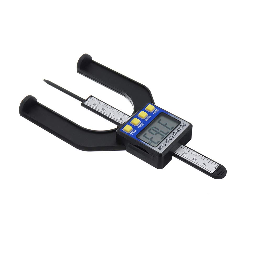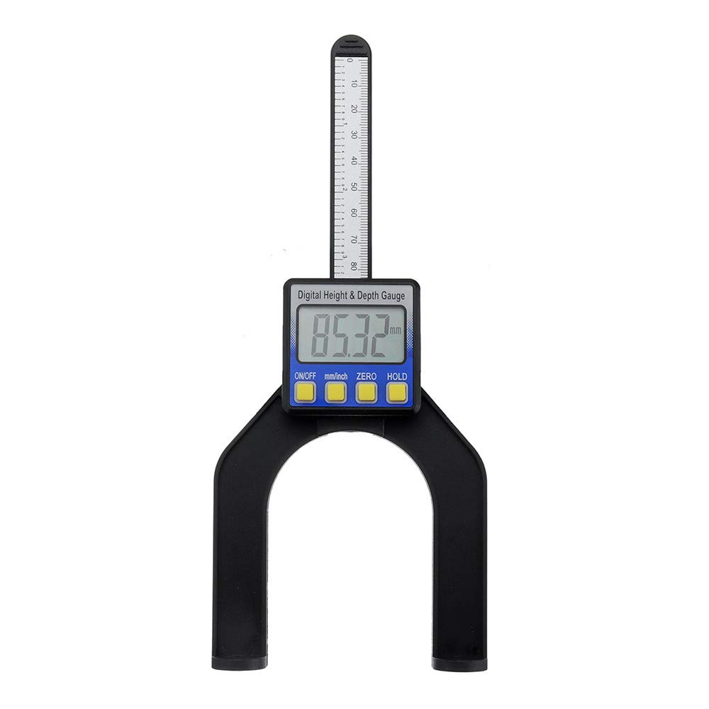Misuratore di profondità digitale di misurazione metrica di altezza 80mm per sega circolare per legno. Materiale: Plastica Dimensioni: 100x150mm / 3.9x5.9inch Campo di misura: 0-80 mm / 0- 3 1/8 pollici Profondità del foro: 0-50 mm / 0-2 pollici