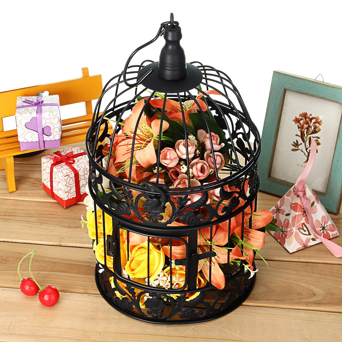 Materiale: ferro Colore: nero / bianco Diametro: 19 cm / 7.5 '' Altezza: 35 cm / 13,8 ' Materiale in ferro battuto, resistente