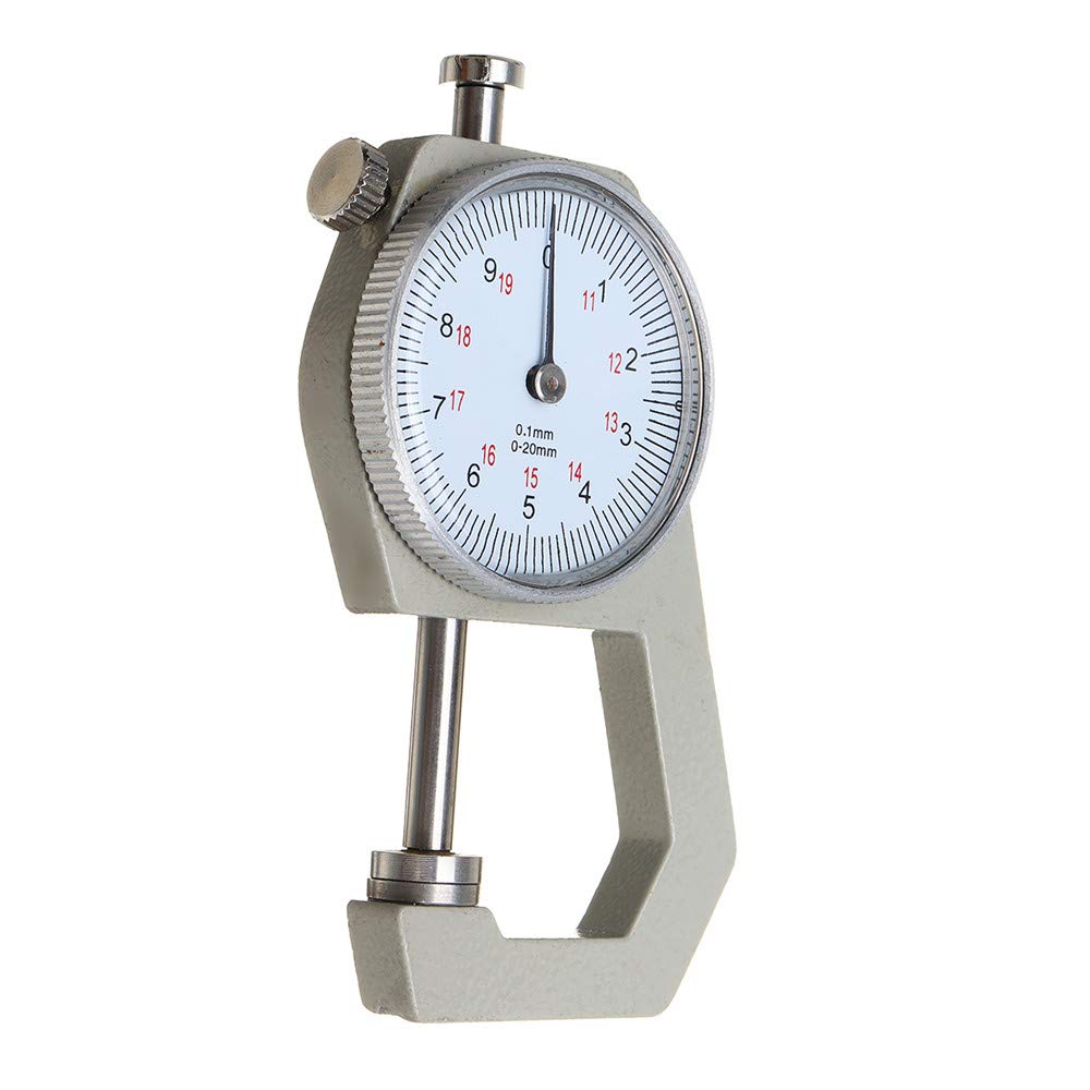 Spessimetro a quadrante tondo, gamma 20 mm precisione 0,1 mm strumento artigianale in pelle di carta in metallo. Materiale: metallo Lunghezza: 85 mm Diametro: 39 mm Gamma di misurazione: 0-20mm