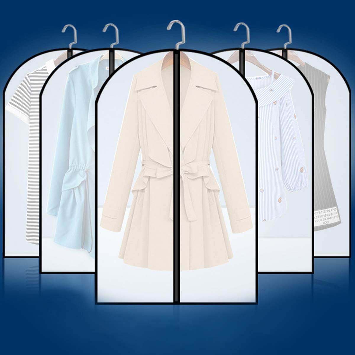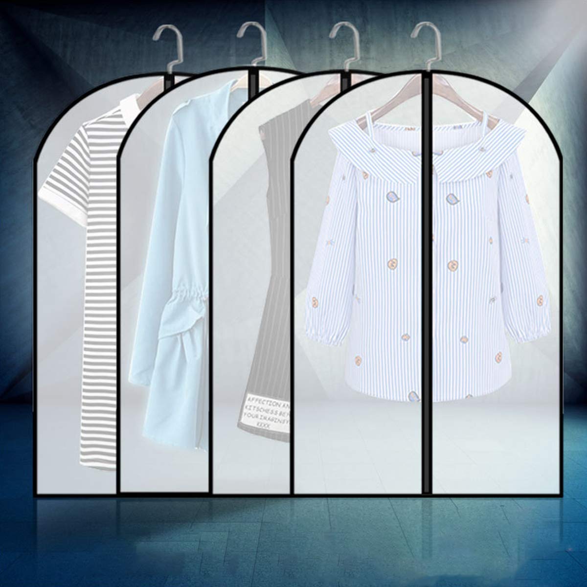Protezioni per indumenti in plastica Trasparente antipolvere Copertura in stoffa Abito per abiti Borsa per abiti Proteggi custodia Materiale: EVA Colore: trasparente con bordo nero Dimensioni (L x L): M: 60 x 80 cm