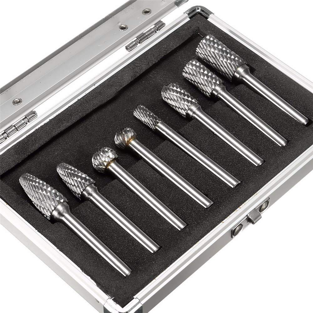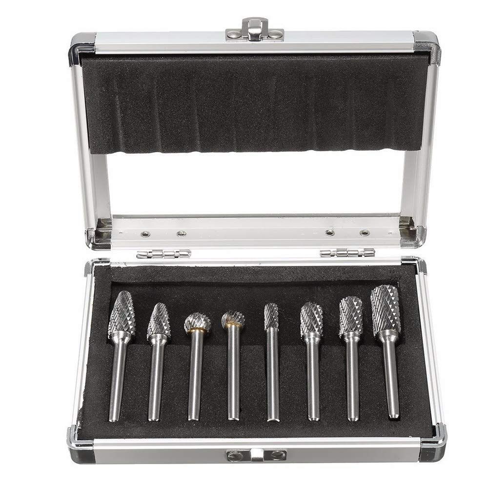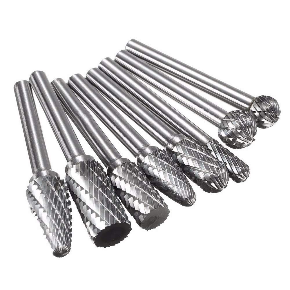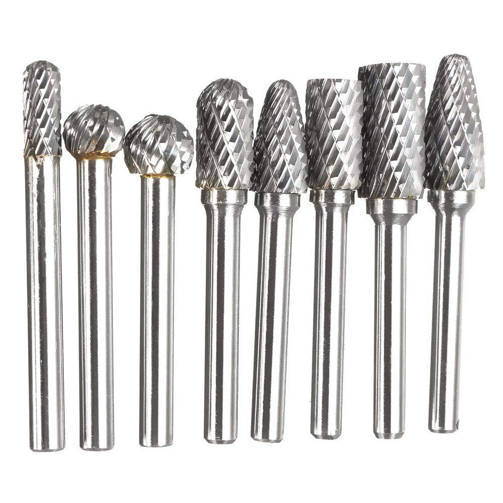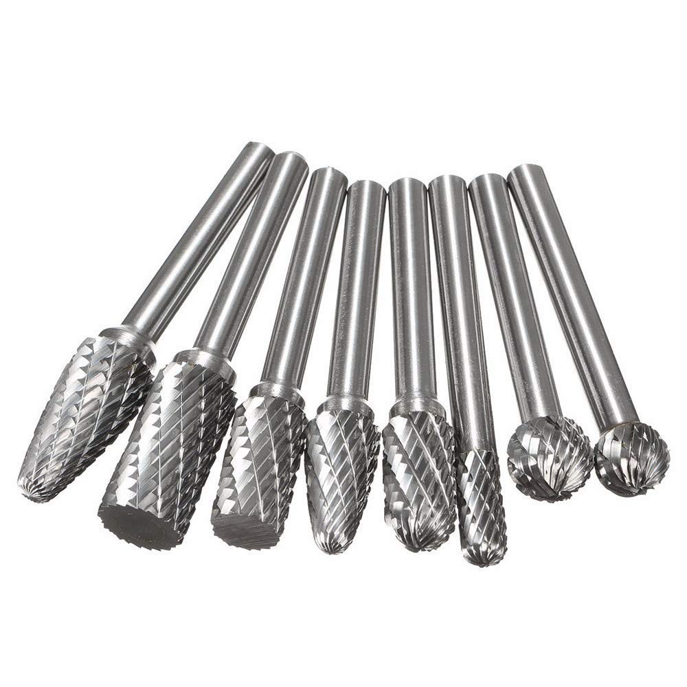 8pcs 1/4 pollici gambo doppio taglio in metallo duro rotativo mola smerigliatrice smerigliatrice set di strumenti per punte Materiale: lega di carburo Diametro del gambo: 1/4 '' (6mm) Scanalatura: doppia rotativa L'uso della lima rotante in lega di metallo duro è estremamente diffuso, vale per la fabbricazione di stampi.